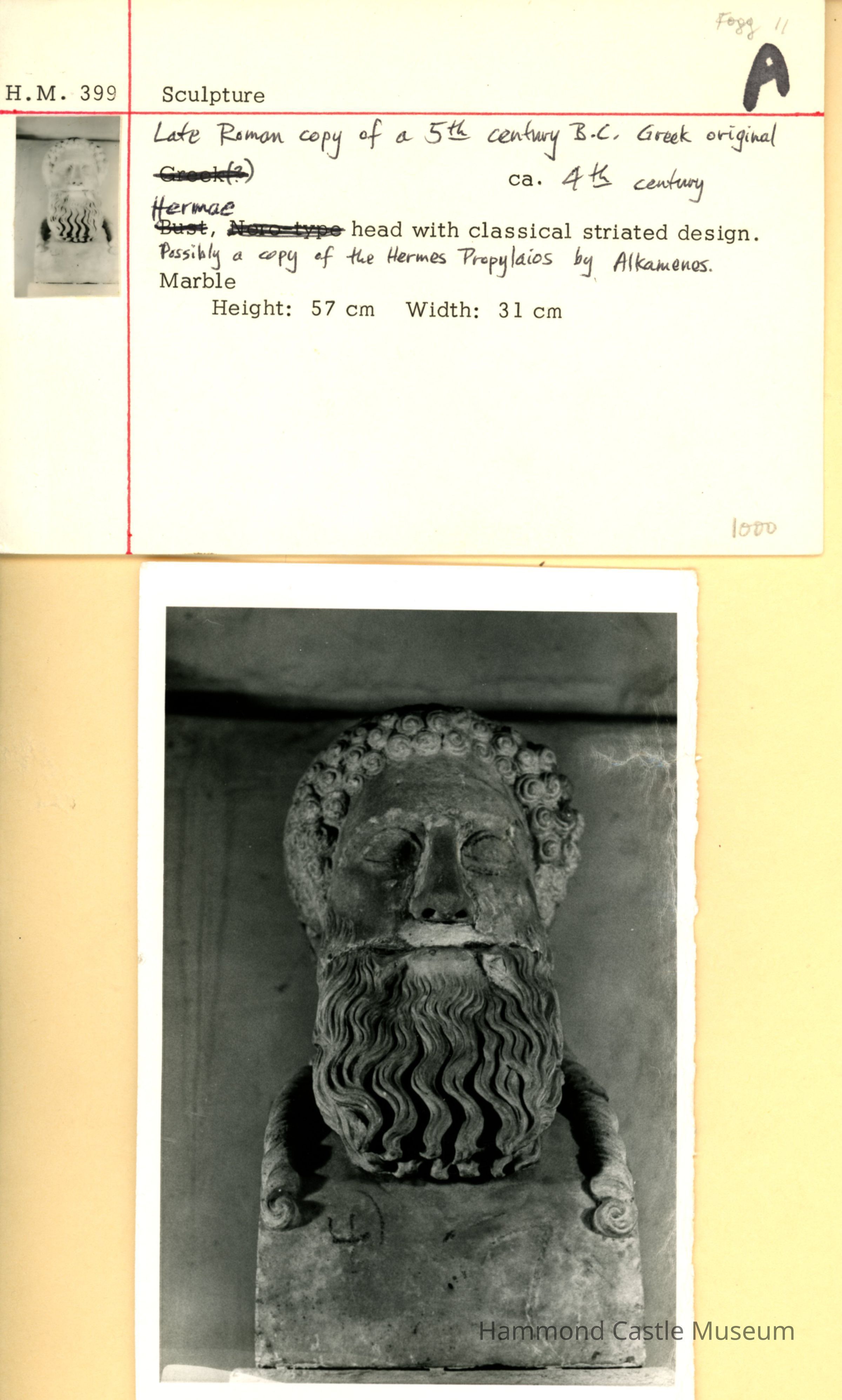 1993-12-14 Sotheby's Catalog, #45 - HM399 stone bust (herm) of Hermes or Dionysos male w beardNote Type