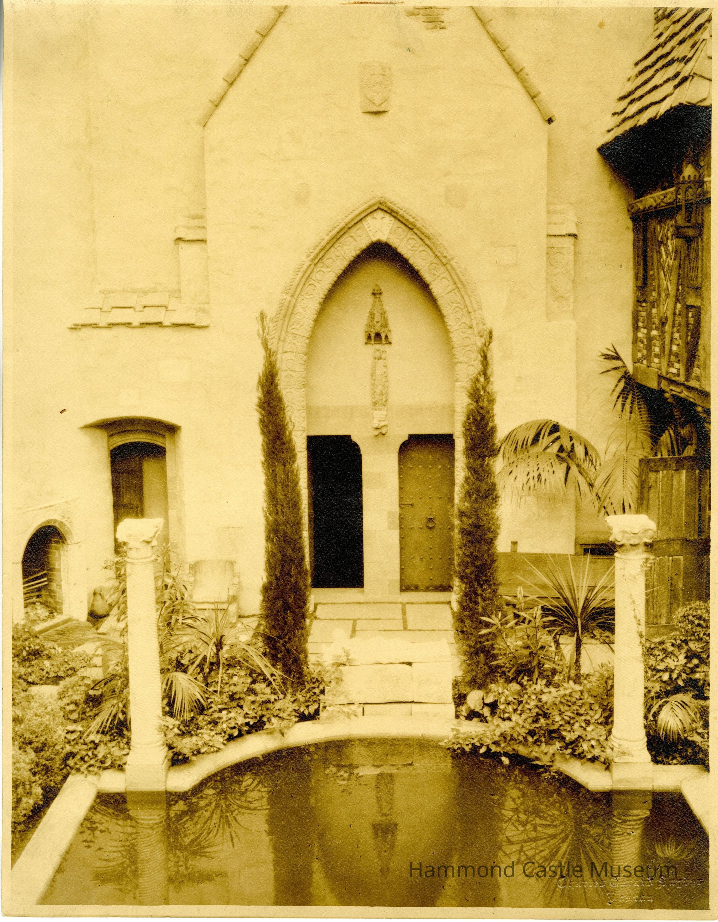 Photo of Courtyard arch end Taken prior to 1940 installation of St. Mark statue above door