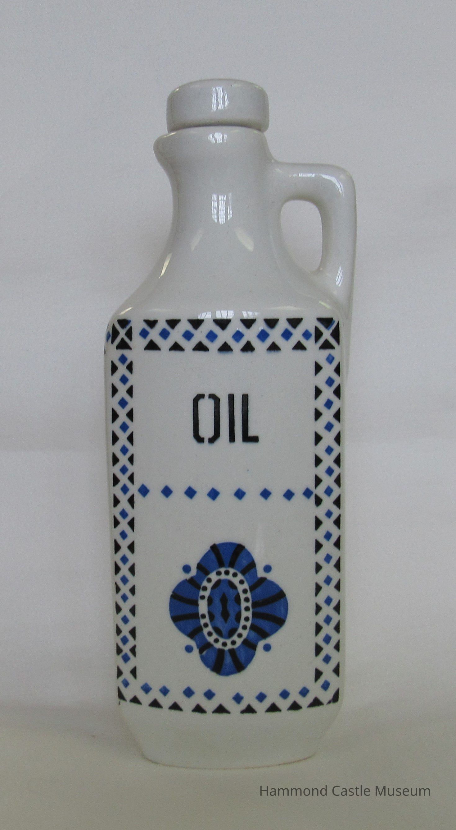 Czechoslovakian food cannister set. Barley, rice, etc. White. Blue hatching.