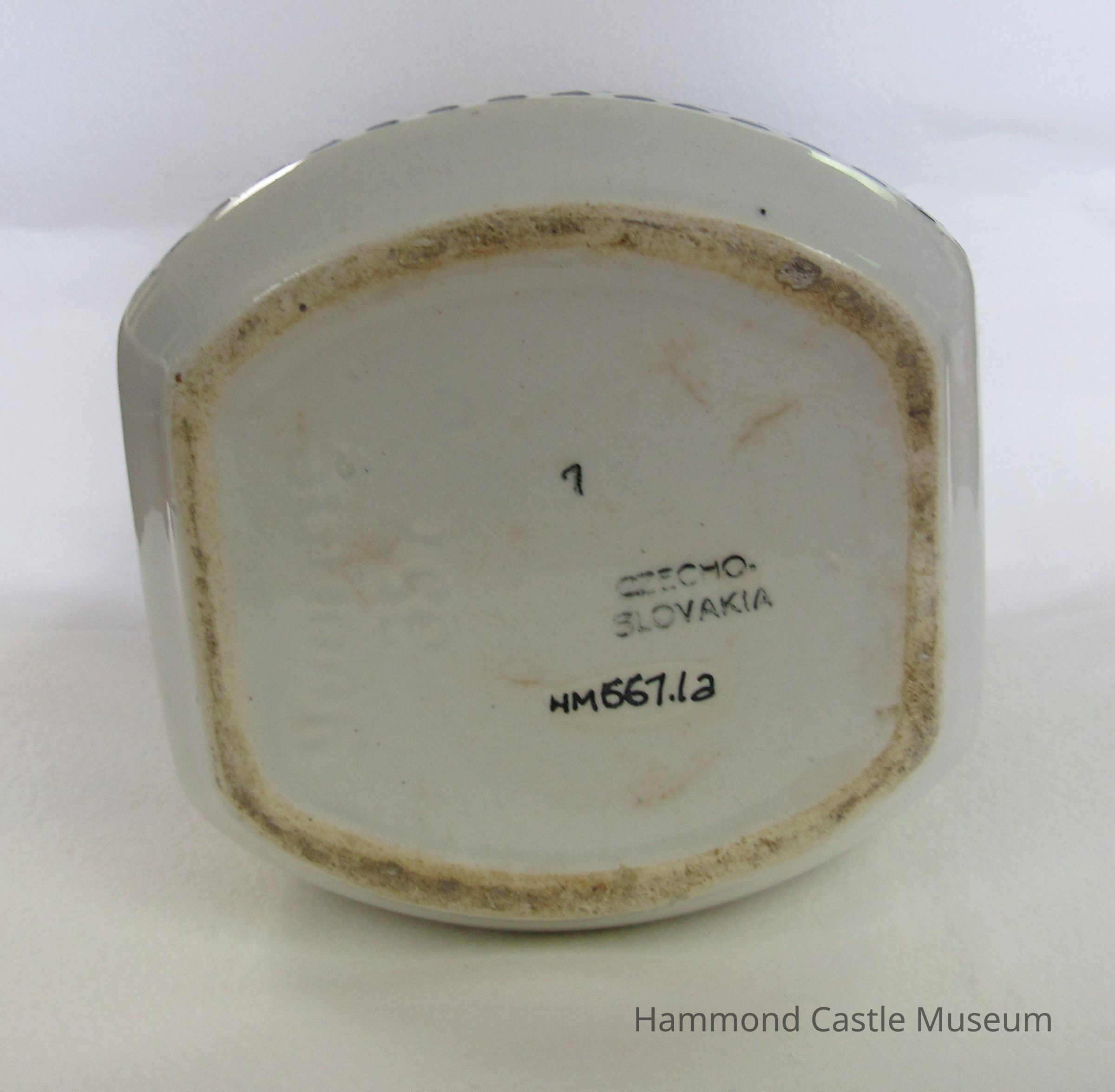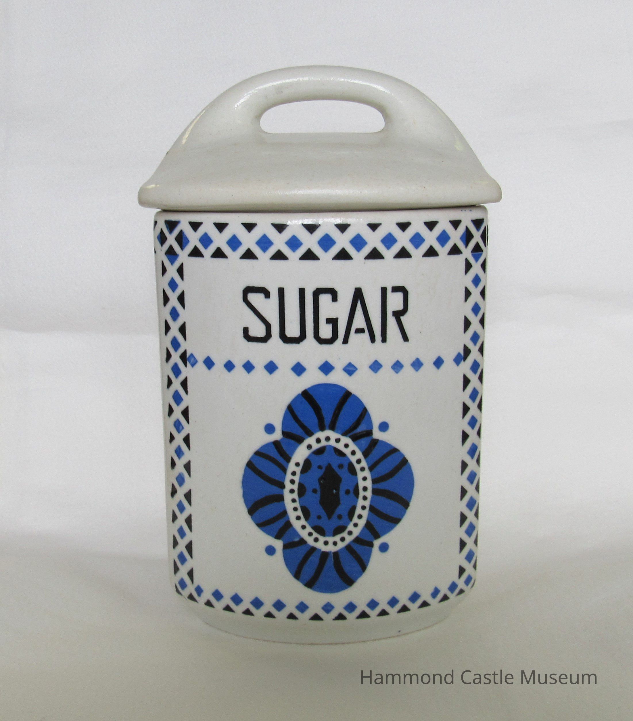 Czechoslovakian food cannister set. Barley, rice, etc. White. Blue hatching.