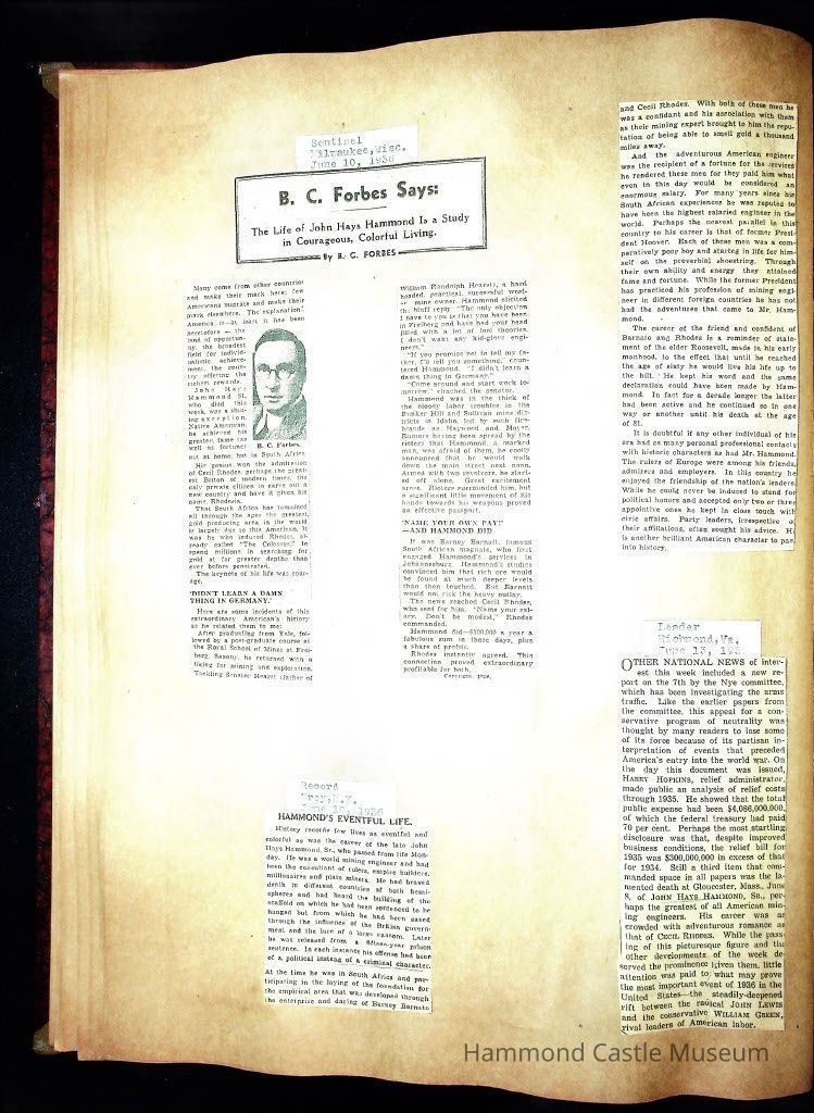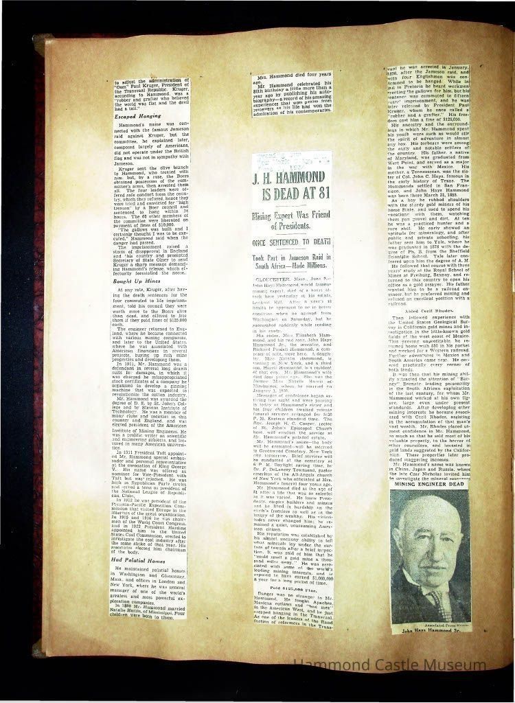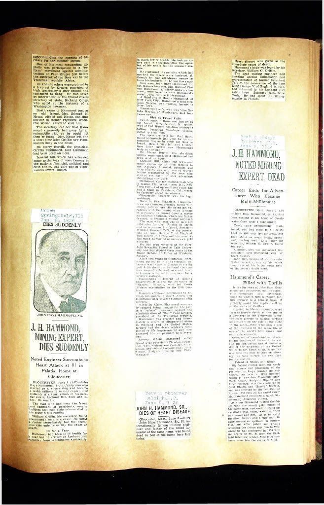 JHH 1936 - In Memoriam scrapbook Articles about John Hays Hammond Sr's death *see index