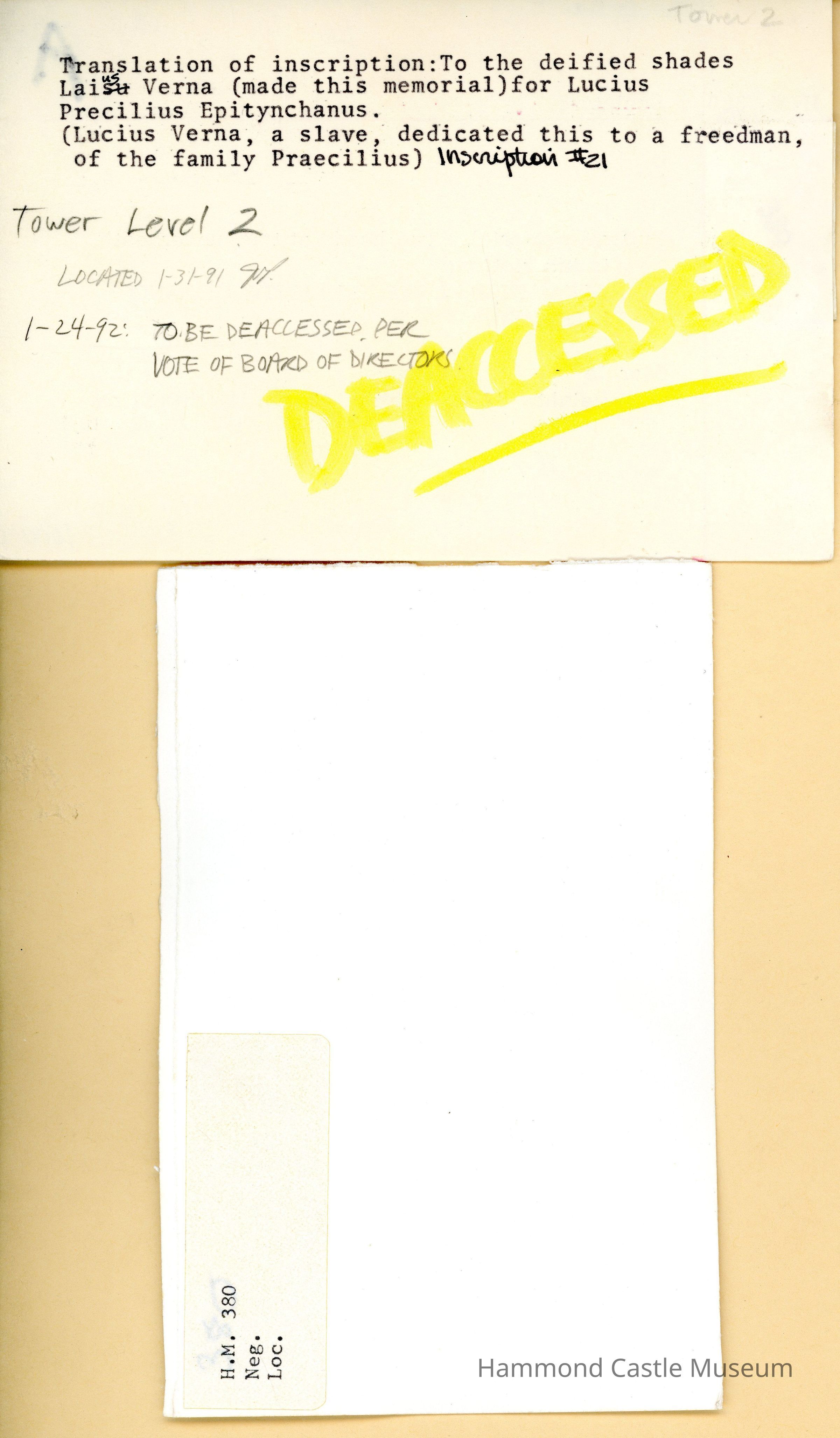 [USEP HCM.L.Tmp97.6.9] HM-380 Epitaph of L. Precilius Epitynchanus