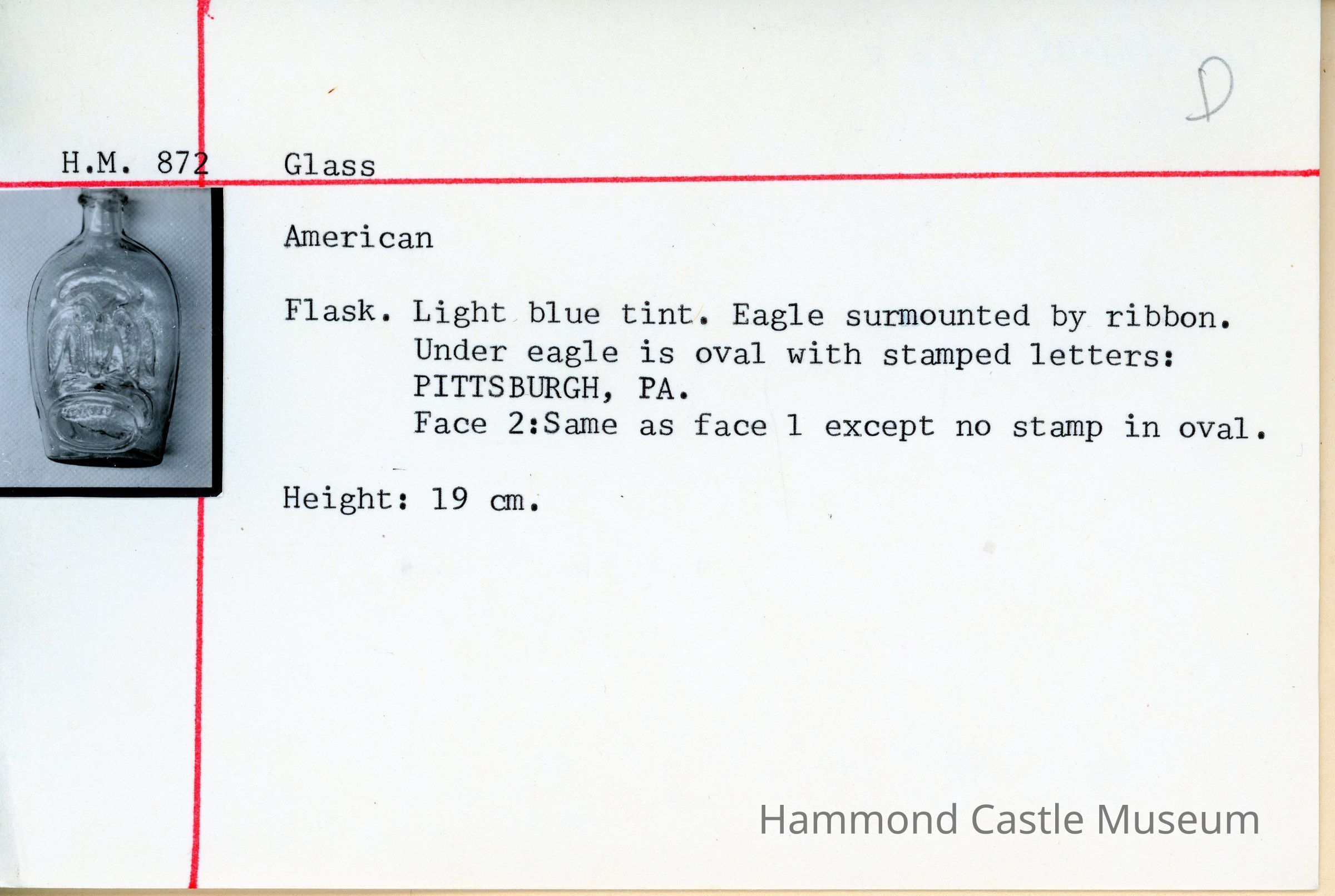 Blue Glass Flask Bottle w Pittsburgh, PA stamped DEACCESSIONED 6-28-1991