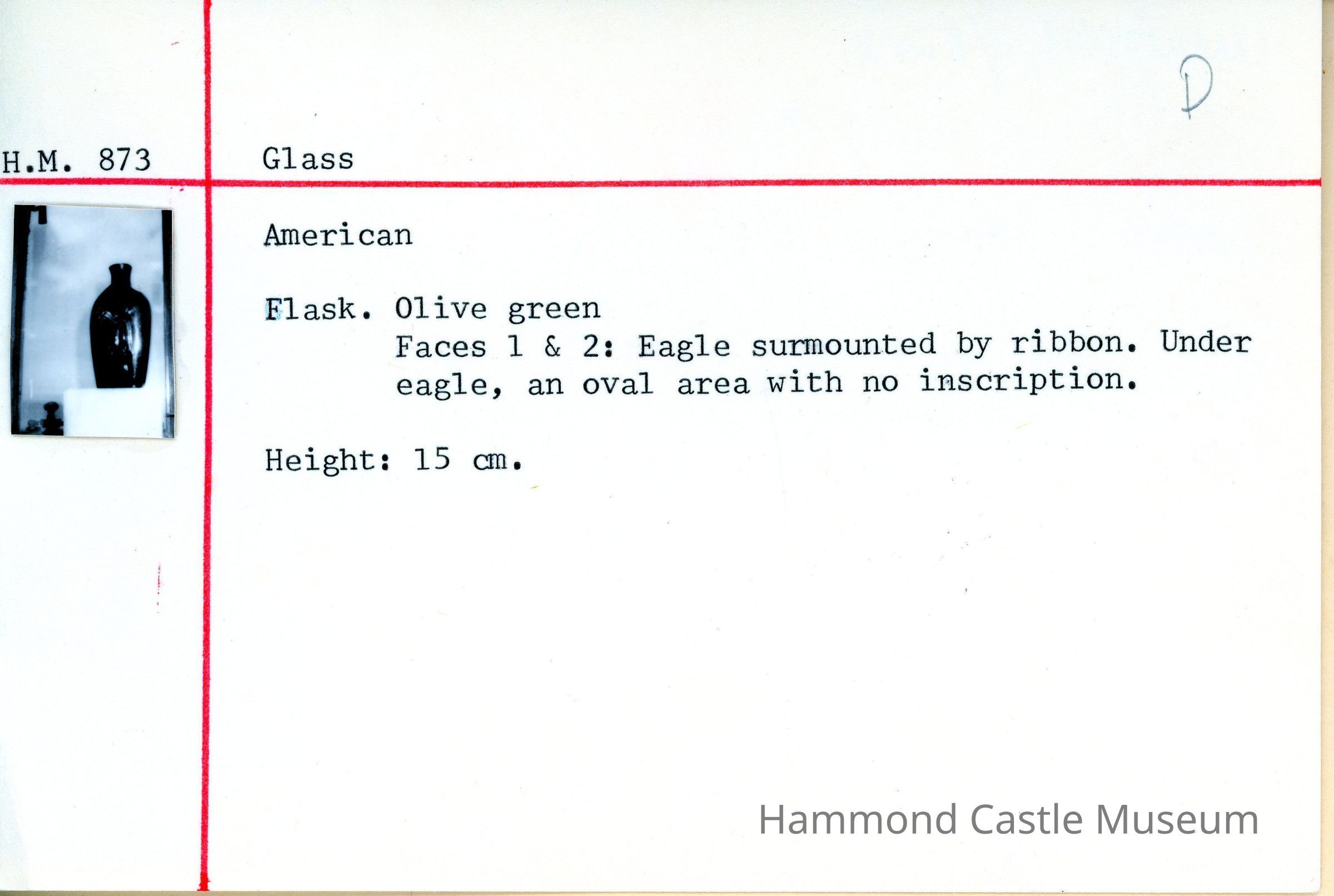 green glass flask bottle w eagle DEACCESSIONED 6-28-1991