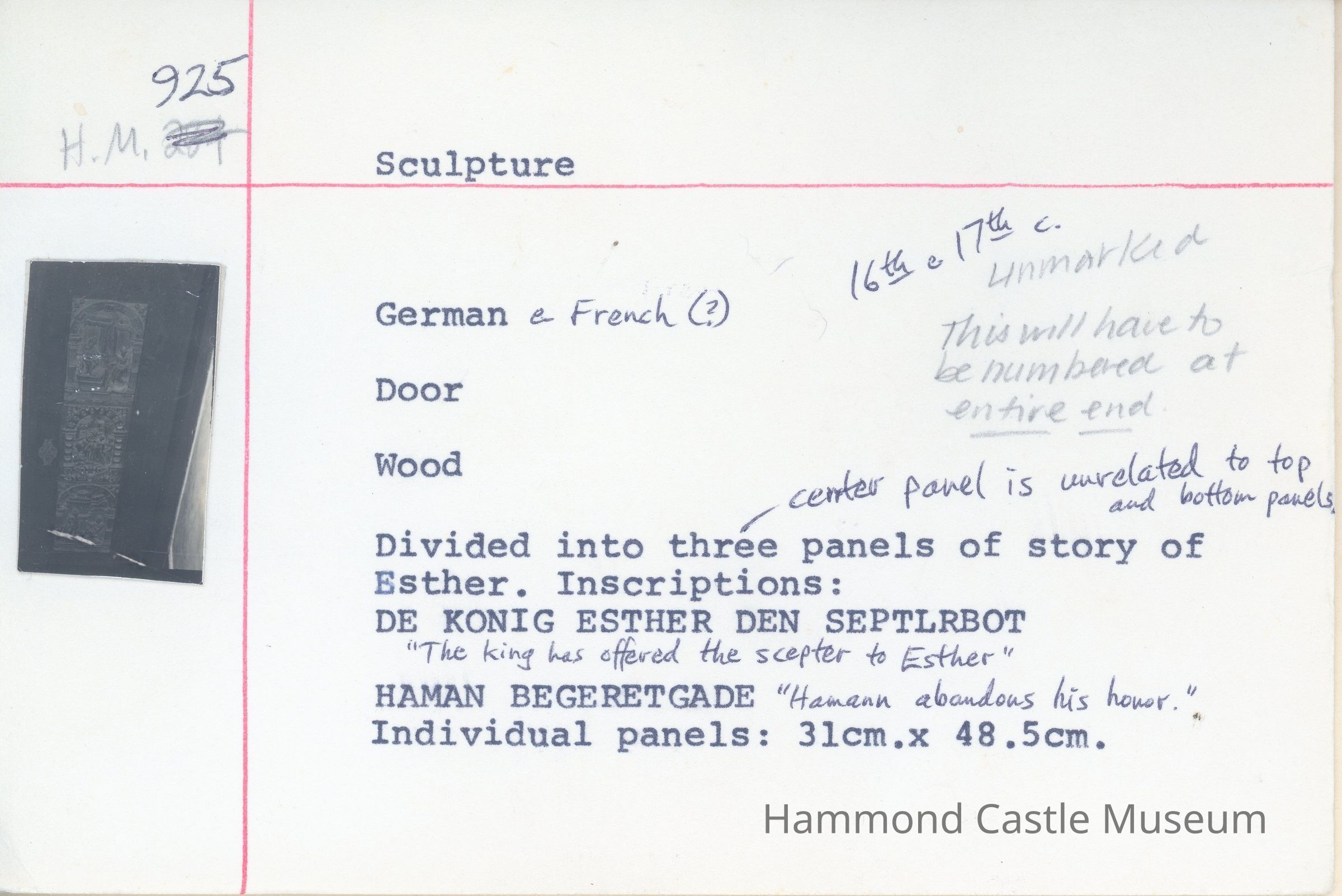 Door to Zalessky Room, divided into three panels showing the story of Esther. 16th-17thc German