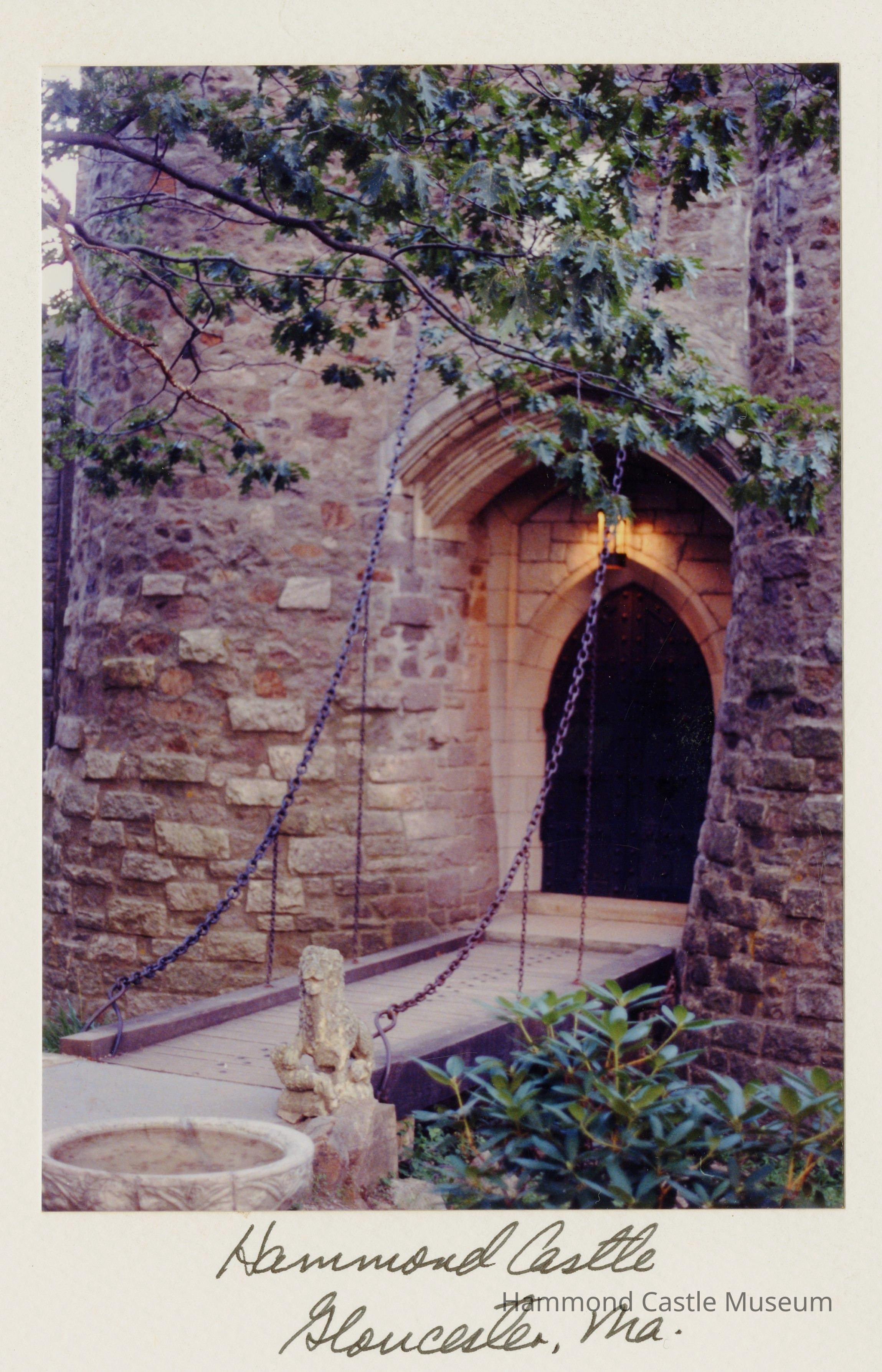 Postcard of drawbridge with original lions & baptismal font bowl Image by Eileen (?)