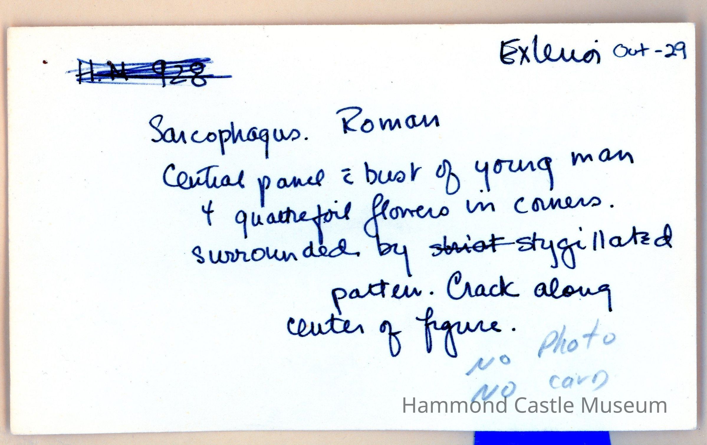 For Pacifici’s letter: Hammond Castle Museum Archives, document 1929-06-25 from Pacifici (Bari window, Vincenzo sarcophagus…) p(2).Acquisition