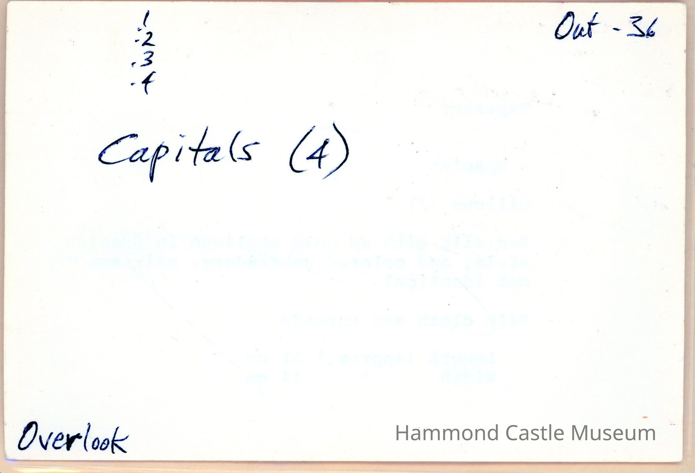 OUT-36. 1 Square topped Capital w Emtpy Urn & Simple Corner Scrolls