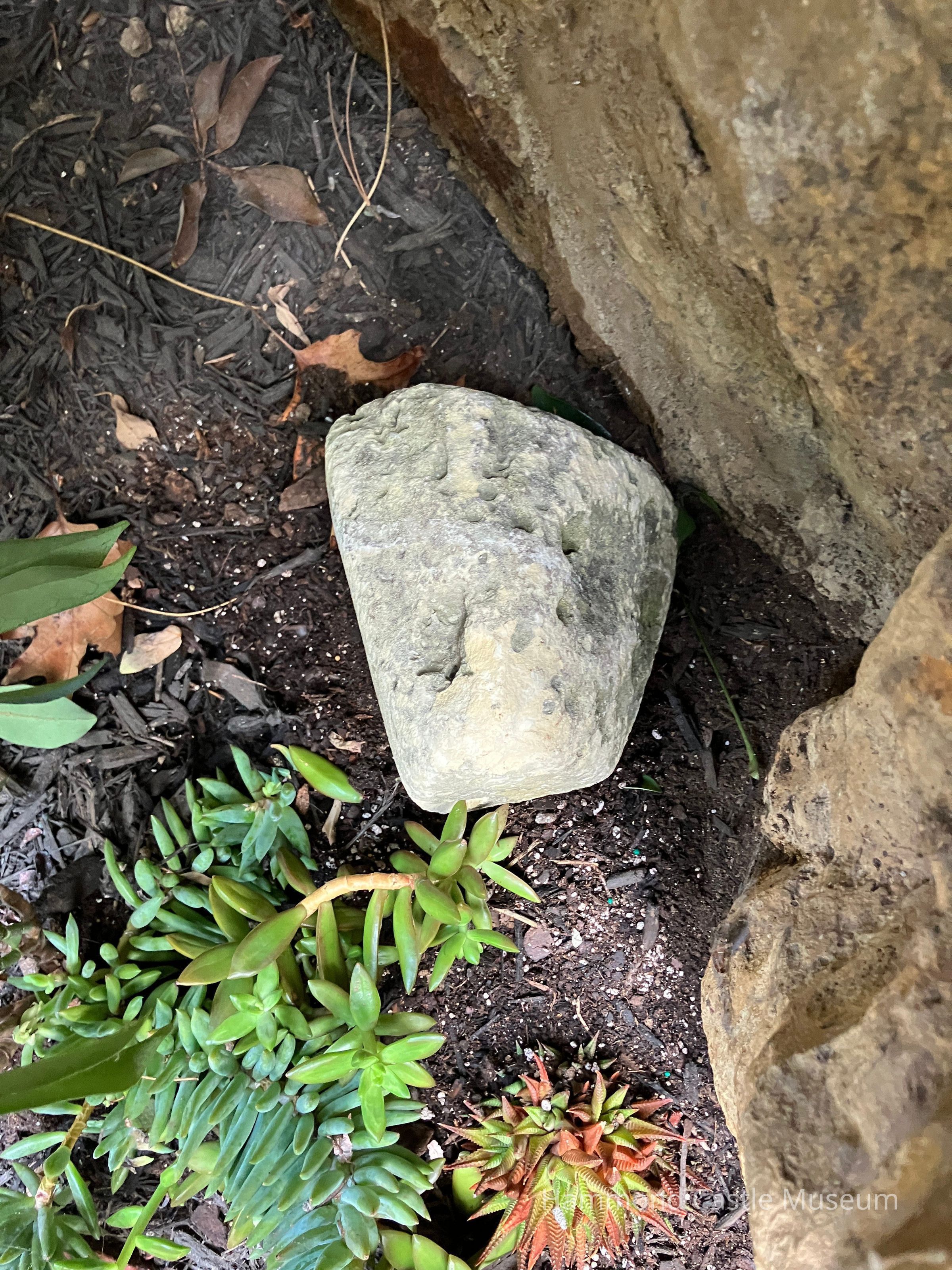 #4 - limestone archway/voussoir with drill holes (moved to courtyard 2024)Lexicon