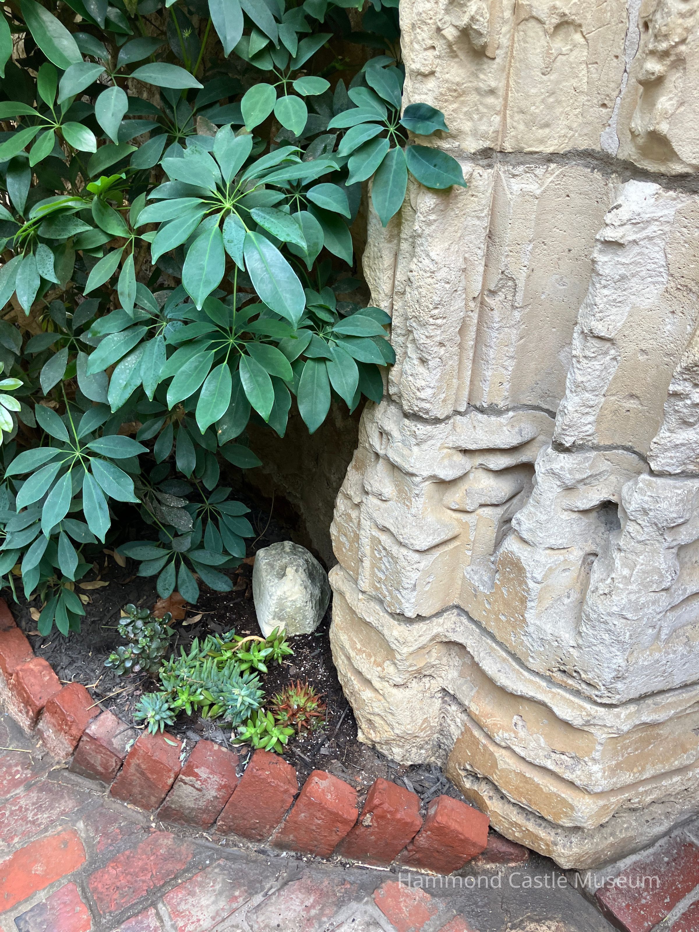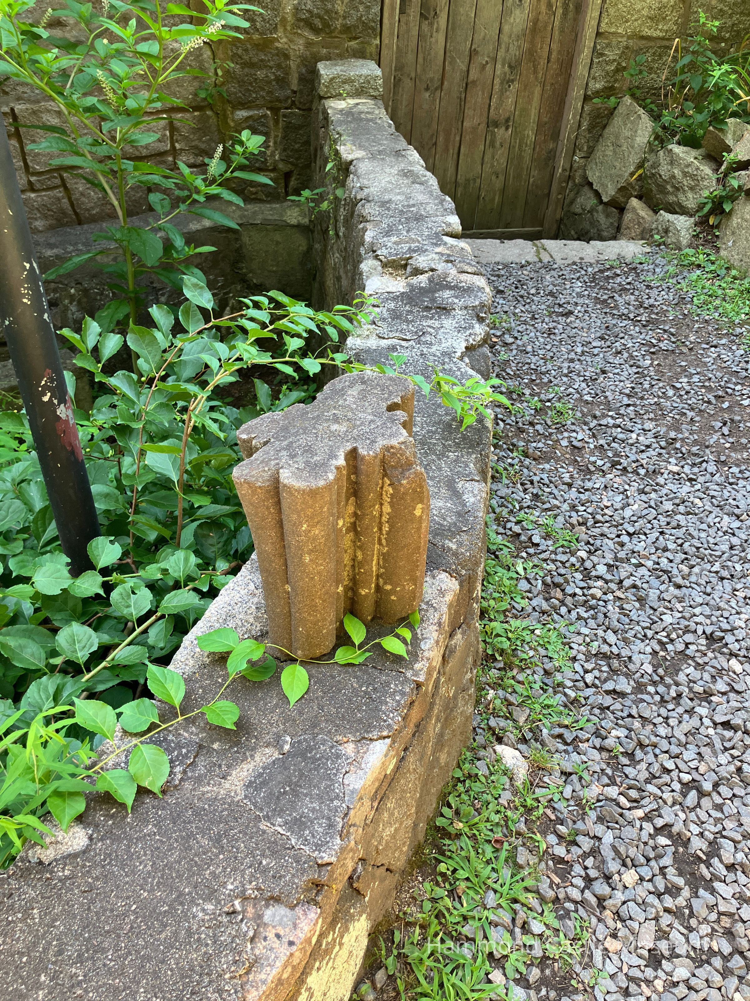 capitals & voussoirs (curved archway piece) on railing in cat garden