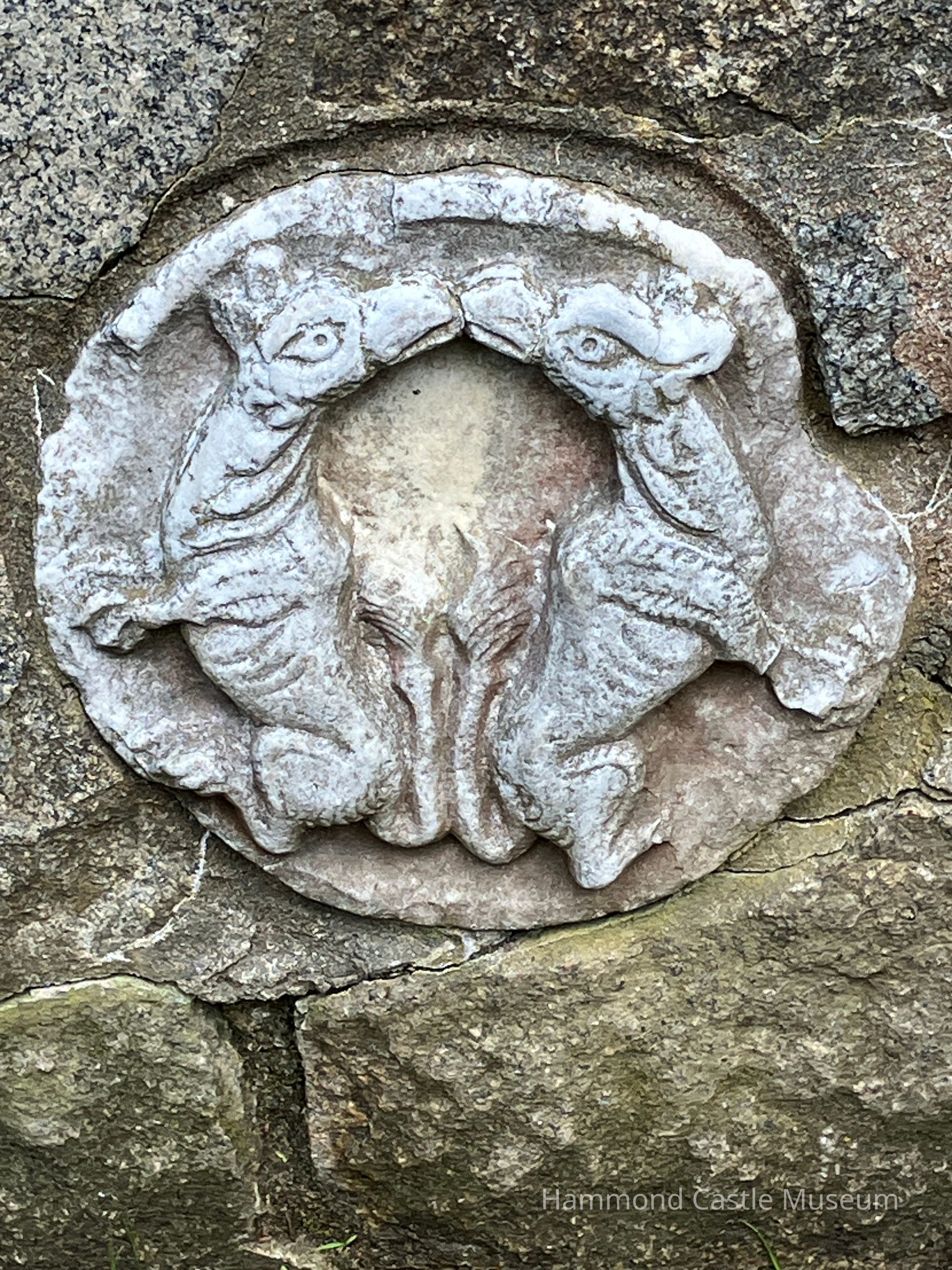 Roundel of 2 Kissing Animals (on Cat Garden Fountain)