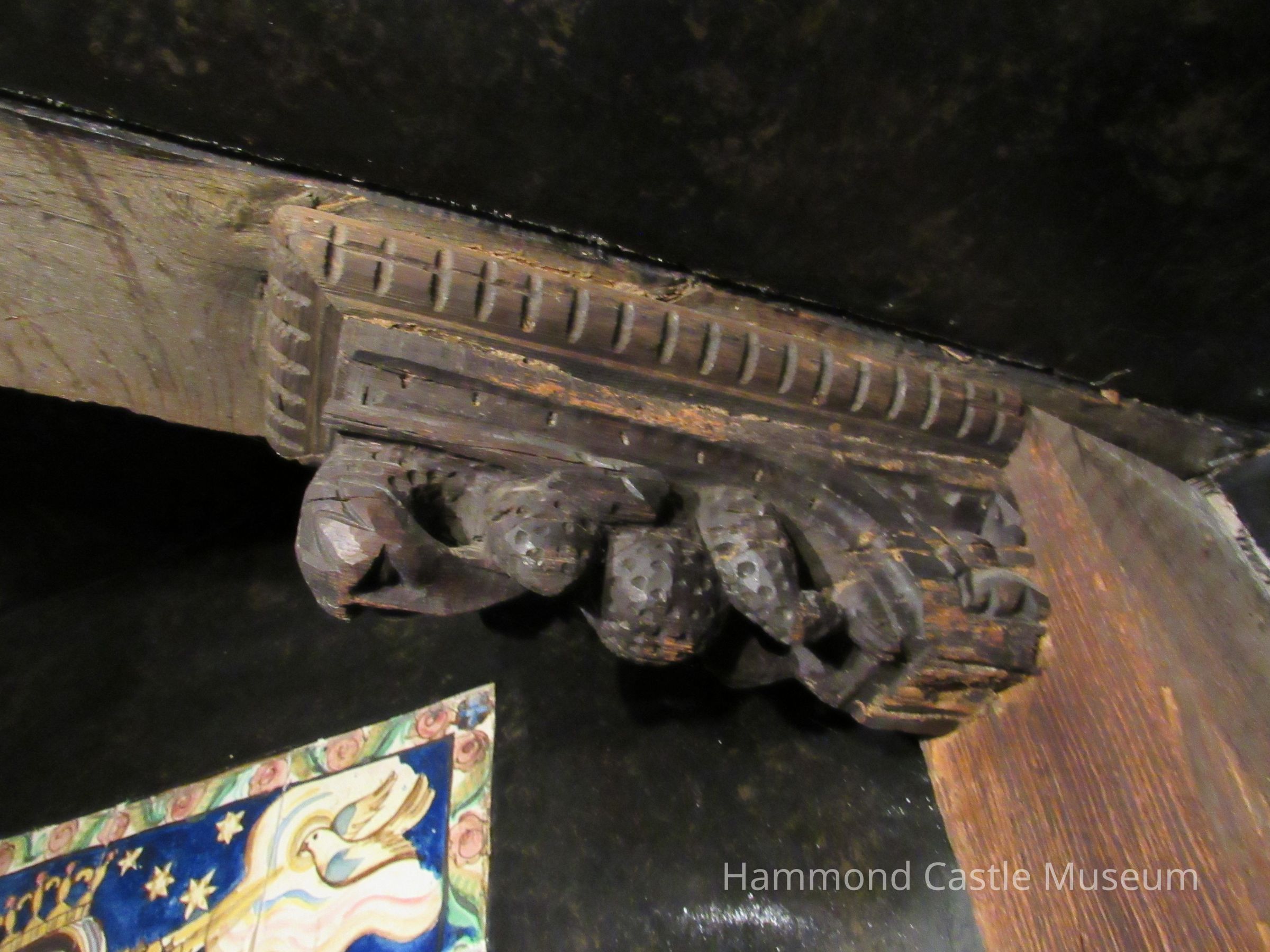 Wood carved corbels in Sicilian Room near ceiling