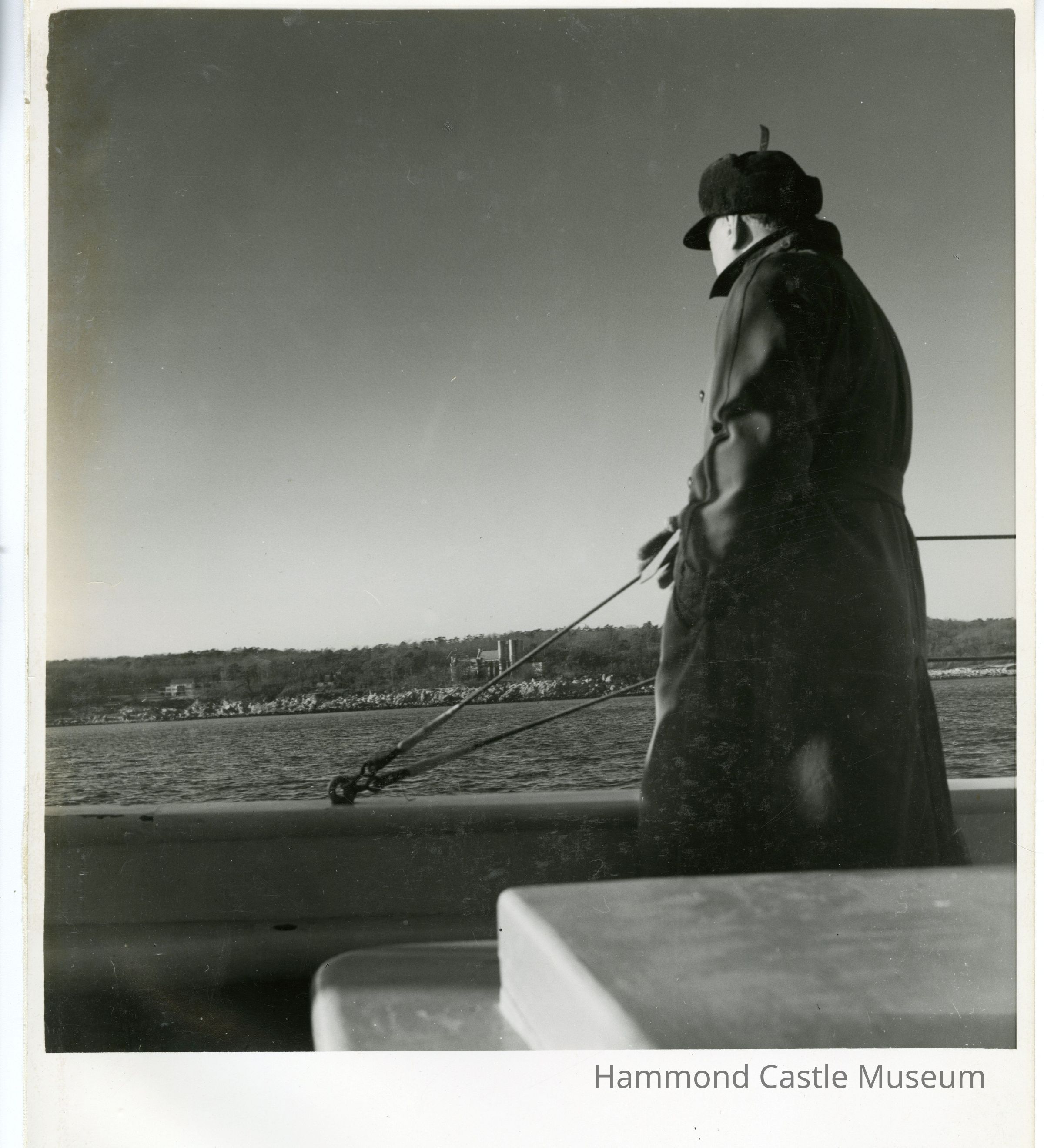 OVS-423 Hammond on ship w Hammond Castle on shore