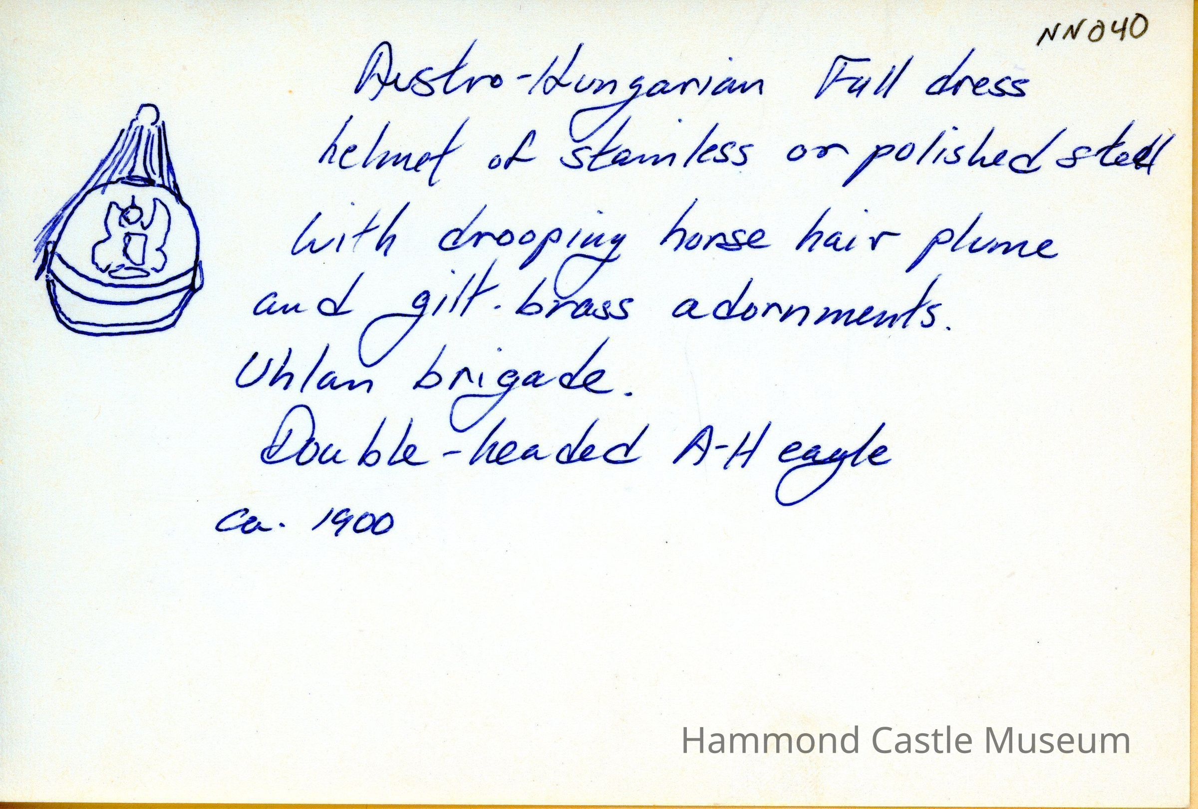 Uhlan brigade - original would have been made of stainless or polished steel w dropping horse hair plume & gilt brass adornments of double eagle