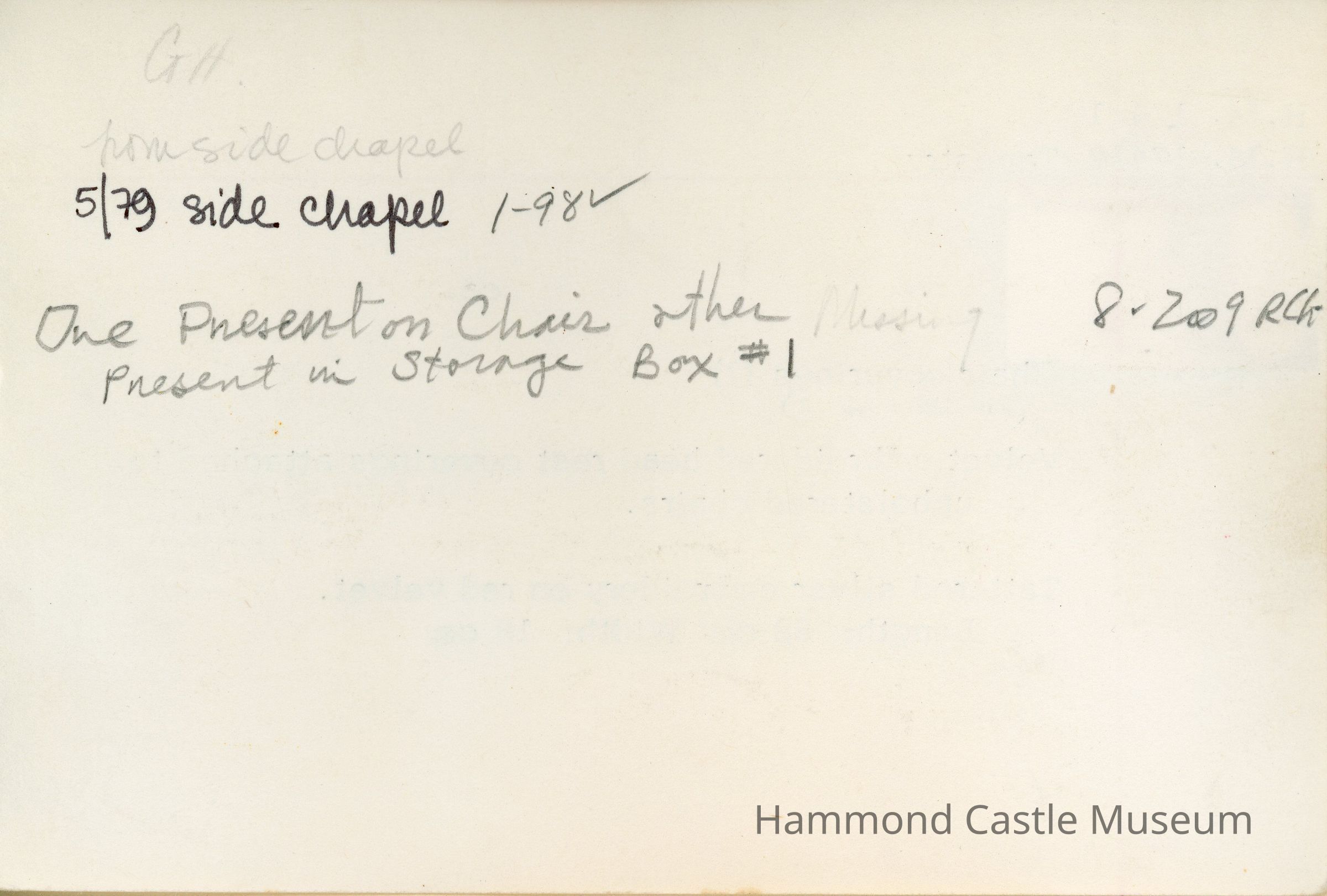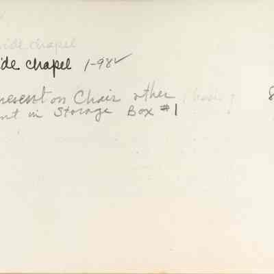 2023 - removed to textile storage boxes when chairs deaccessioned (one missing)Collection