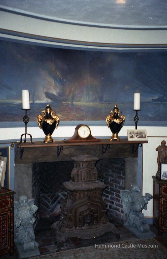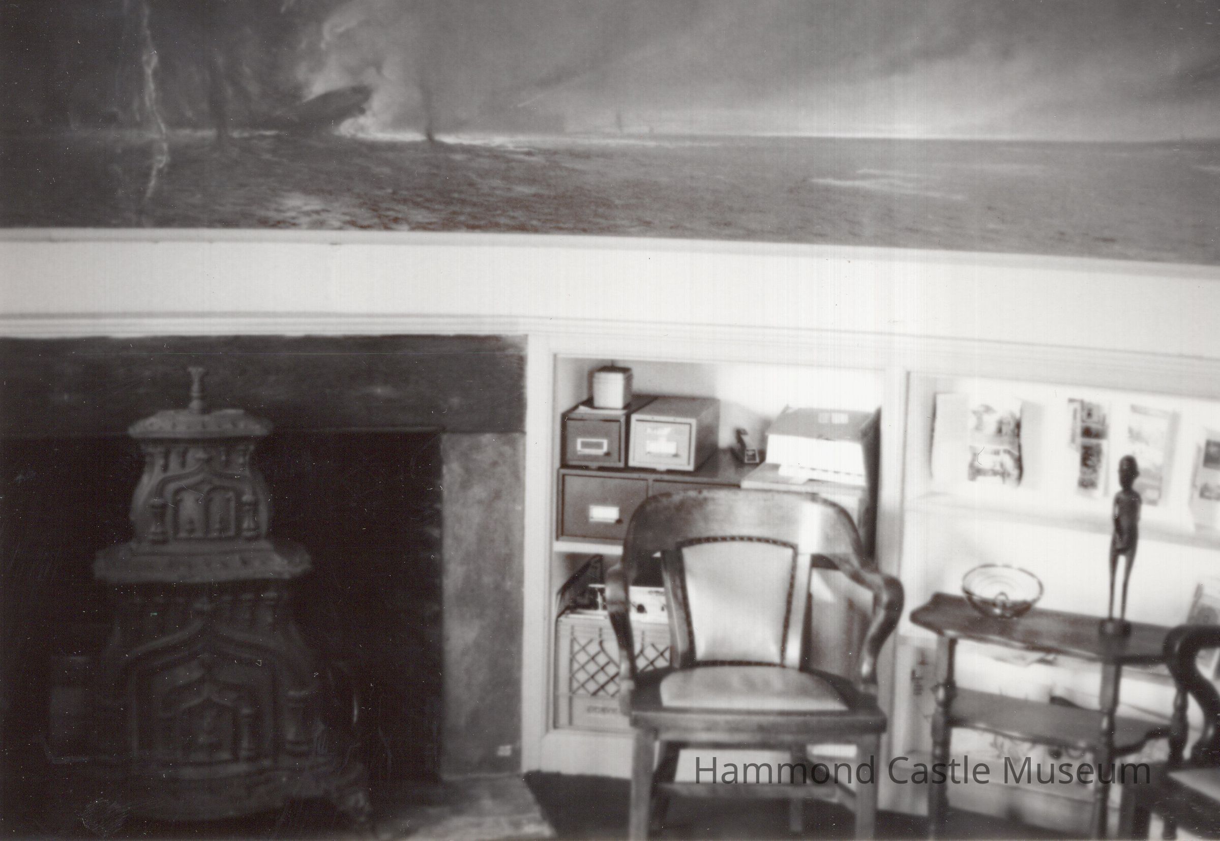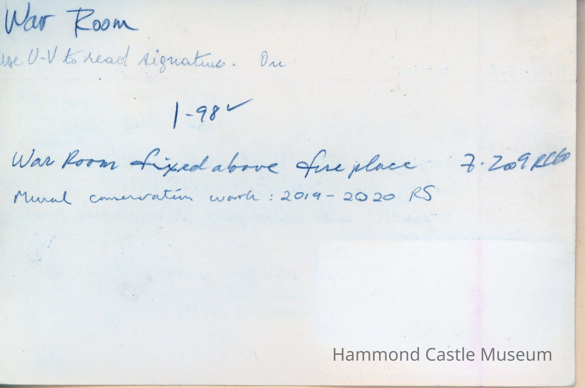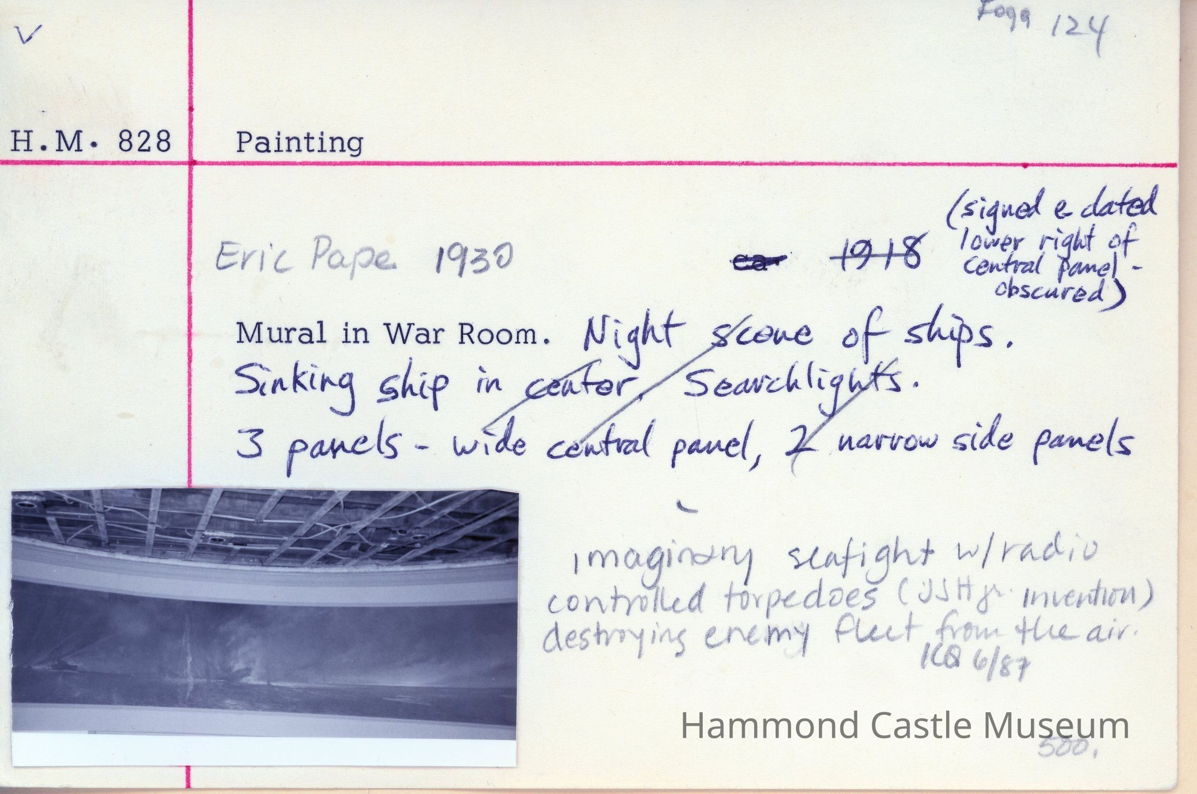 Mural in War Room, painted by Eric Pape in 1918. Signed and dated lower right of central panel, obscured.