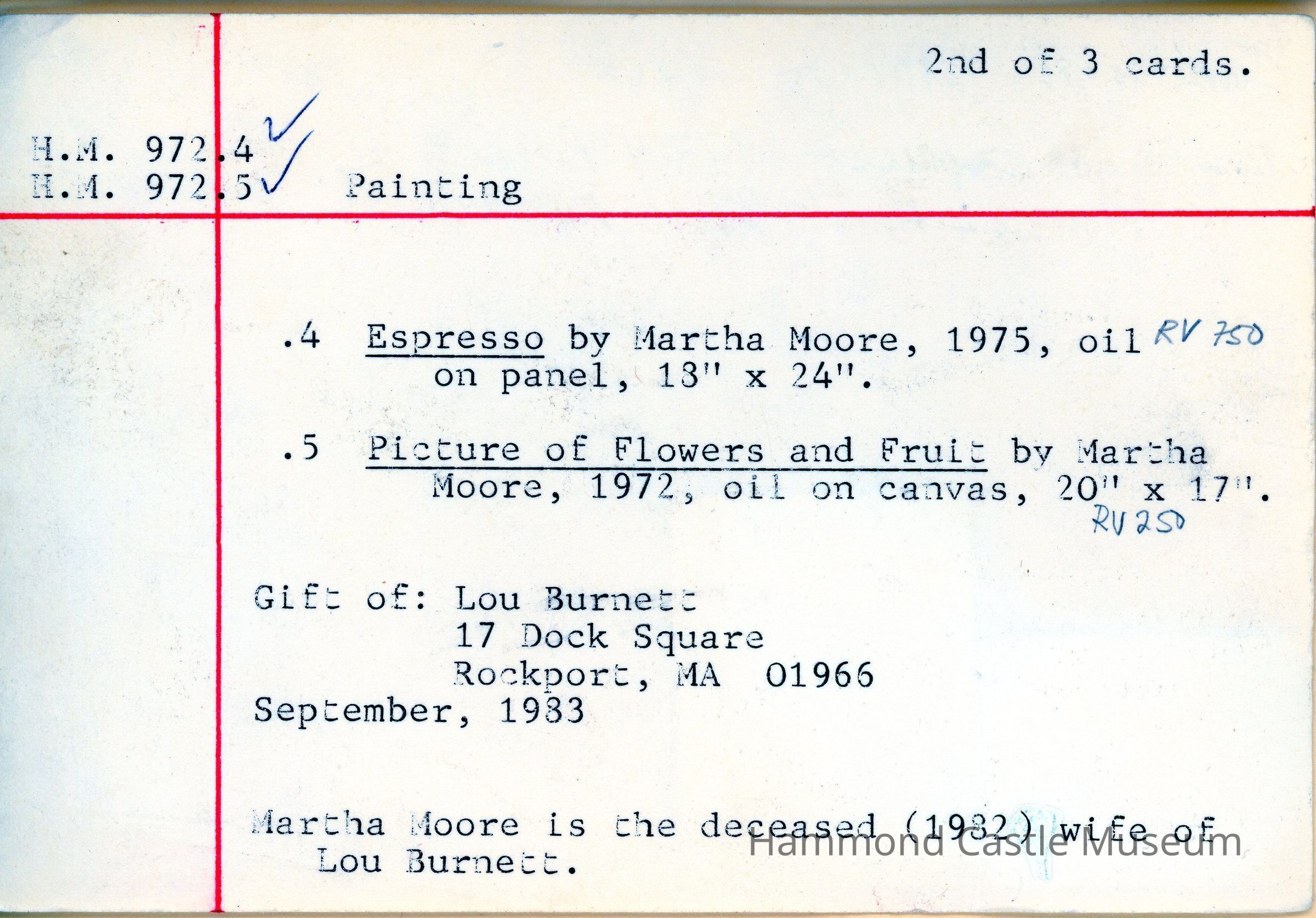 Part of set of 7 paintings donated by Lou Burnett (17 Dock Square, Rockport, MA 01966) September, 1983Collection