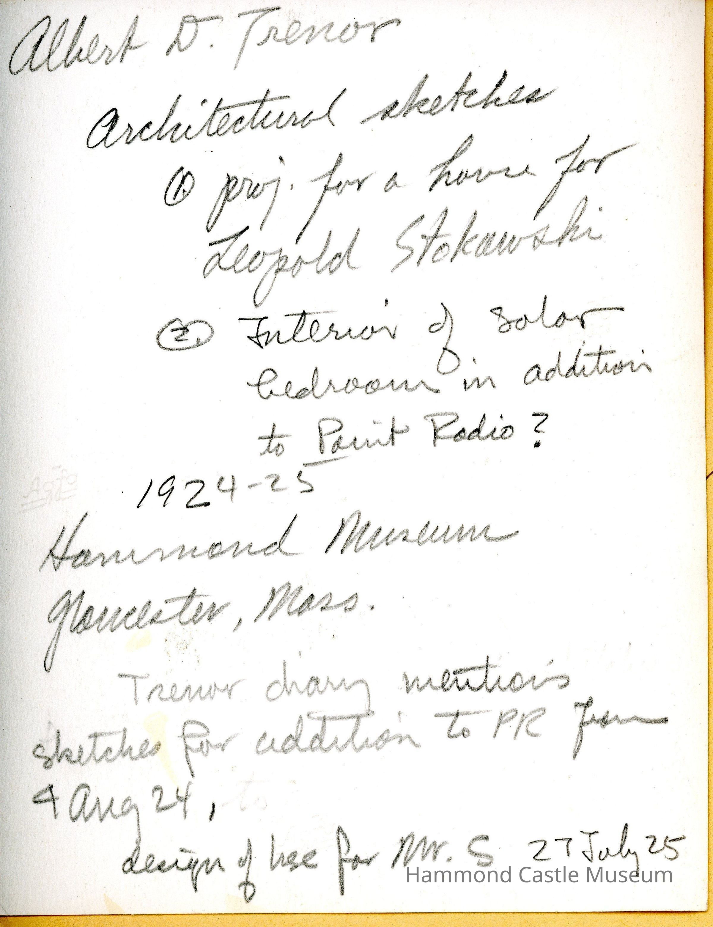 PB5-051 1924 ca renovation sketch Possibly Stokowski house idea sketch mentioned in Trenor diary Later research notes on back