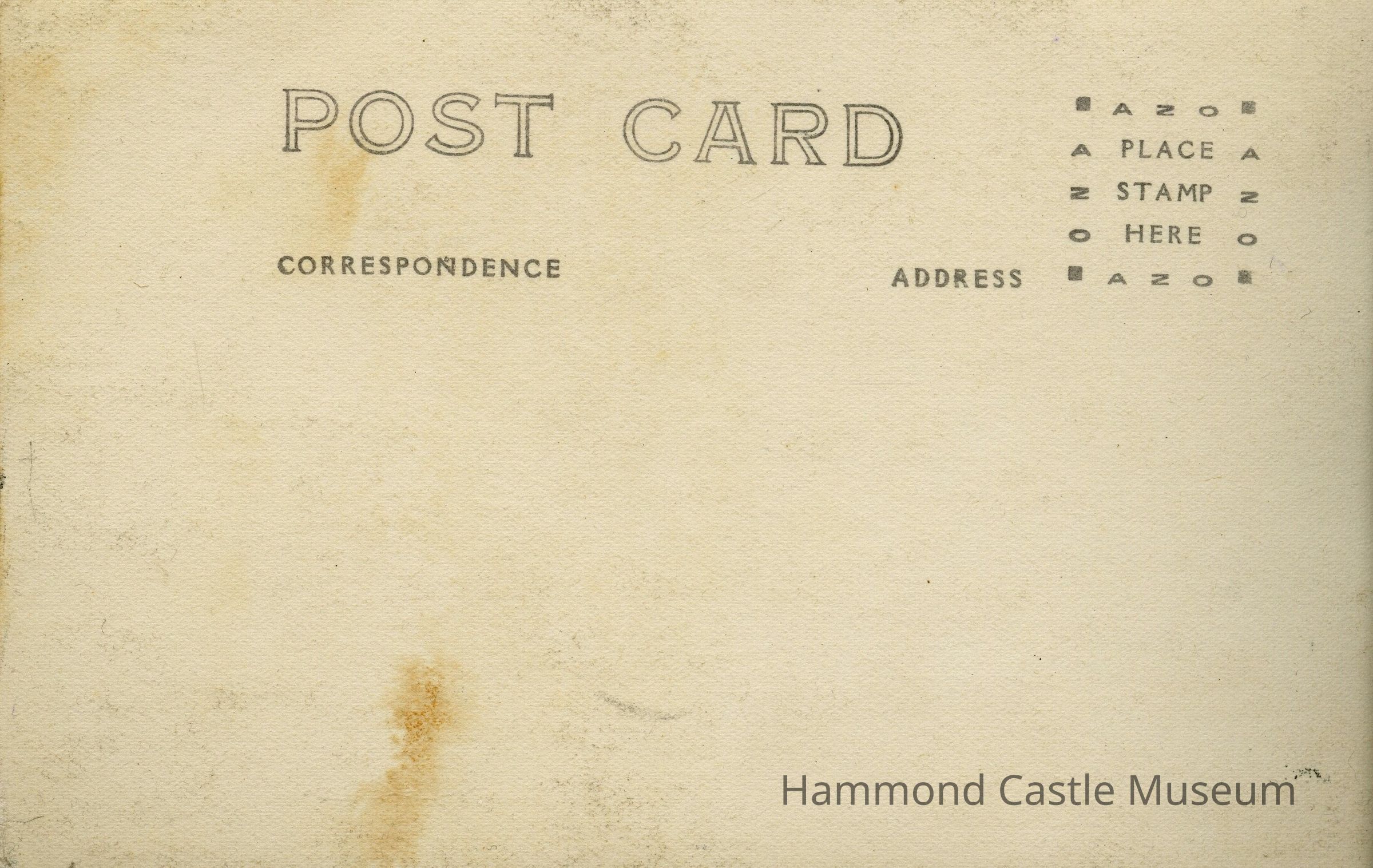 Early postcard of courtyard pool & bridge, w season sarcophagus but pre-Paris statue