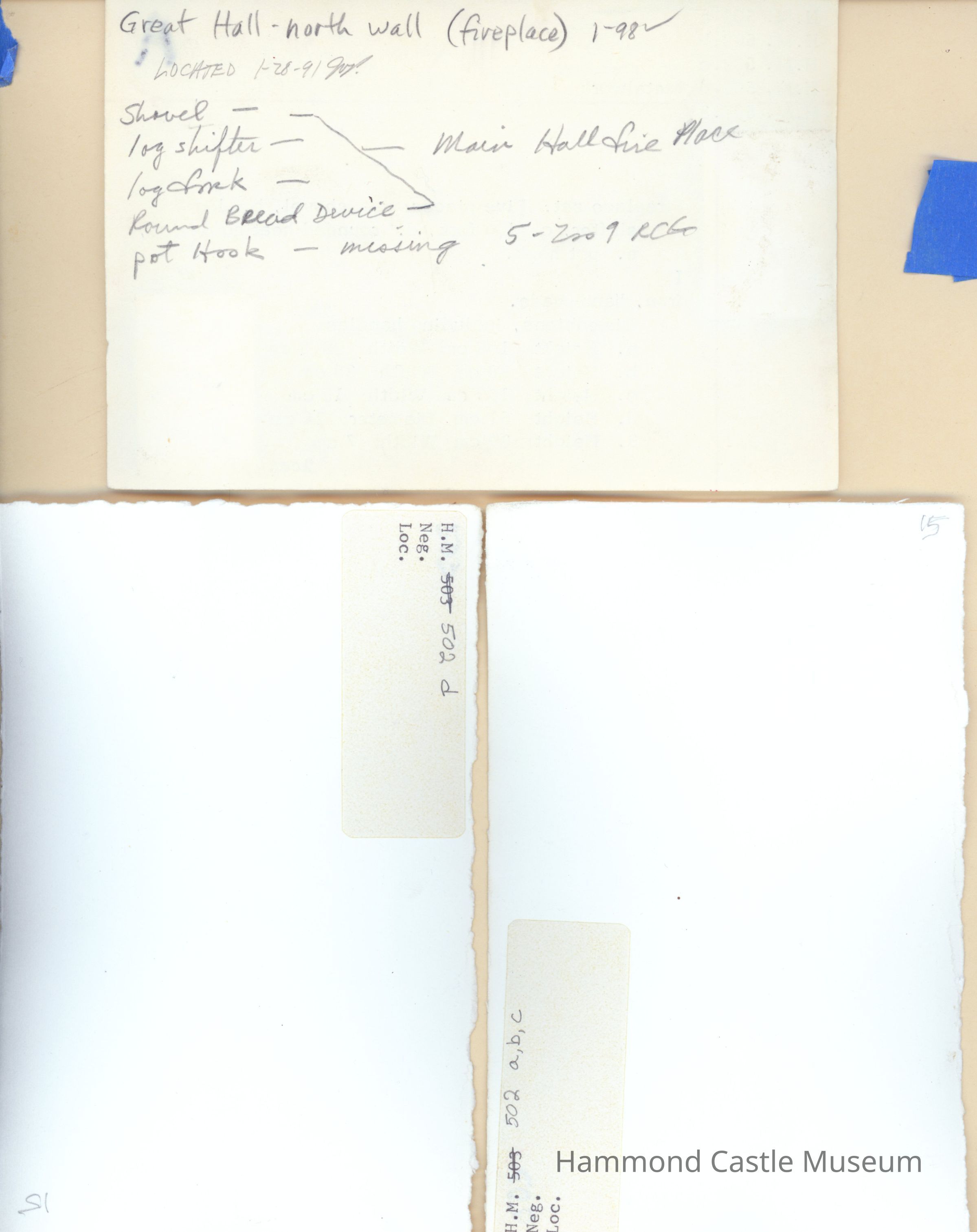Part of fireplace set. b. log shifter Iron, hand-made.