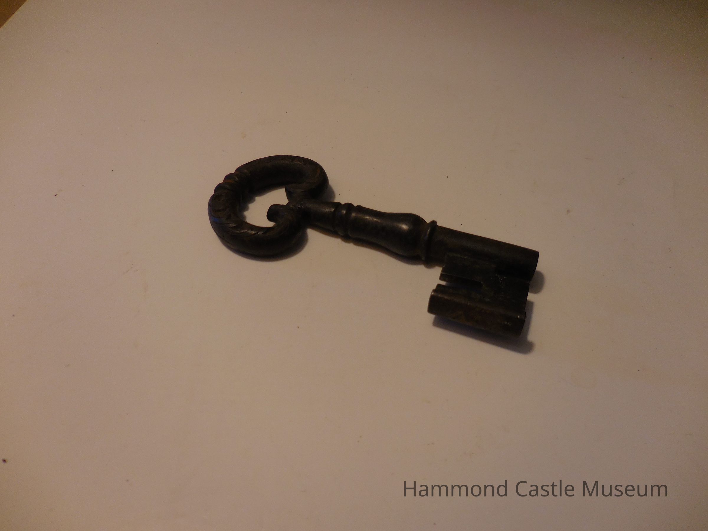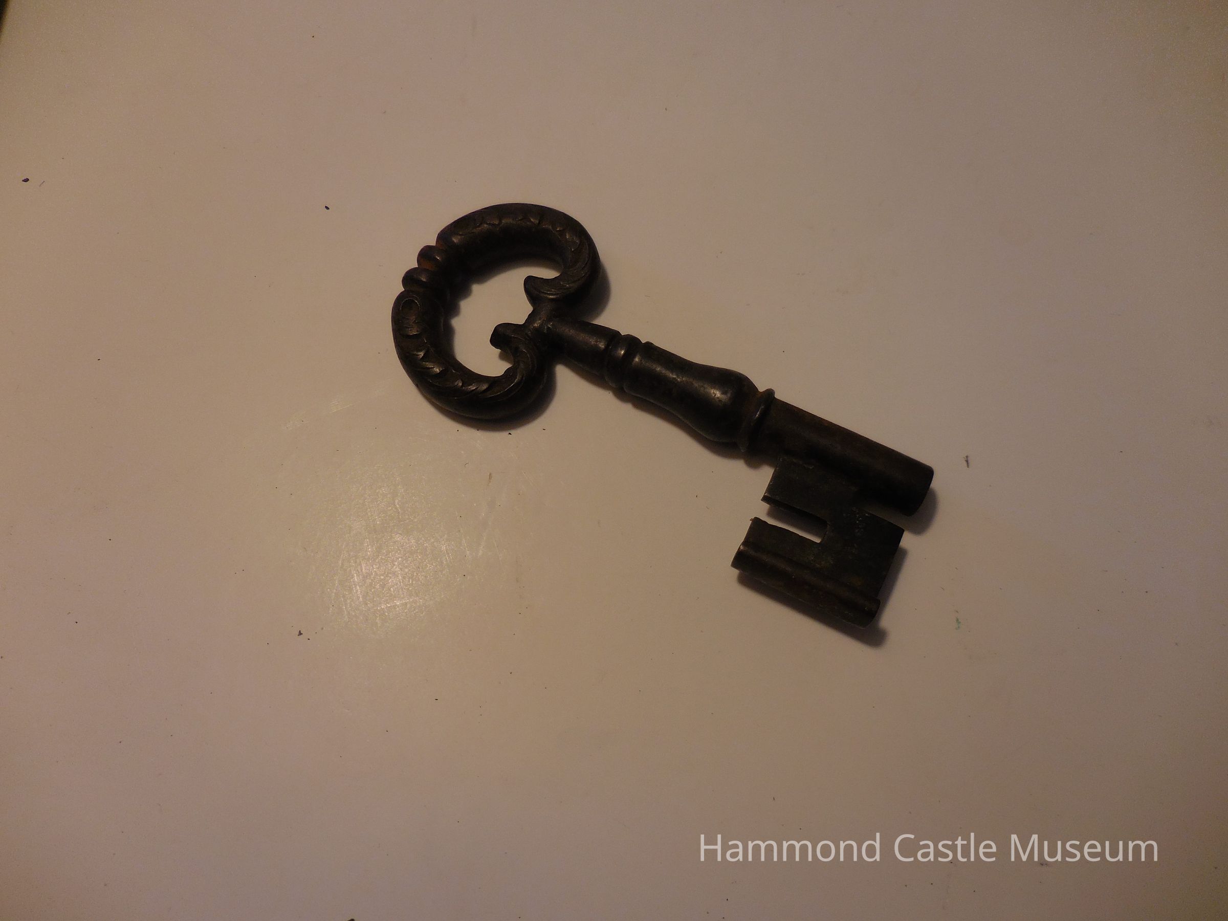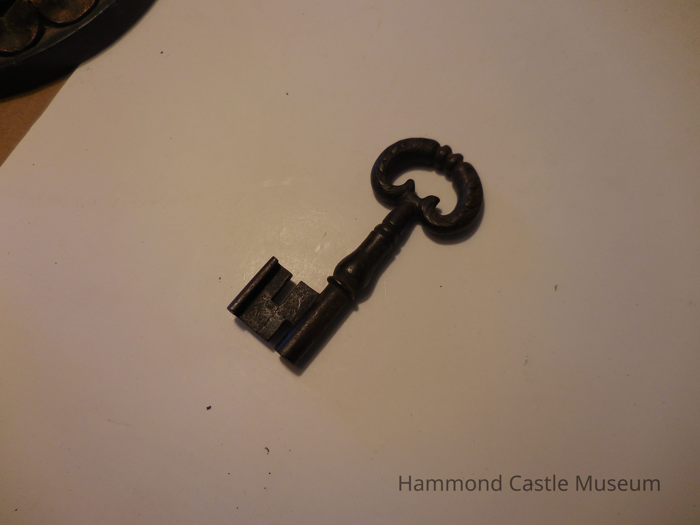 Small metal key. Head looks like two fish.