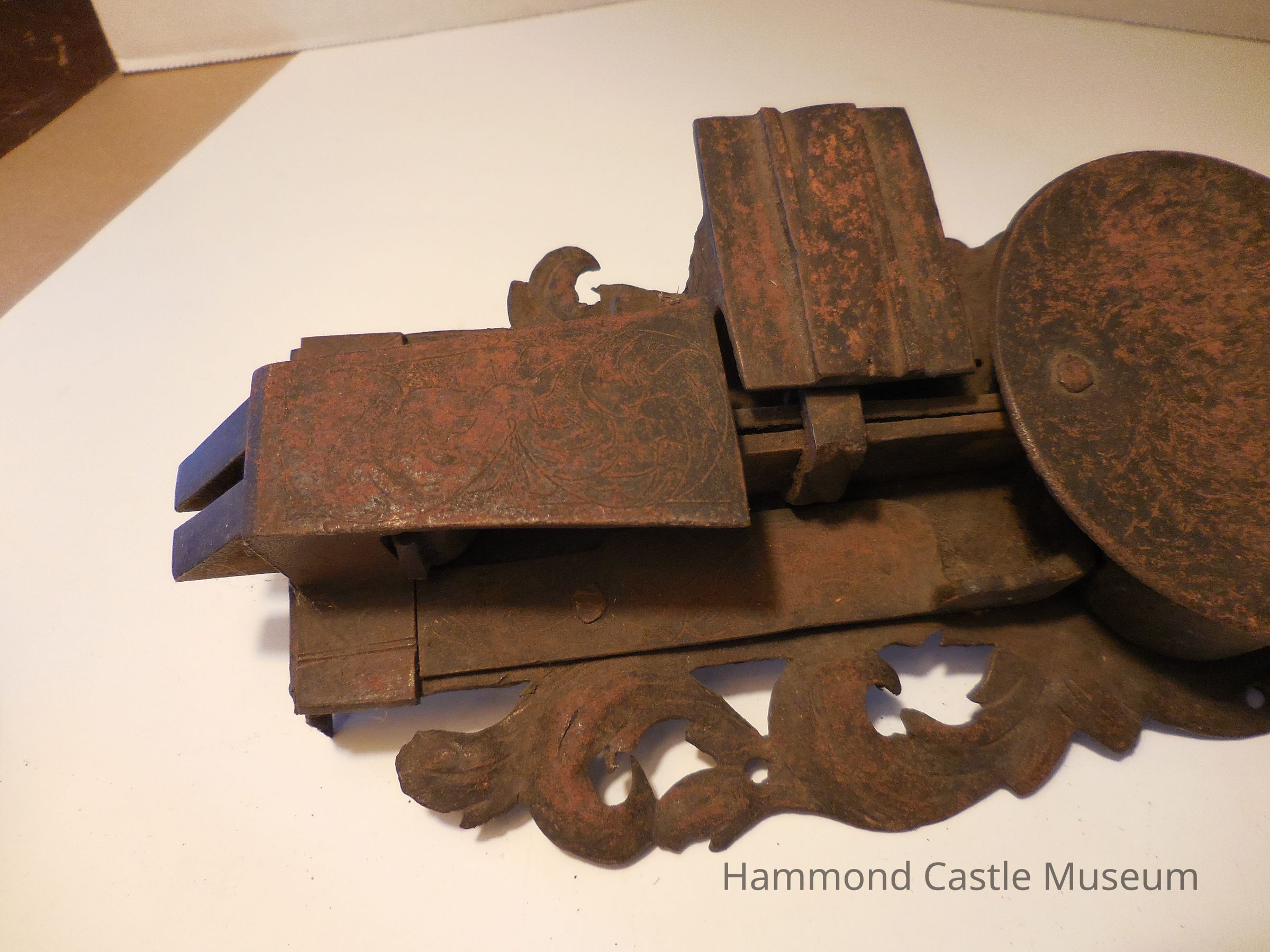 Lock with floral / fleur-de-lis designs.
