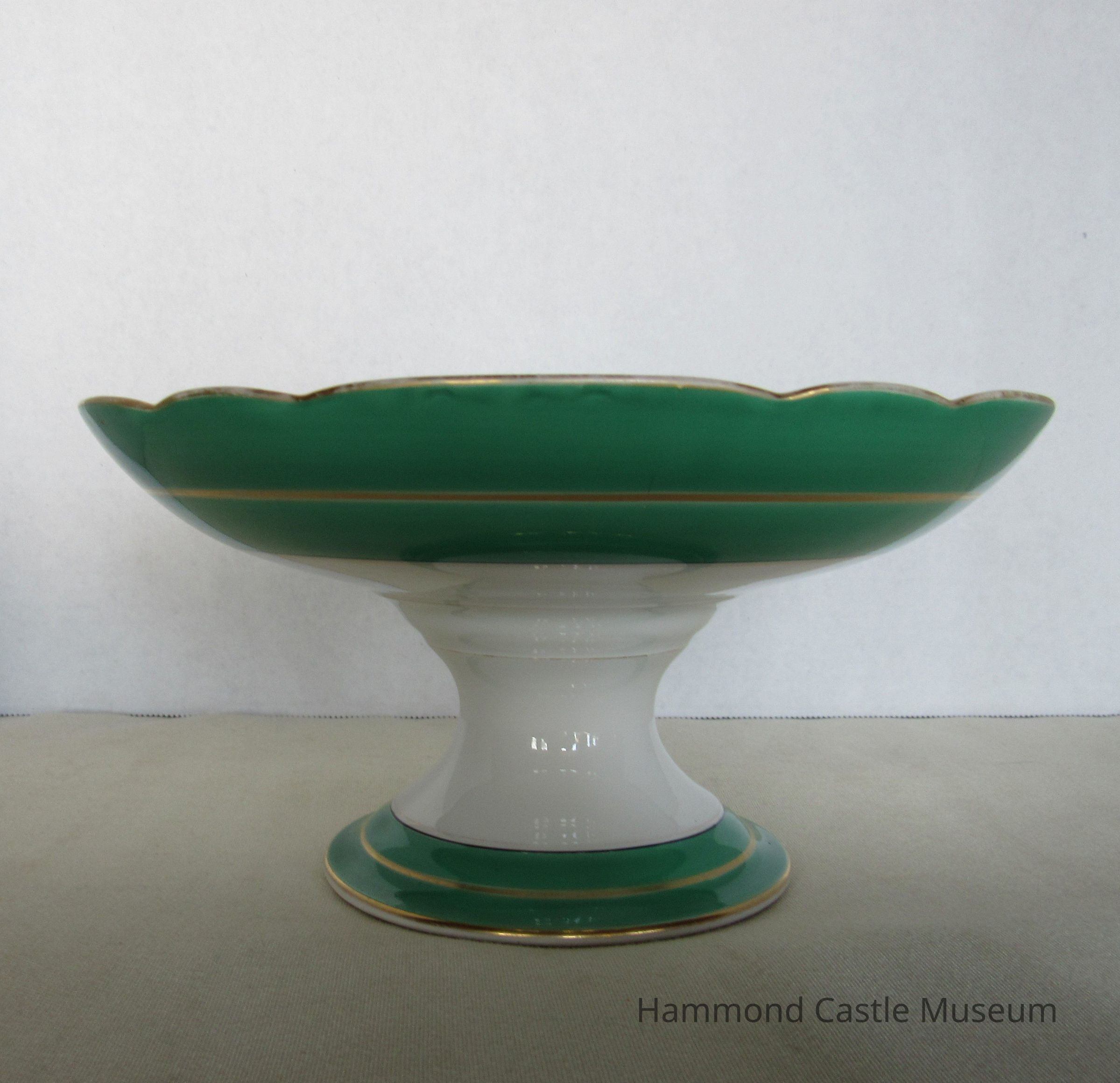 Fruit Bowl on Pedestal with Floral Center & Green Border