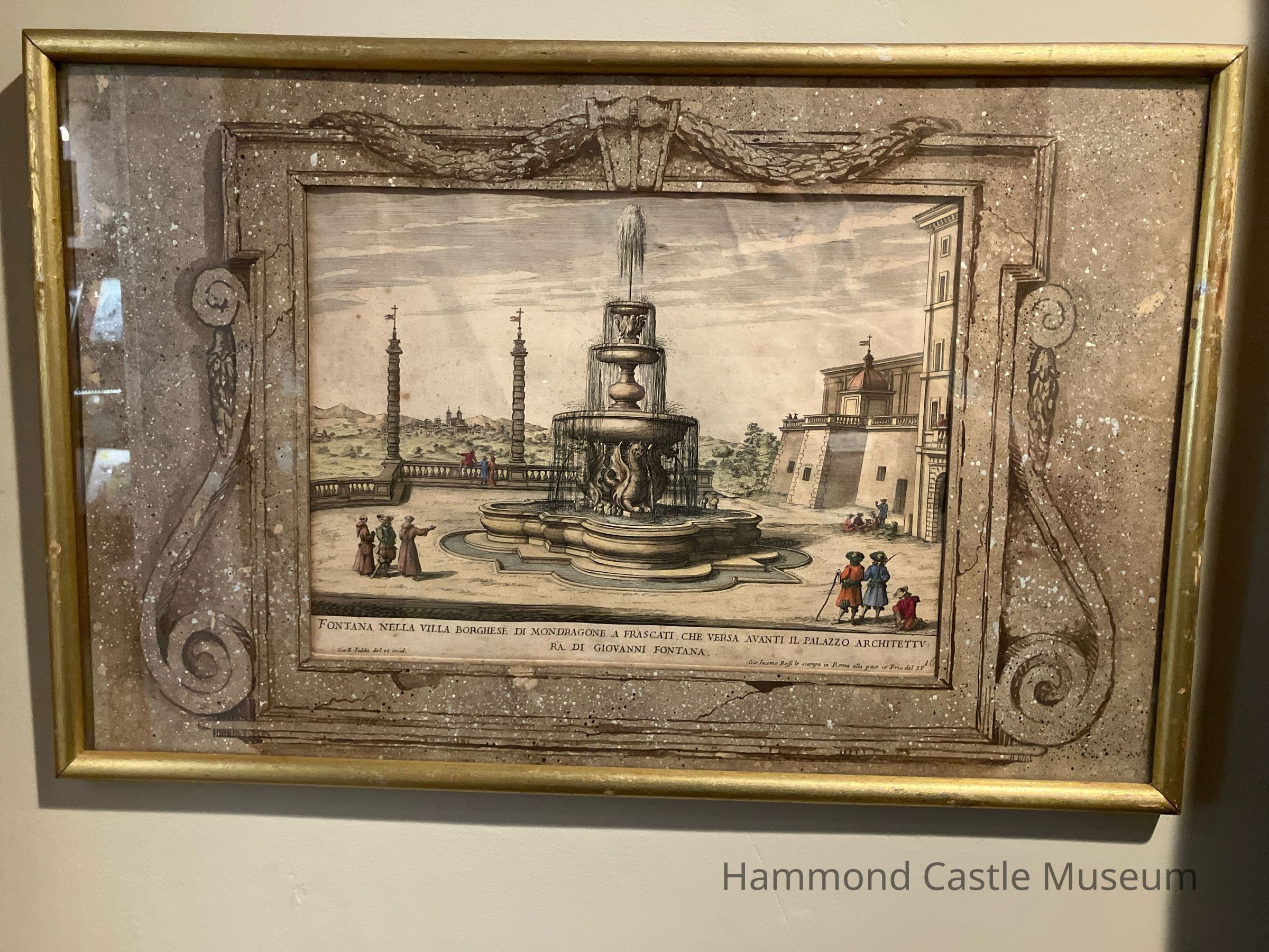 G B Falda Engraving of Fontana nella Villa Borghese Di Mondragone Frascati Che Versa Avanti Il Palazzo Architettura Di Giovanni Fontana
