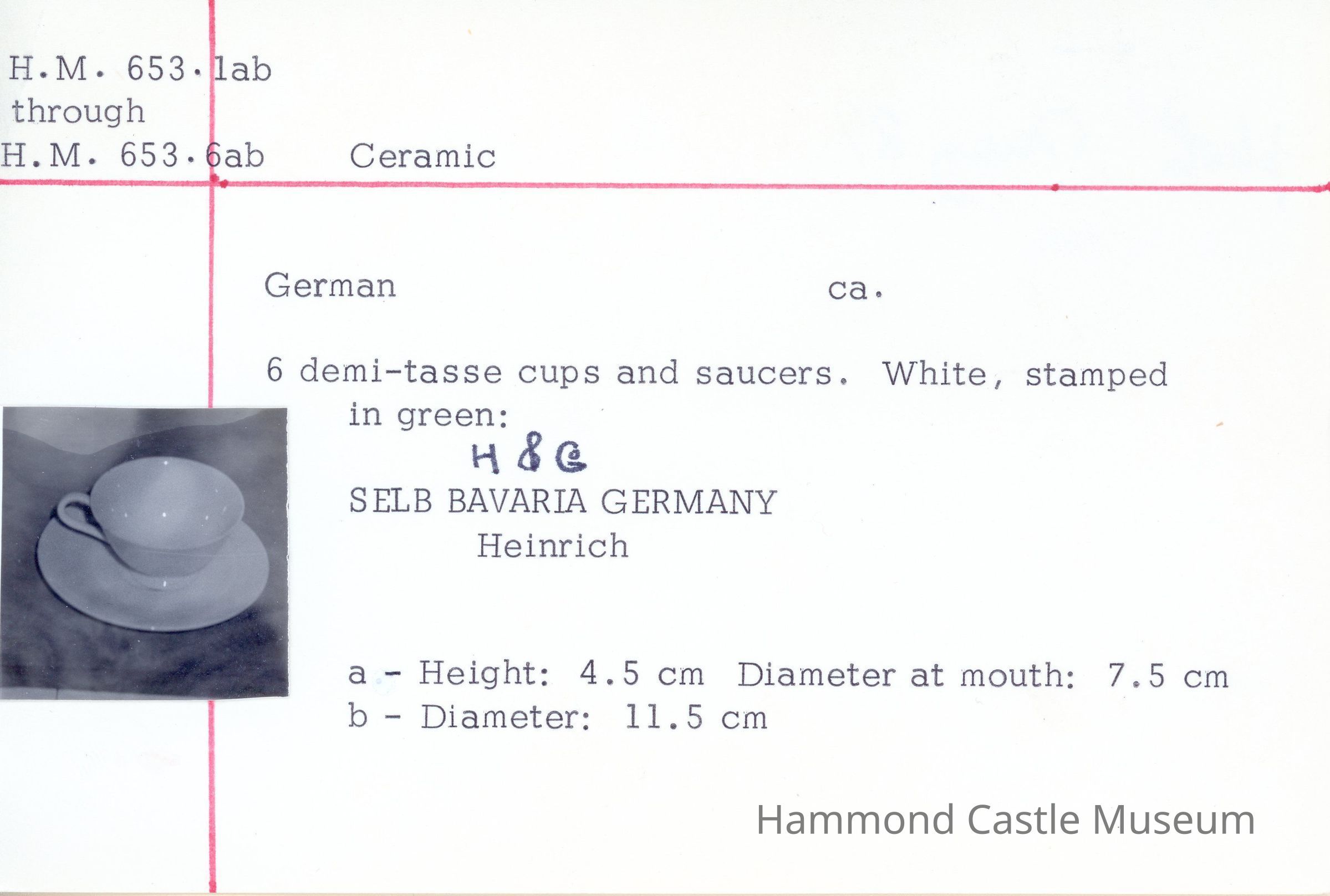 Set of 6 German demi-tasse Saucers for cups (a) White, stamped in green: H&G SELB BAVARIA GERMANY Heinrich