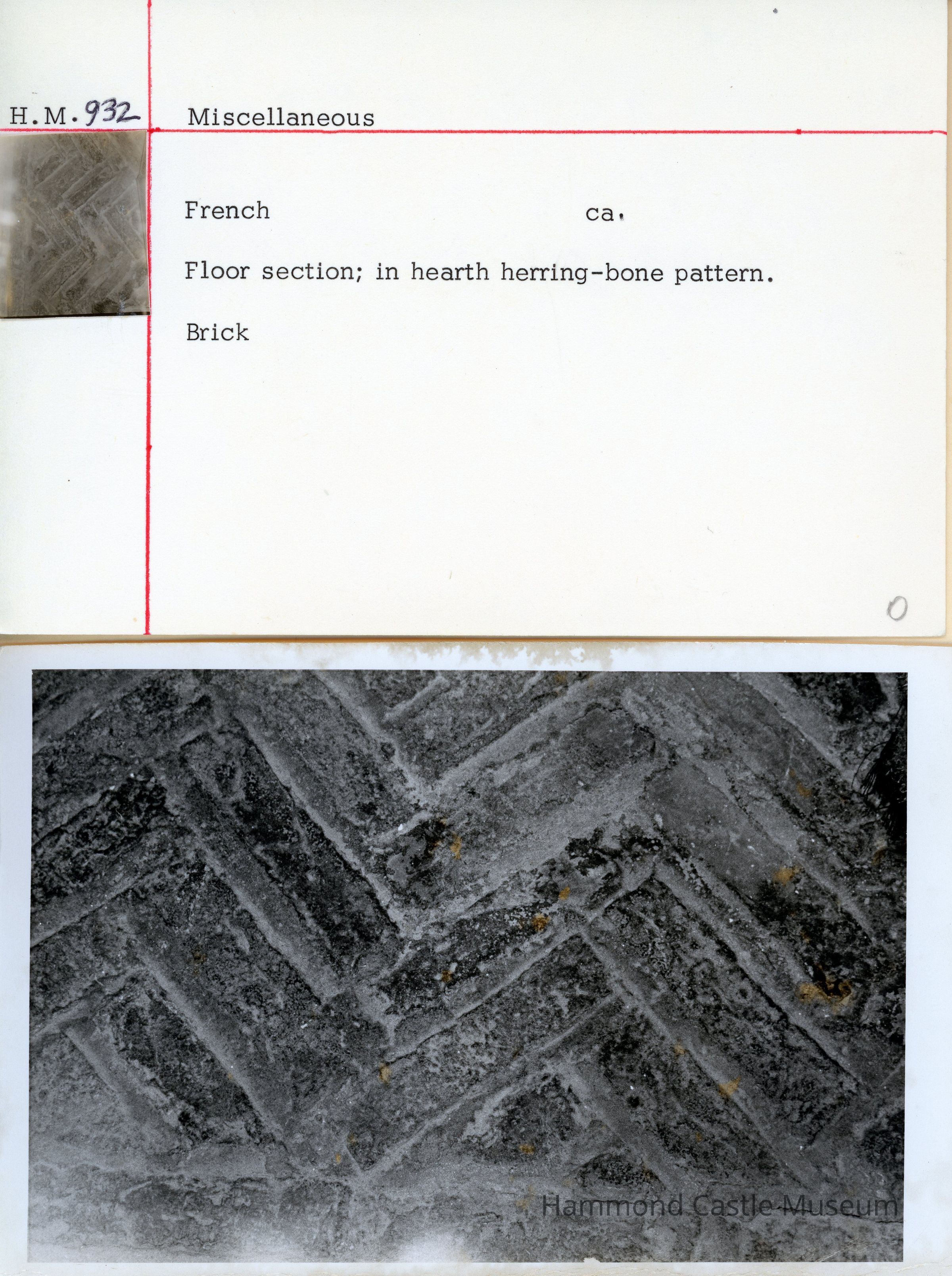 Floor section; in hearth herring-bone pattern.