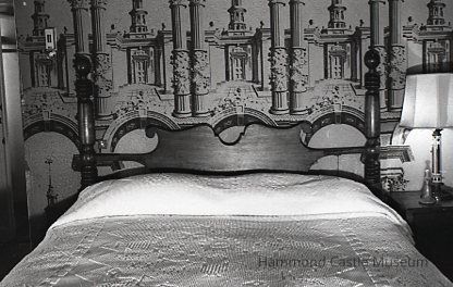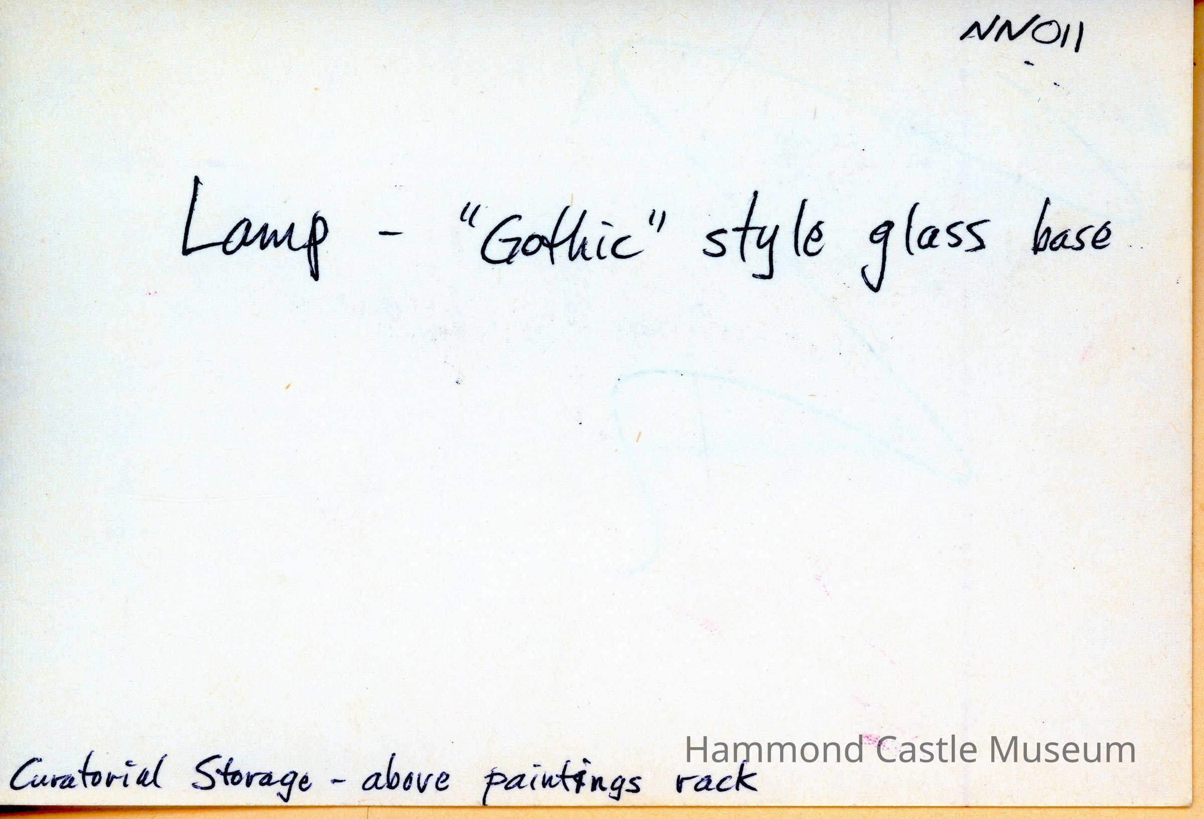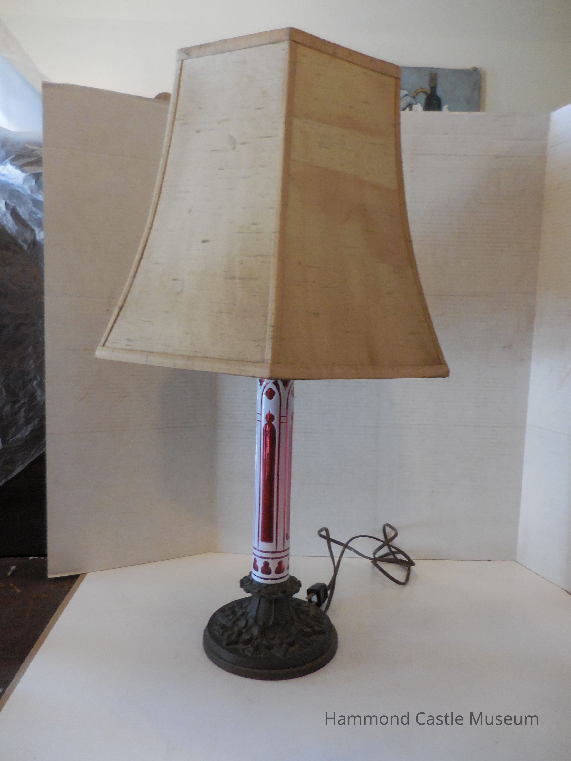 The lampshade is large, off-white, and fairly foxed.
