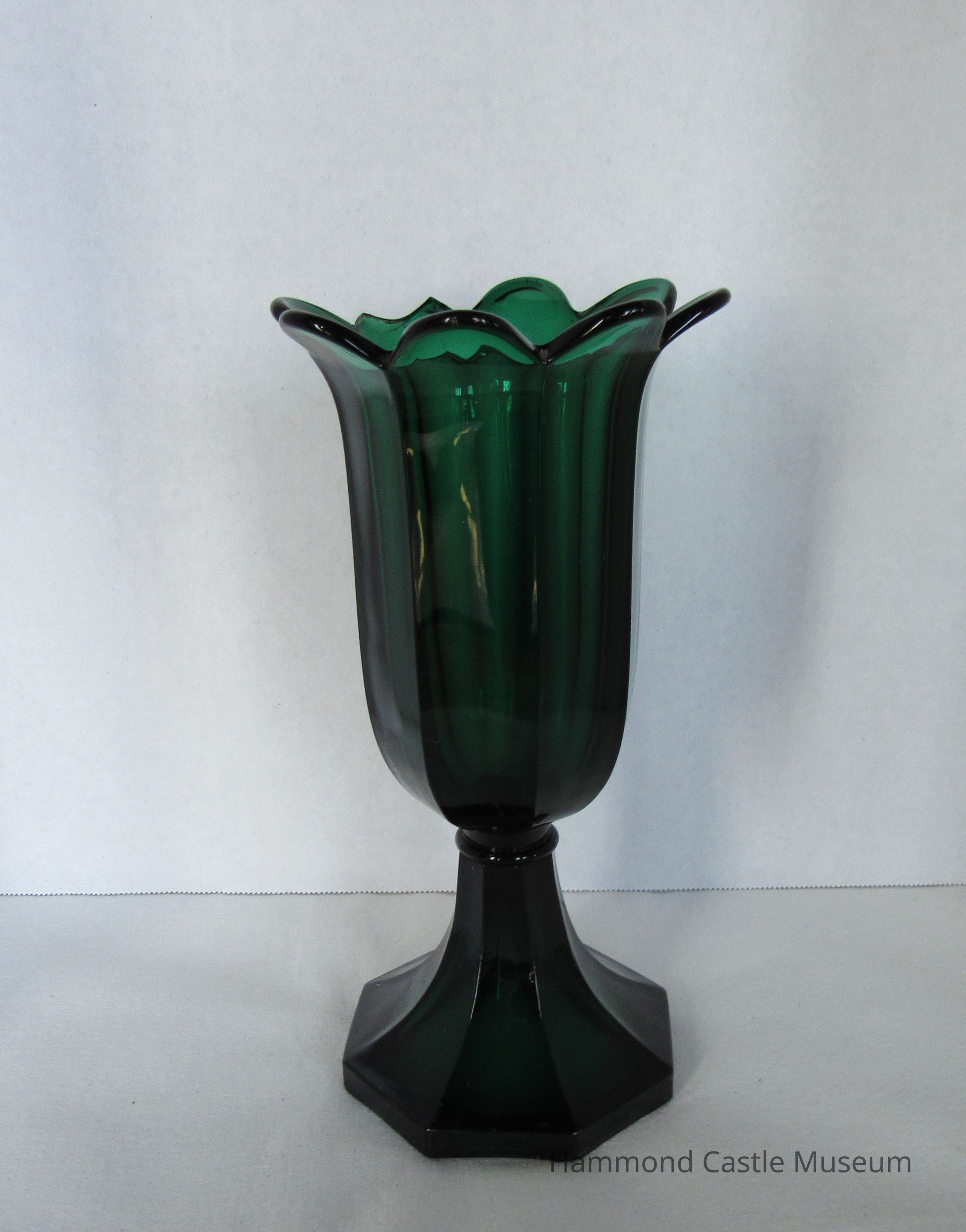Set of 4 vases. Tulip-shaped. Dark green. . 3 - chipped "petal".