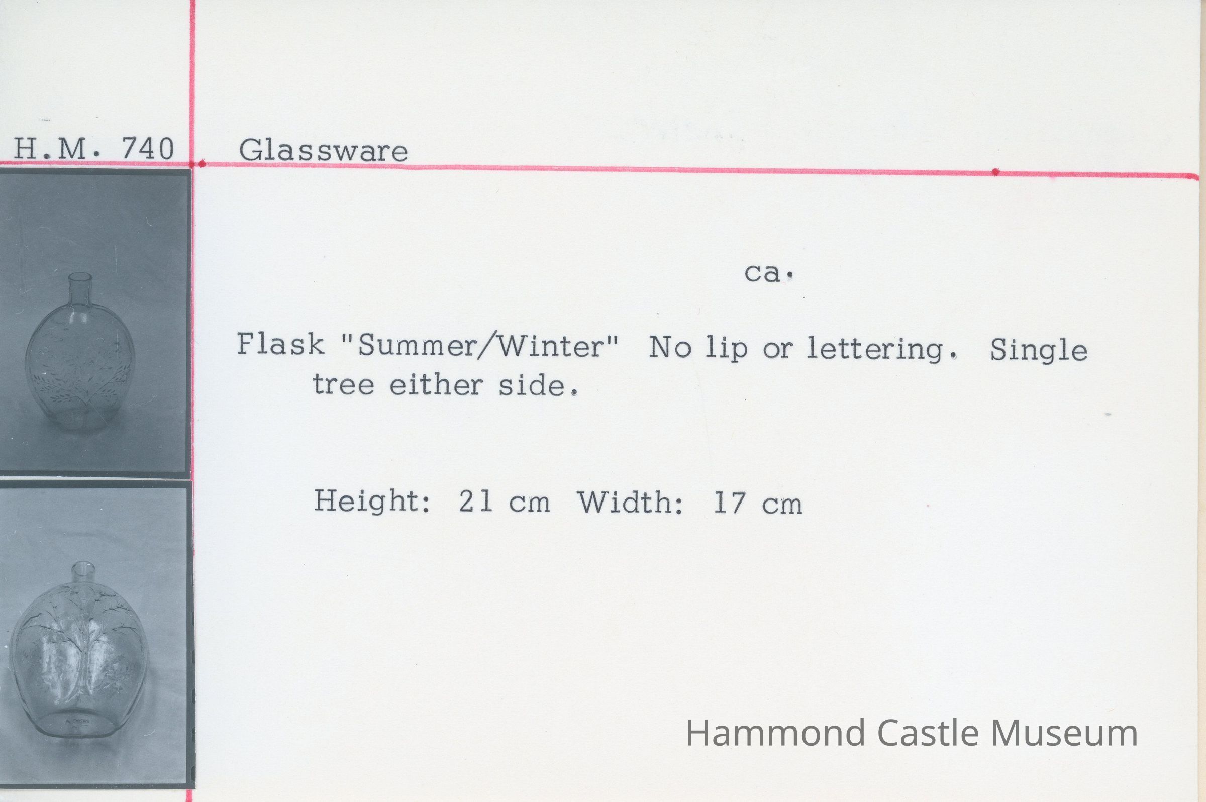 pressed glass flask w Summer & Winter H: 21cm W: 17cm Deaccessioned 1991 for Sotherby auction