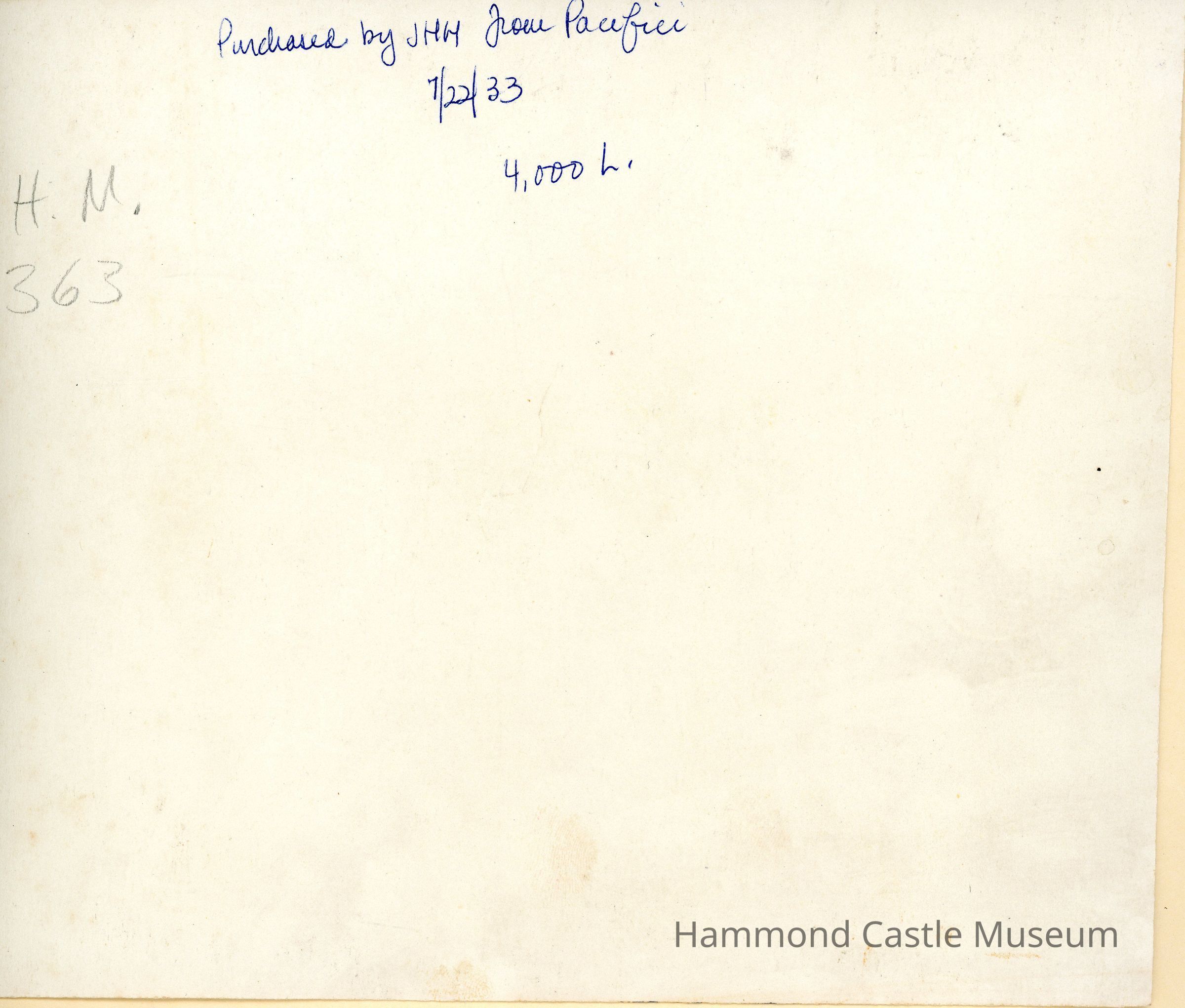 Purchased: July 22, 1933 from Pacifici 4000 lire (combined) ($210.52 in 1930, $3420.76 in 2021)