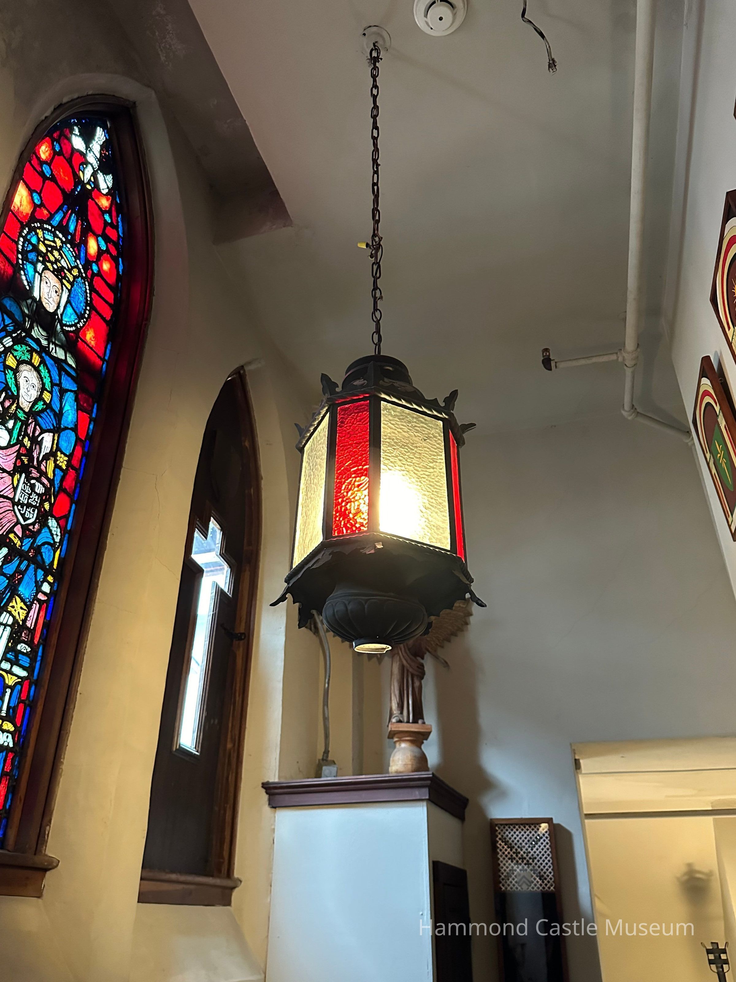Studied in April of 1988, appears that original circular glass panels were replaced after photos but before 2022.