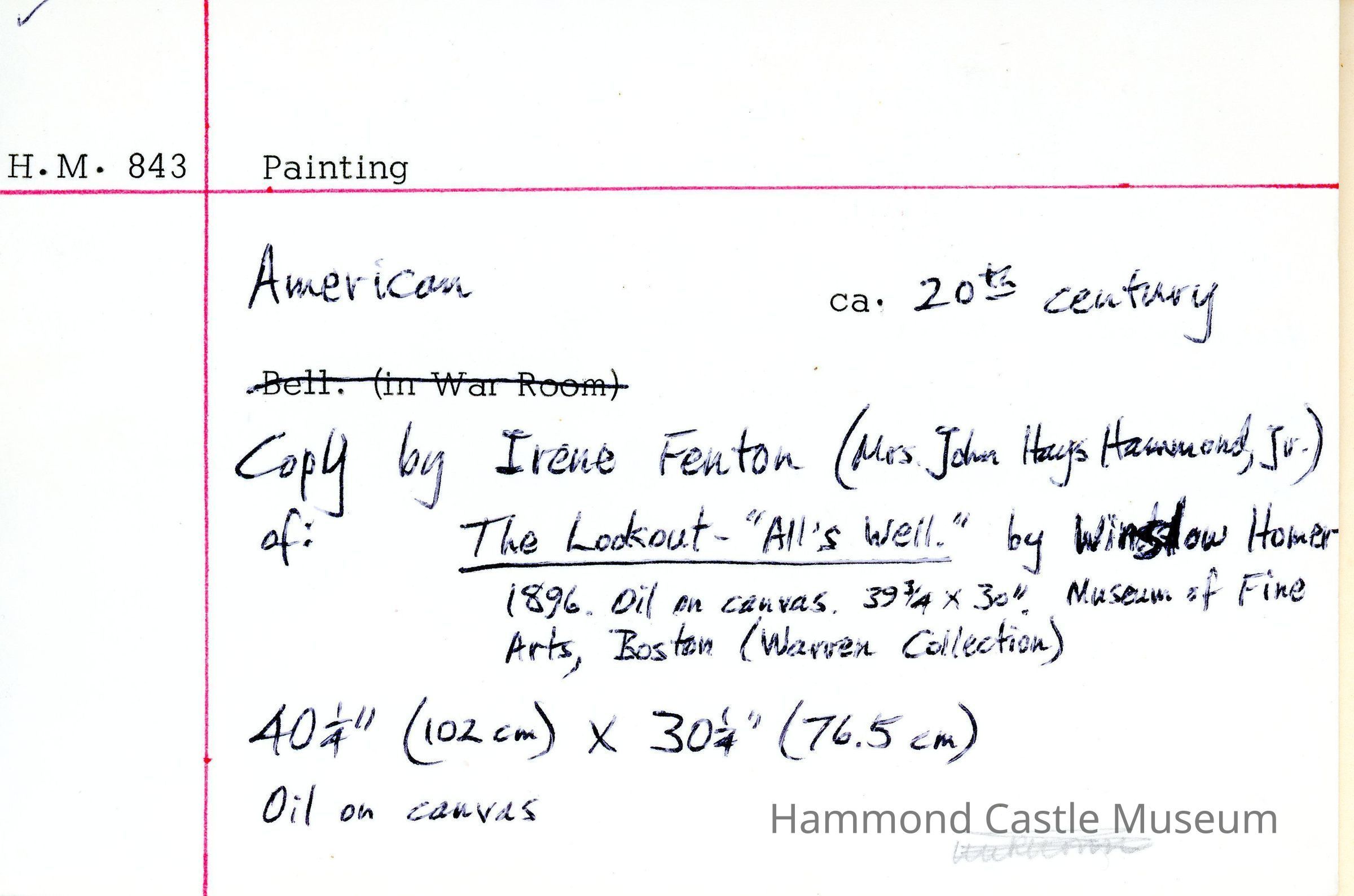 The original “The Lookout - All's Well" was painted by Winslow Homer in 1896 and is in Museum of Fine Arts, Boston (part of the Warren Collection)