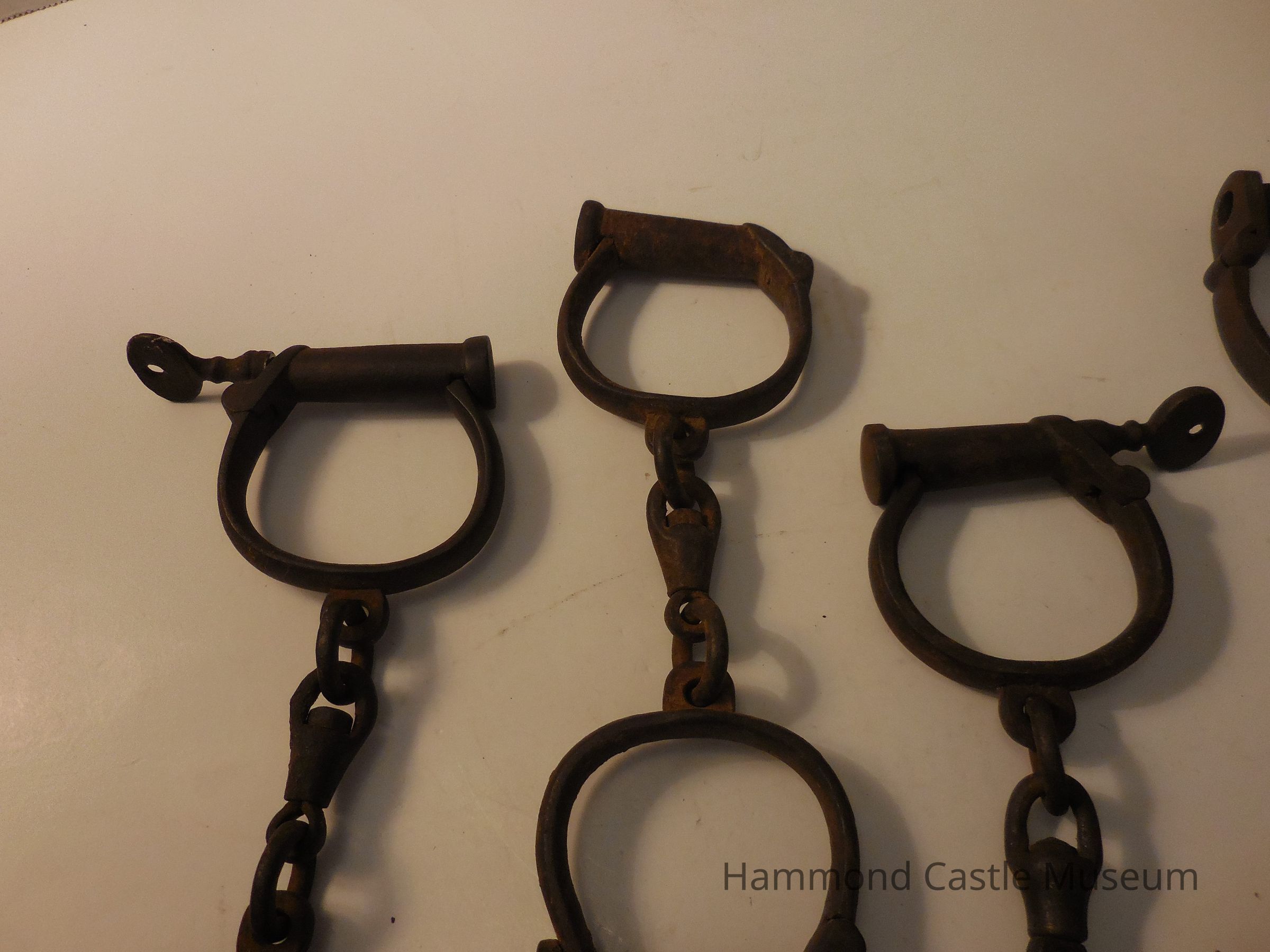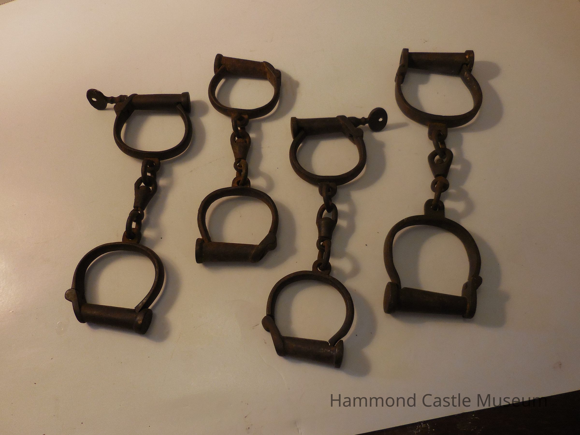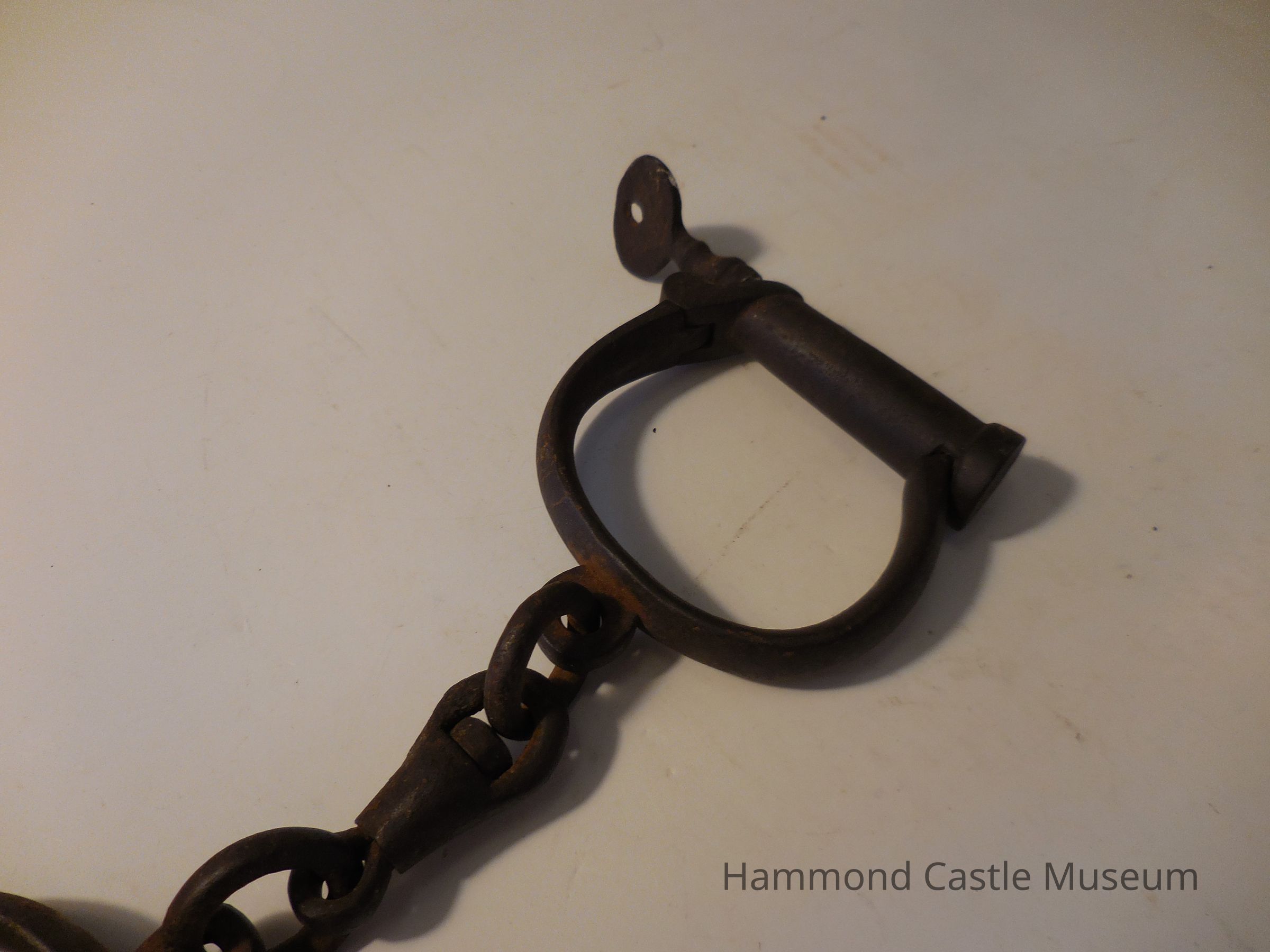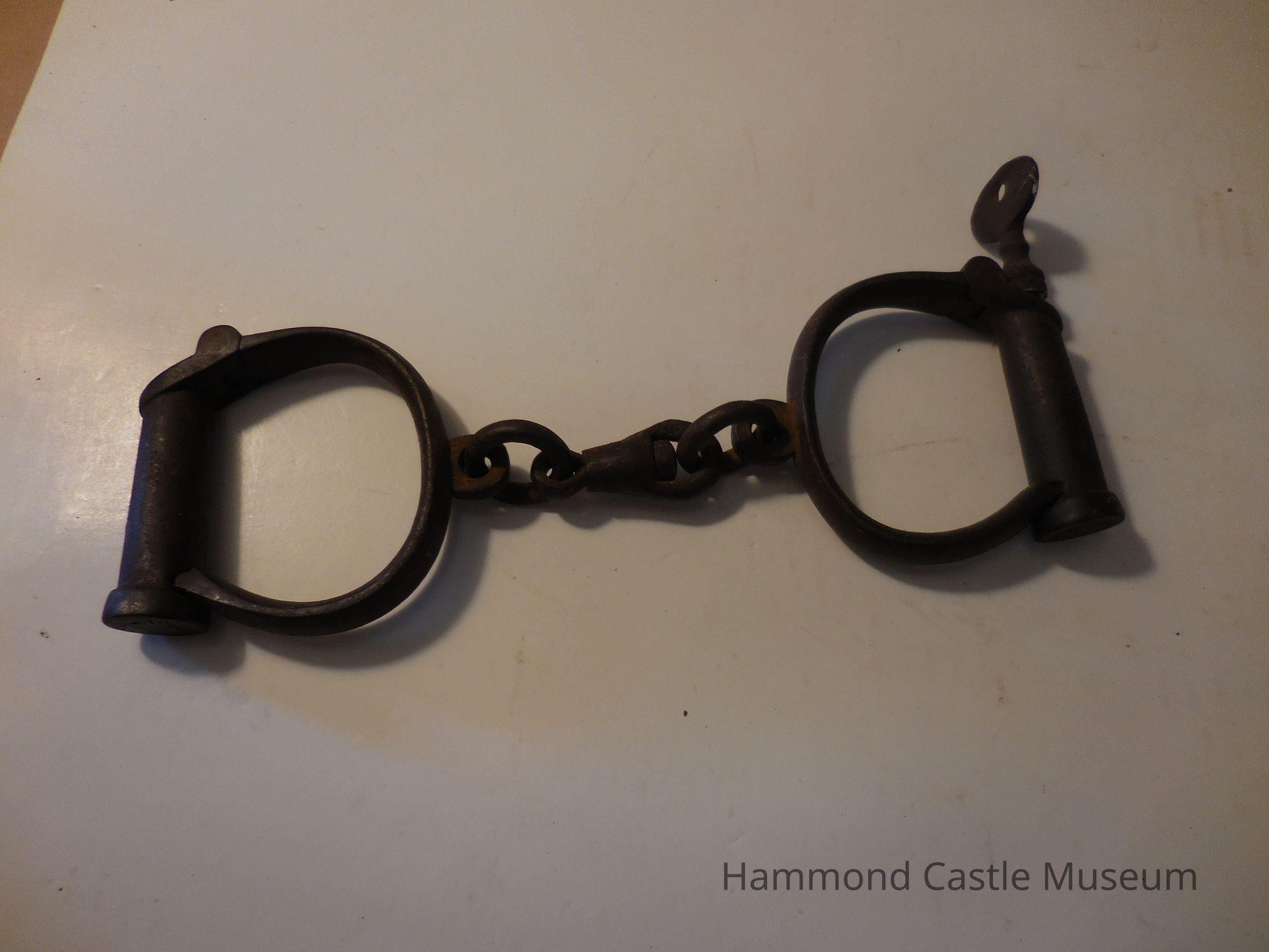 Iron handcuffs with inserted key.