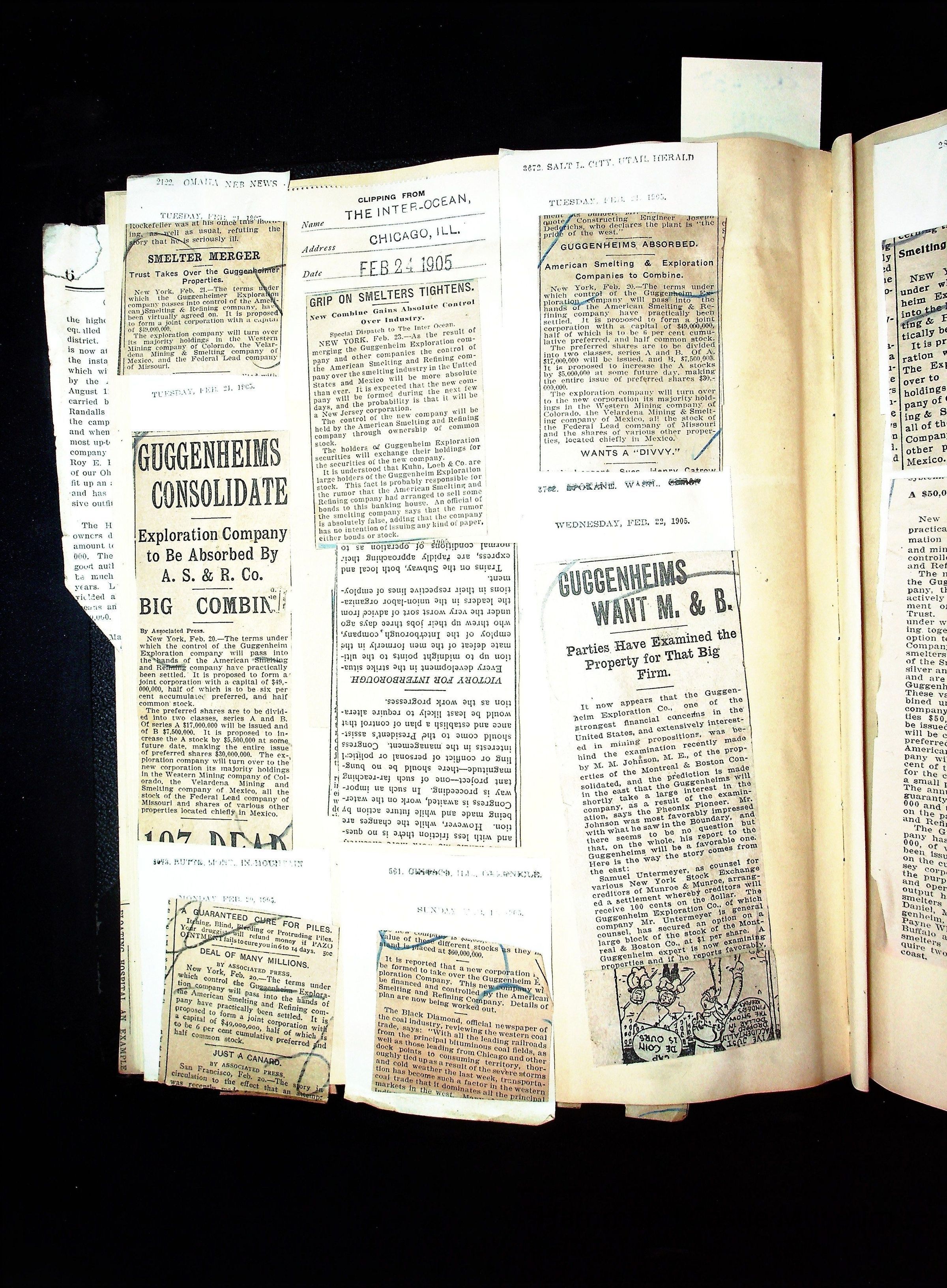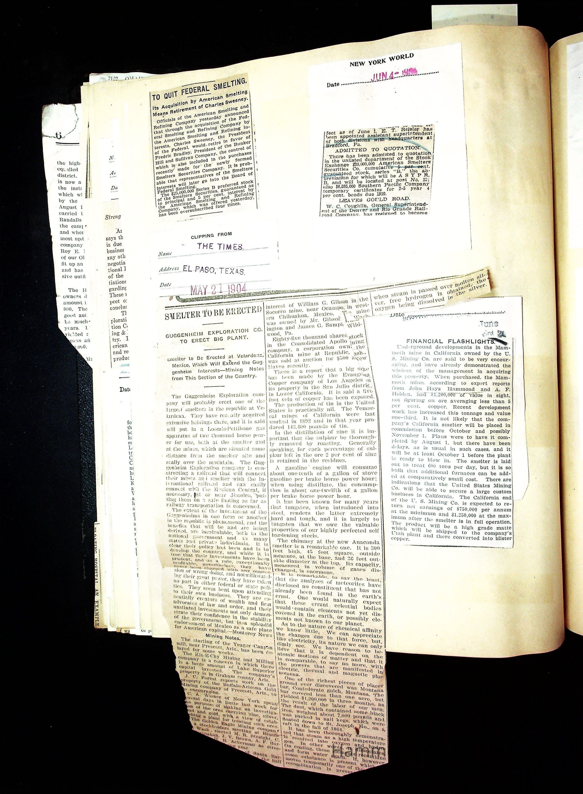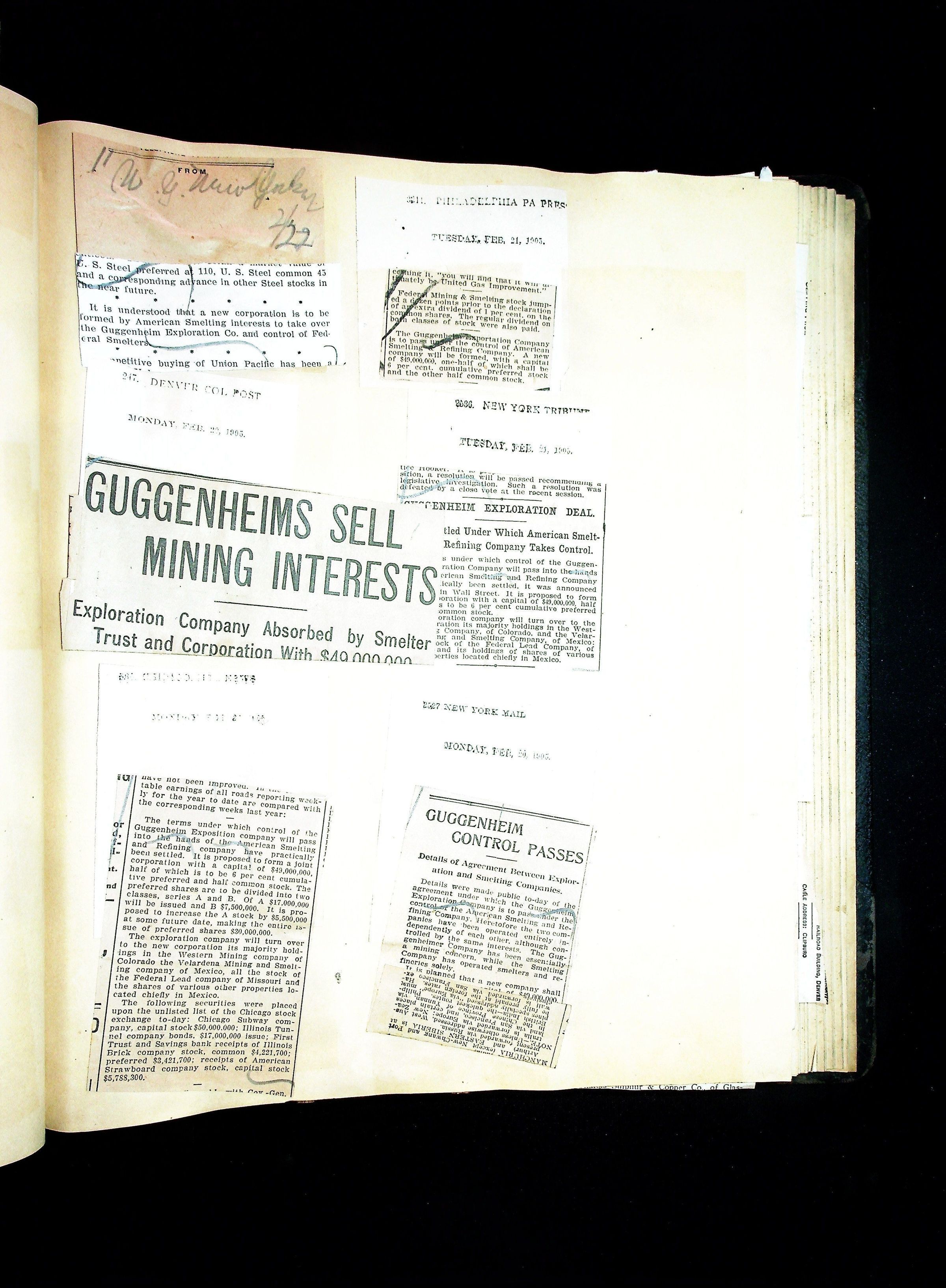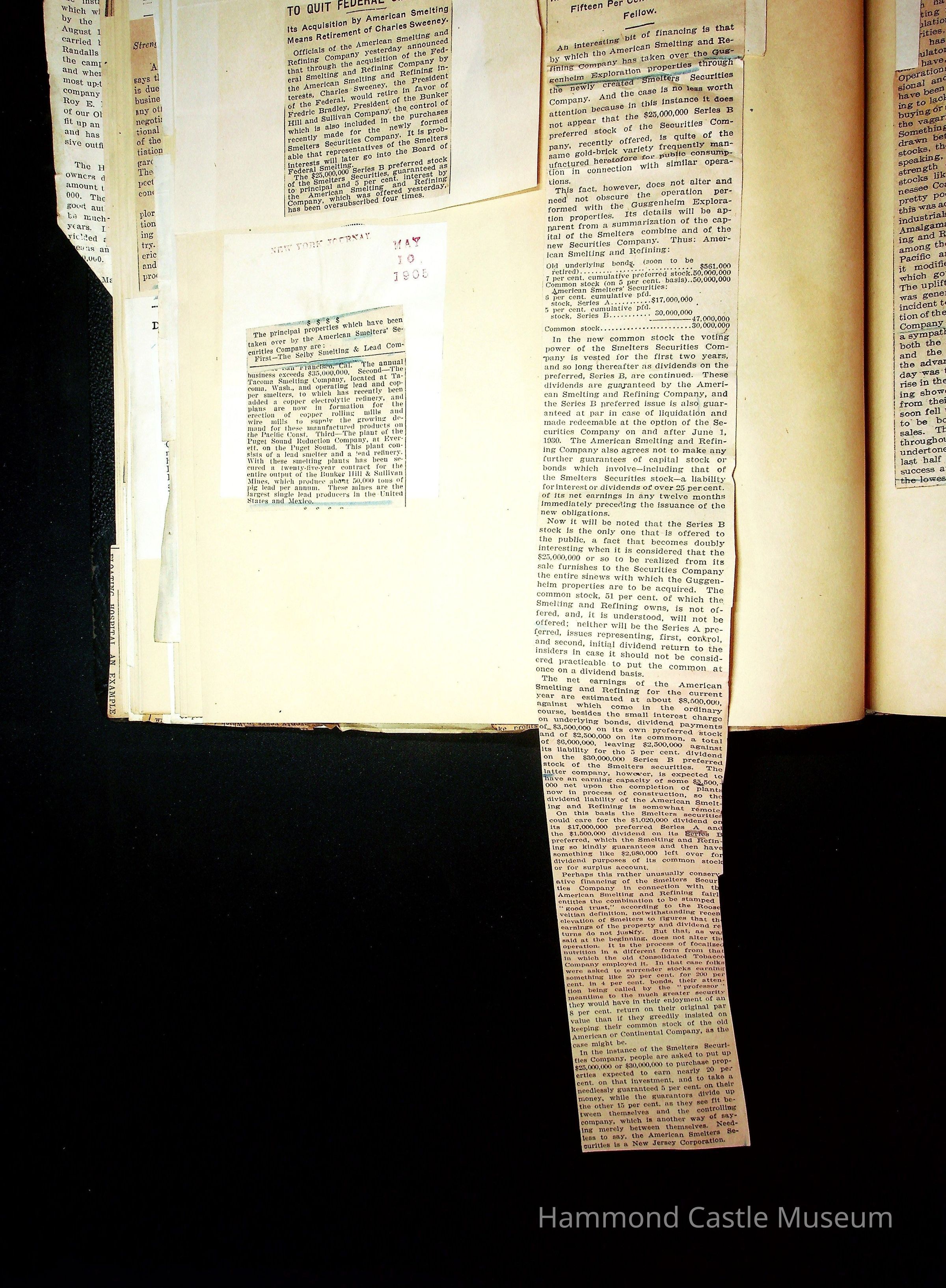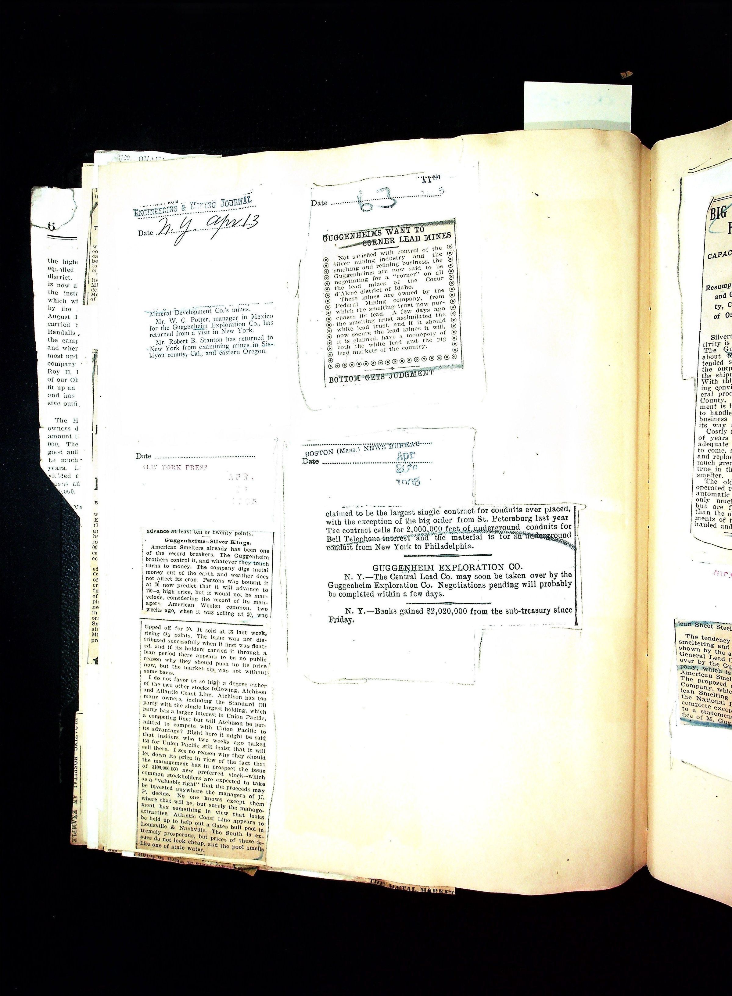 John Hays Hammond (Sr) scrapbook from 1904-1905 with articles about mining, the Guggenheims and economicsGeneral Notes