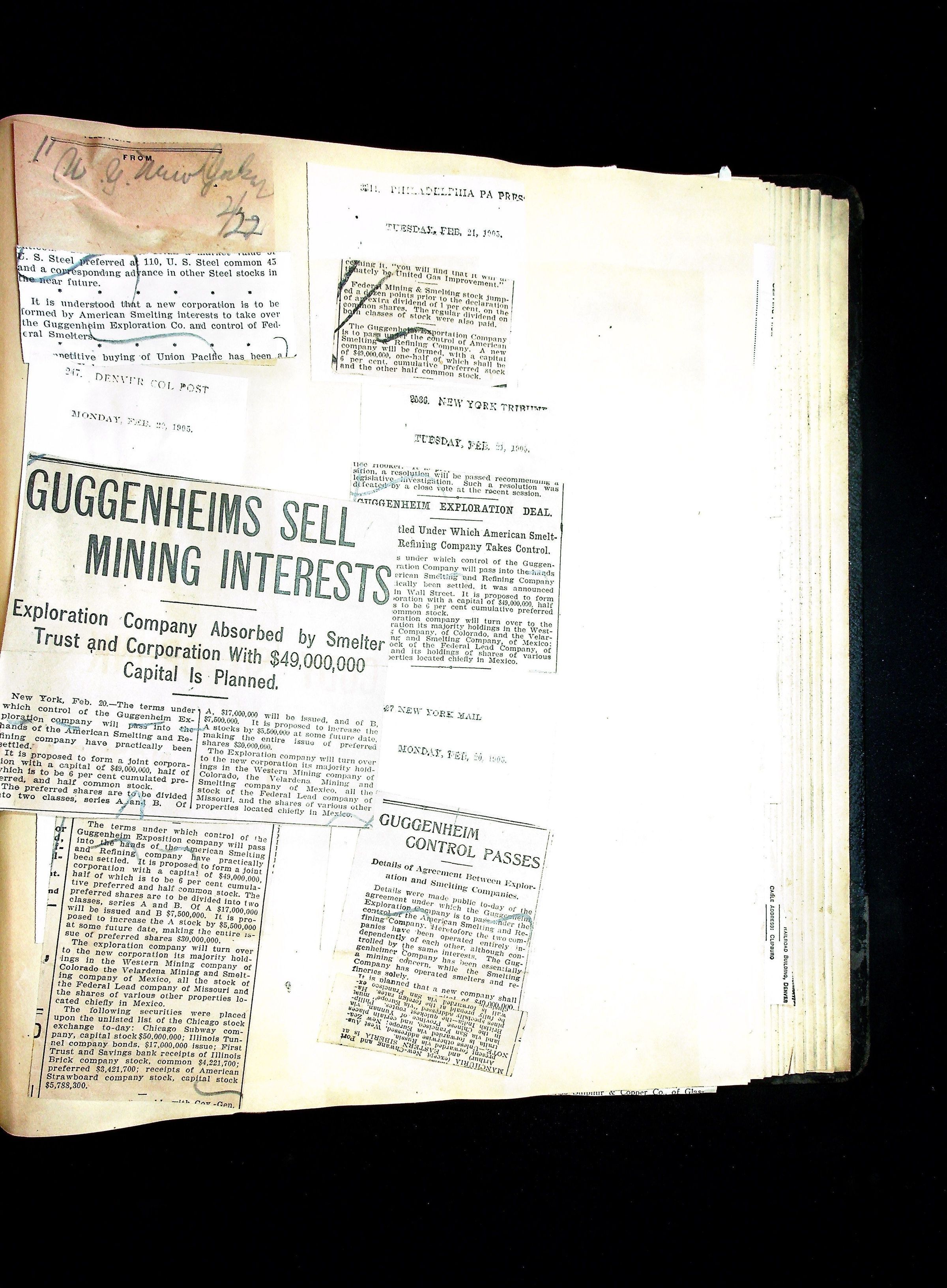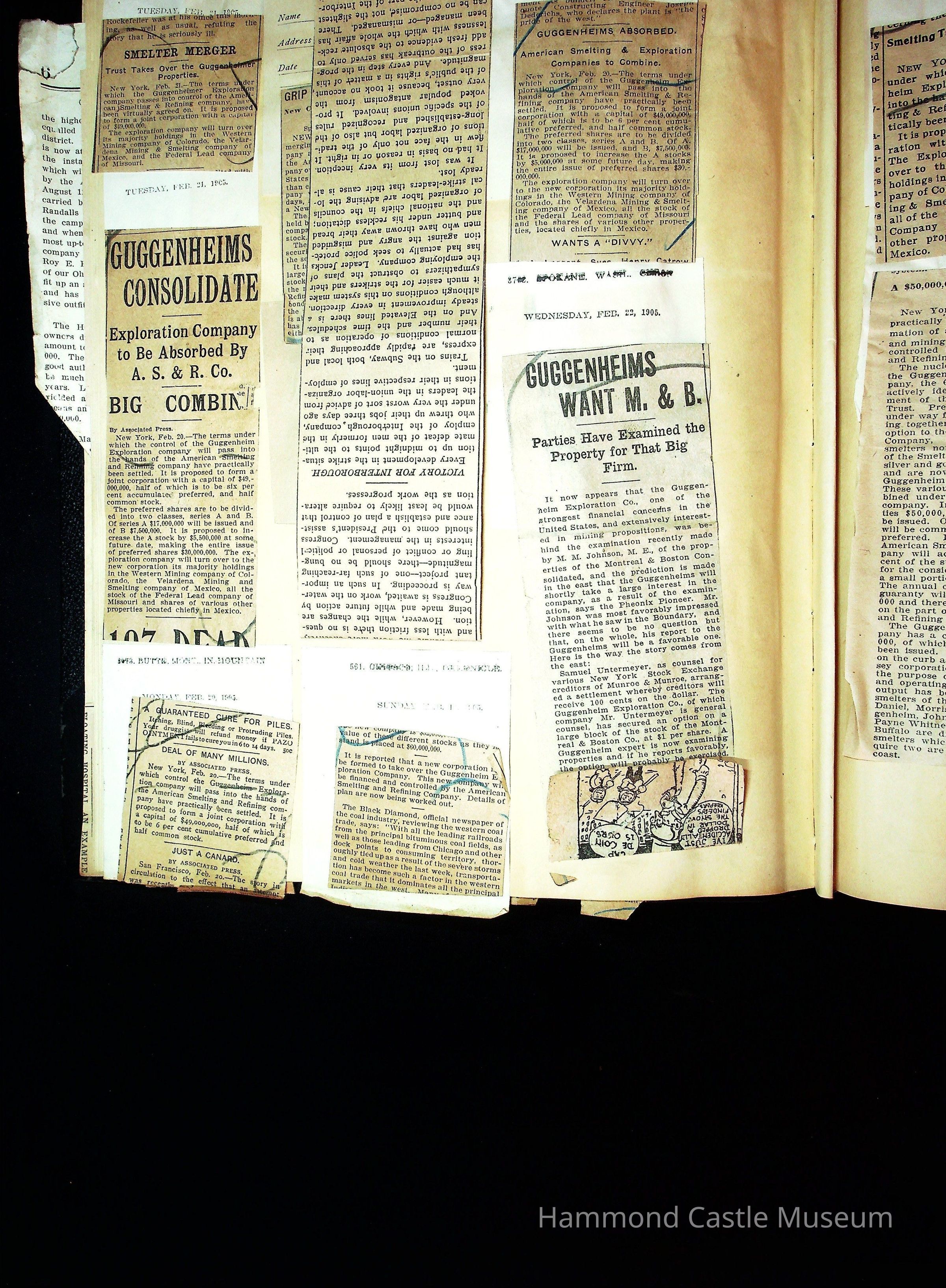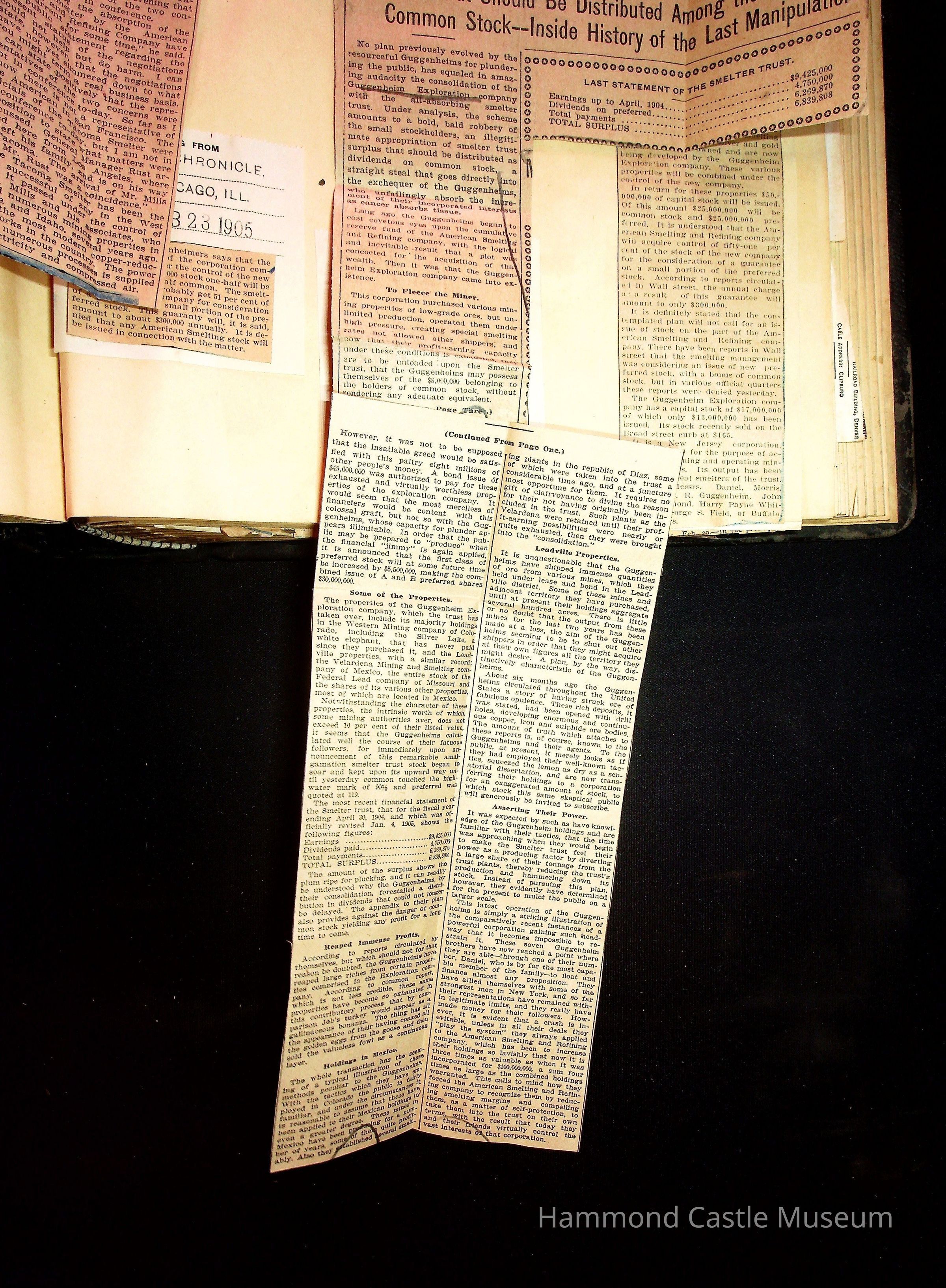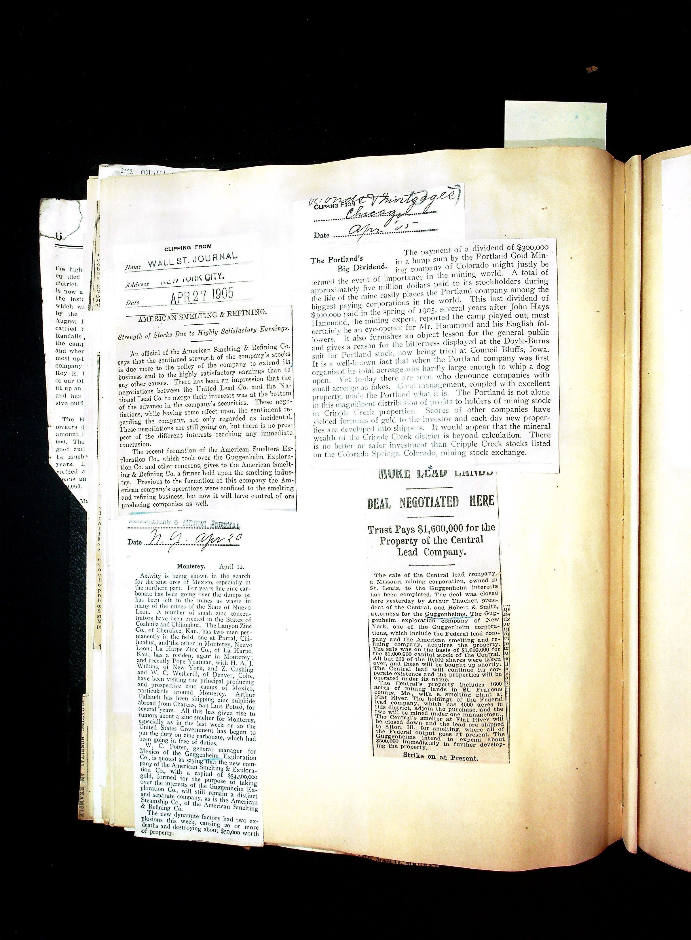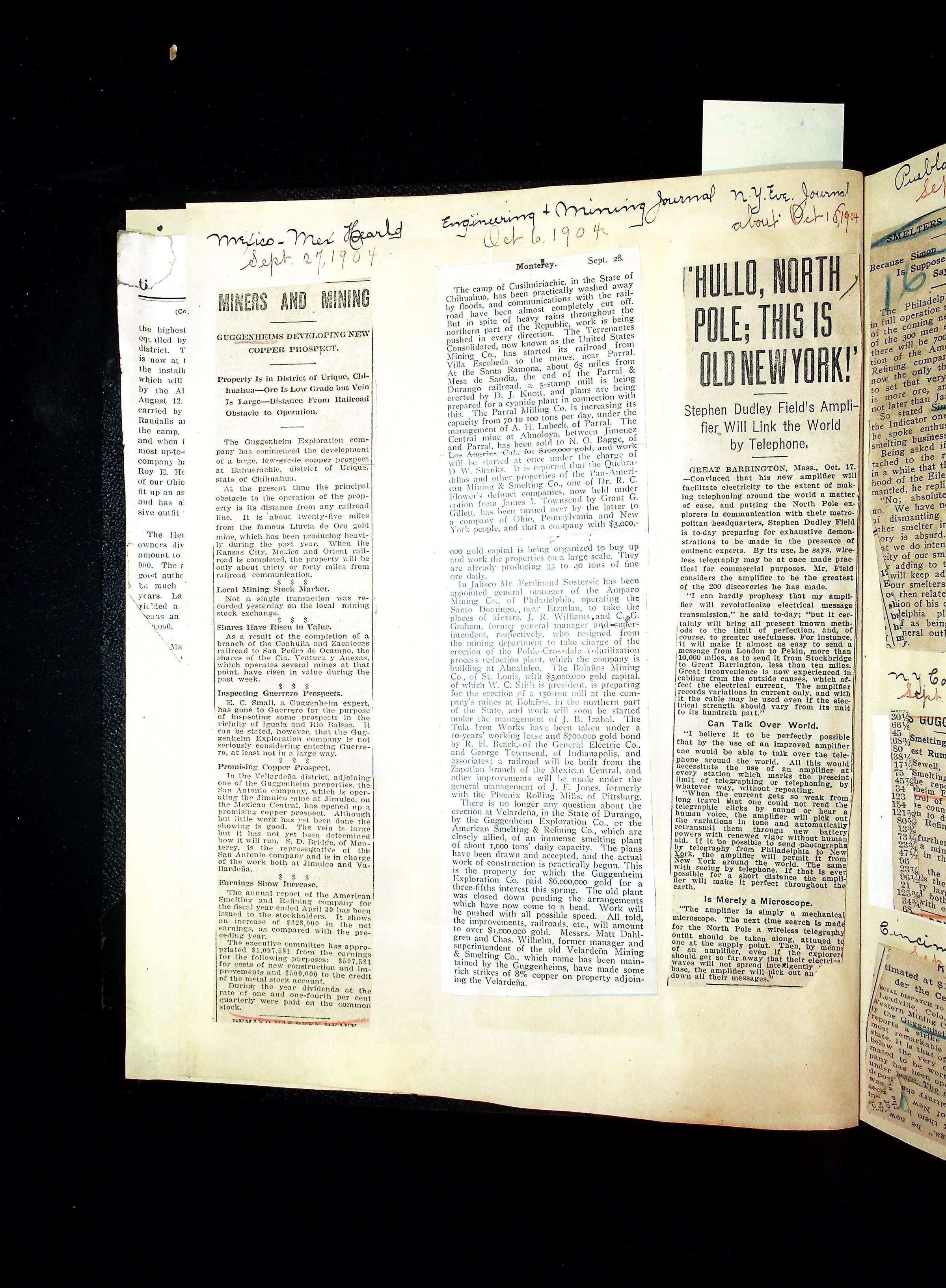 John Hays Hammond (Sr) scrapbook from 1904-1905 with articles about mining, the Guggenheims and economicsGeneral Notes