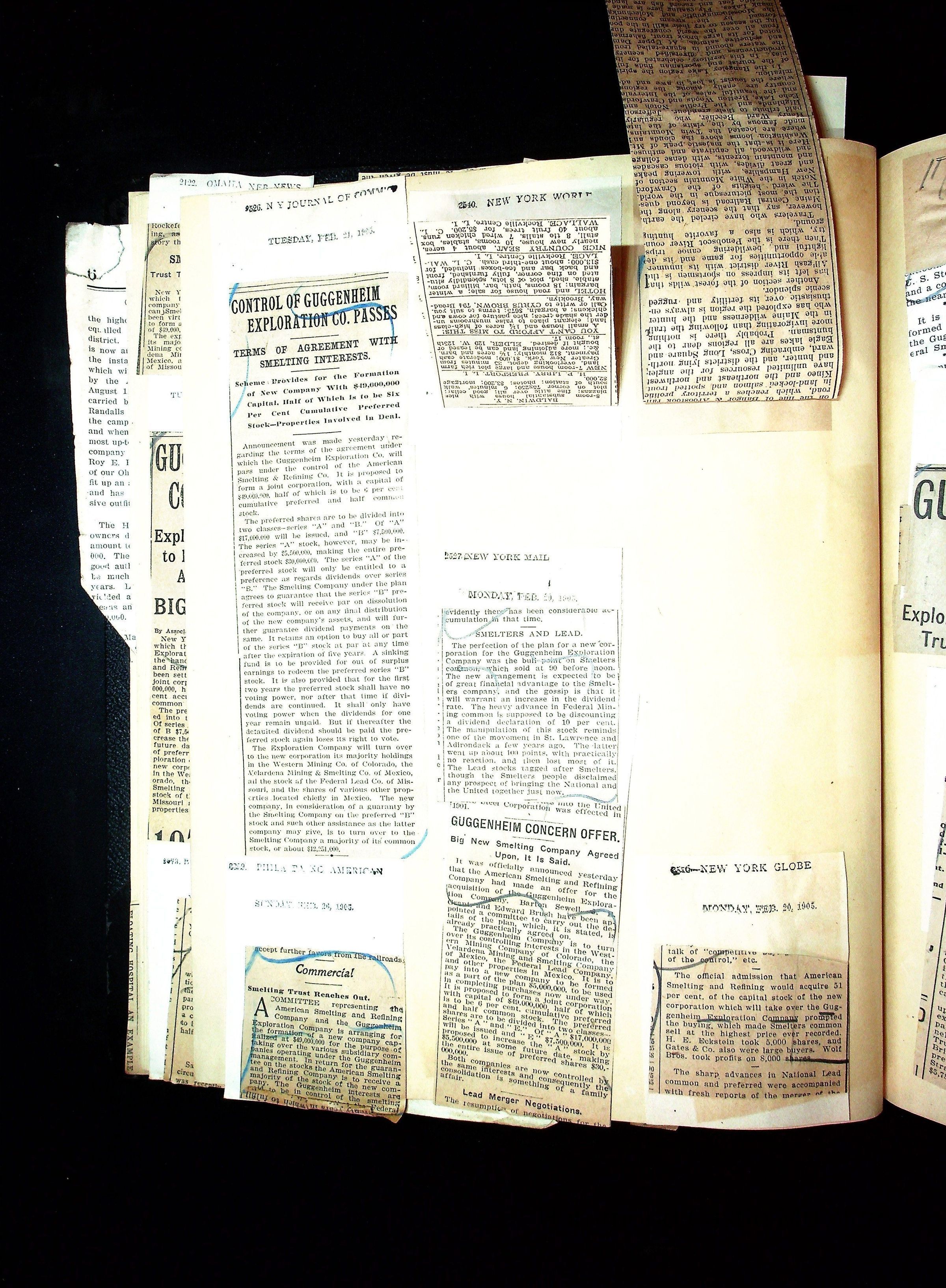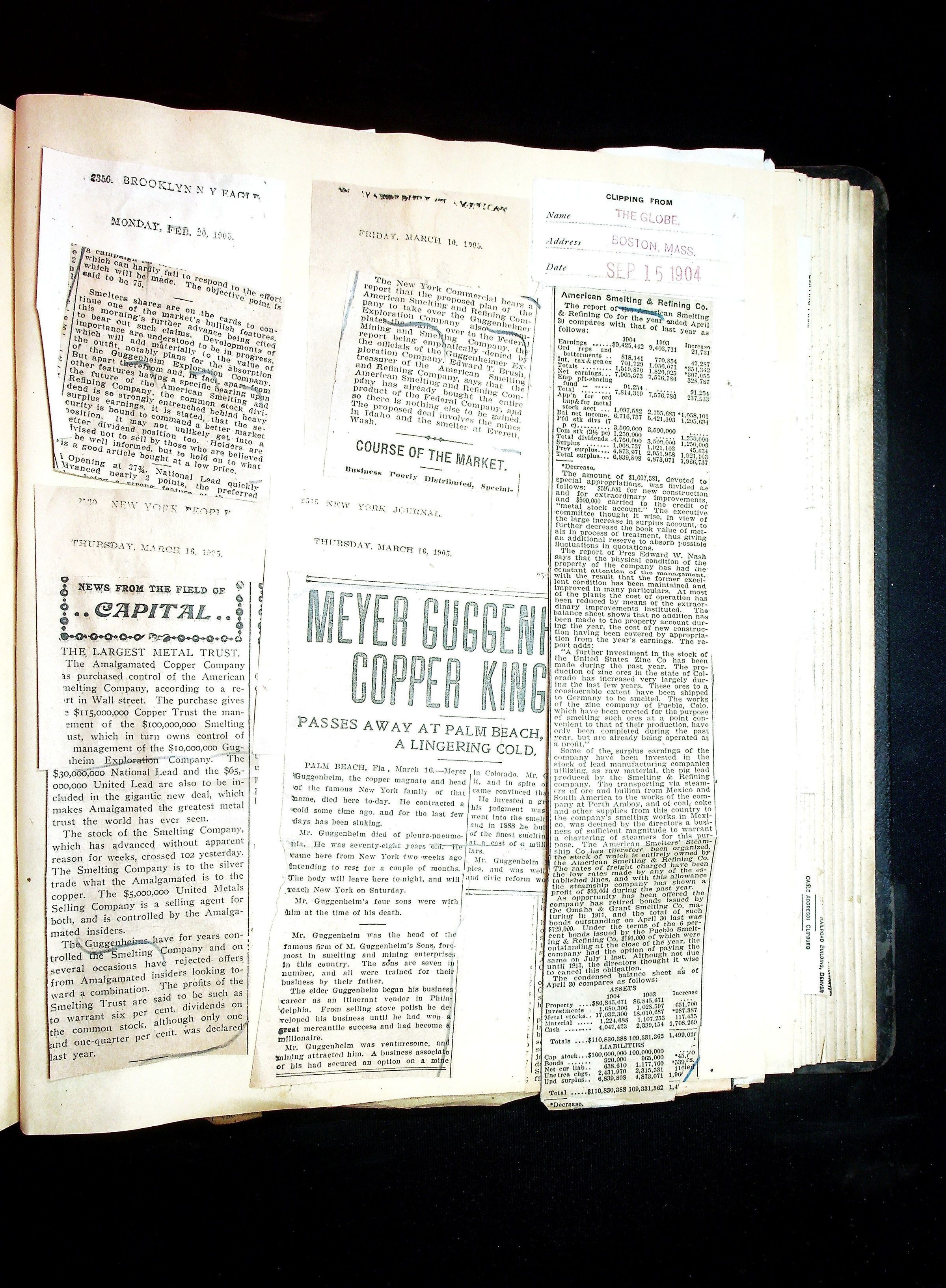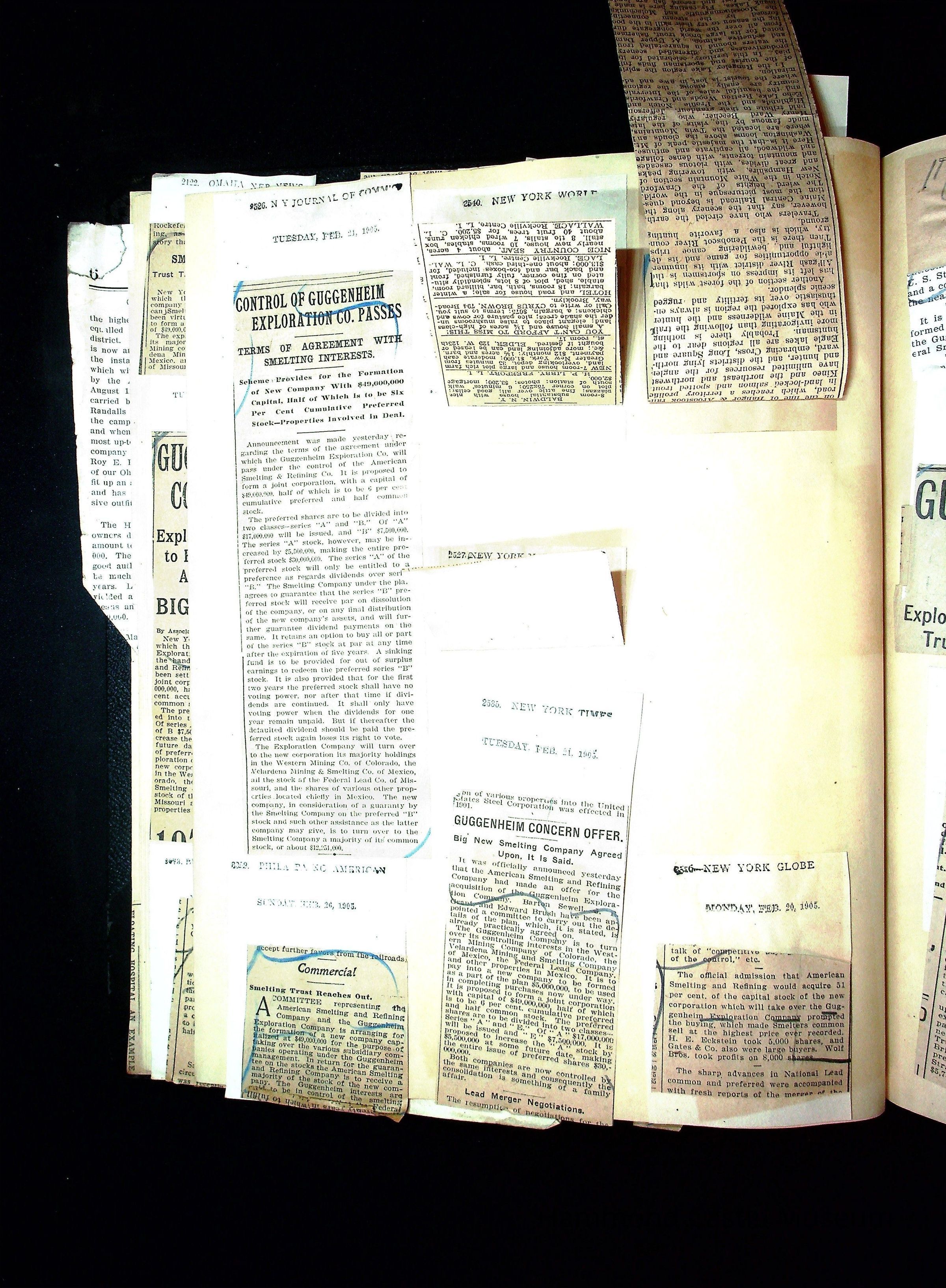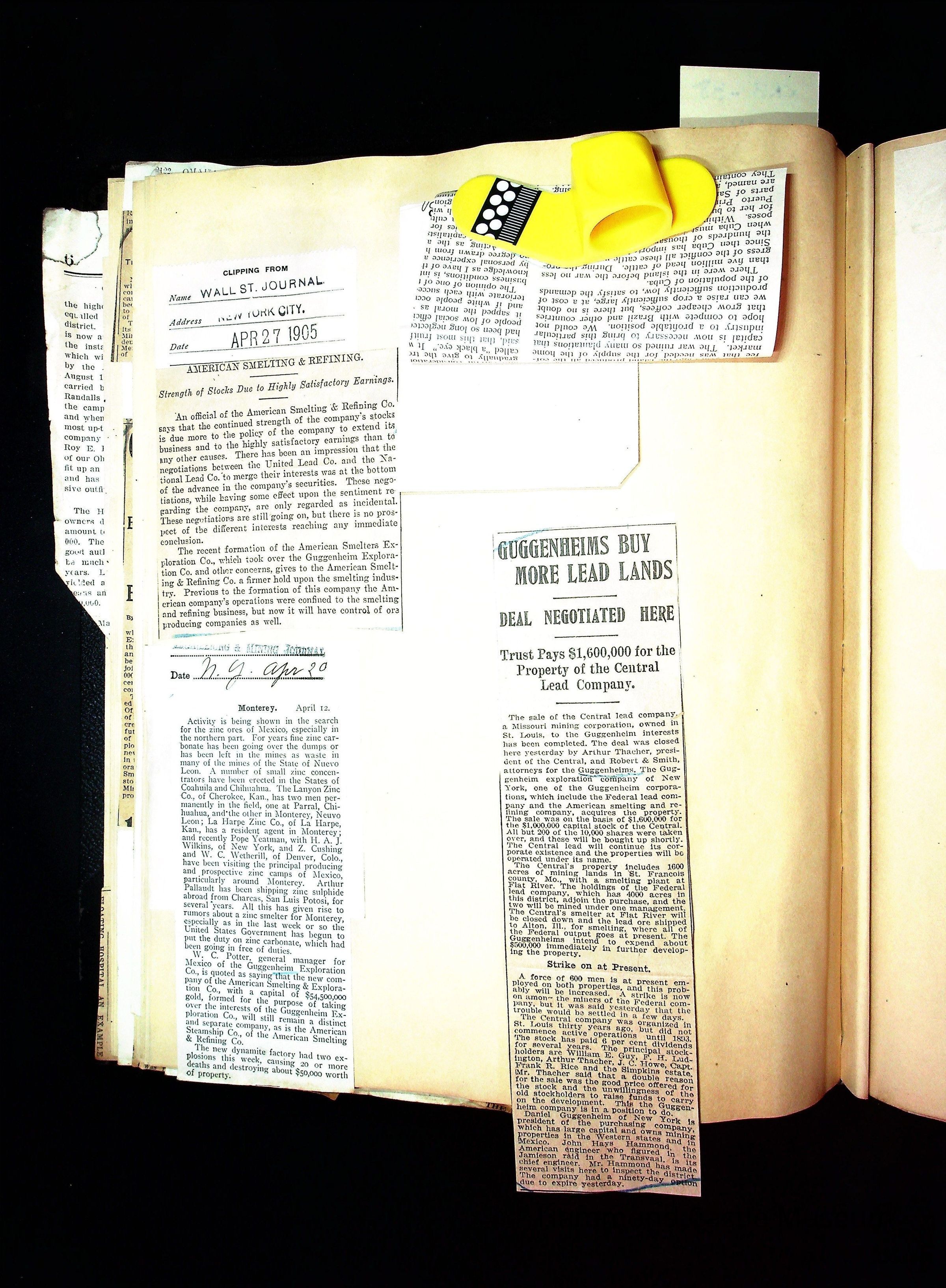 John Hays Hammond (Sr) scrapbook from 1904-1905 with articles about mining, the Guggenheims and economicsGeneral Notes