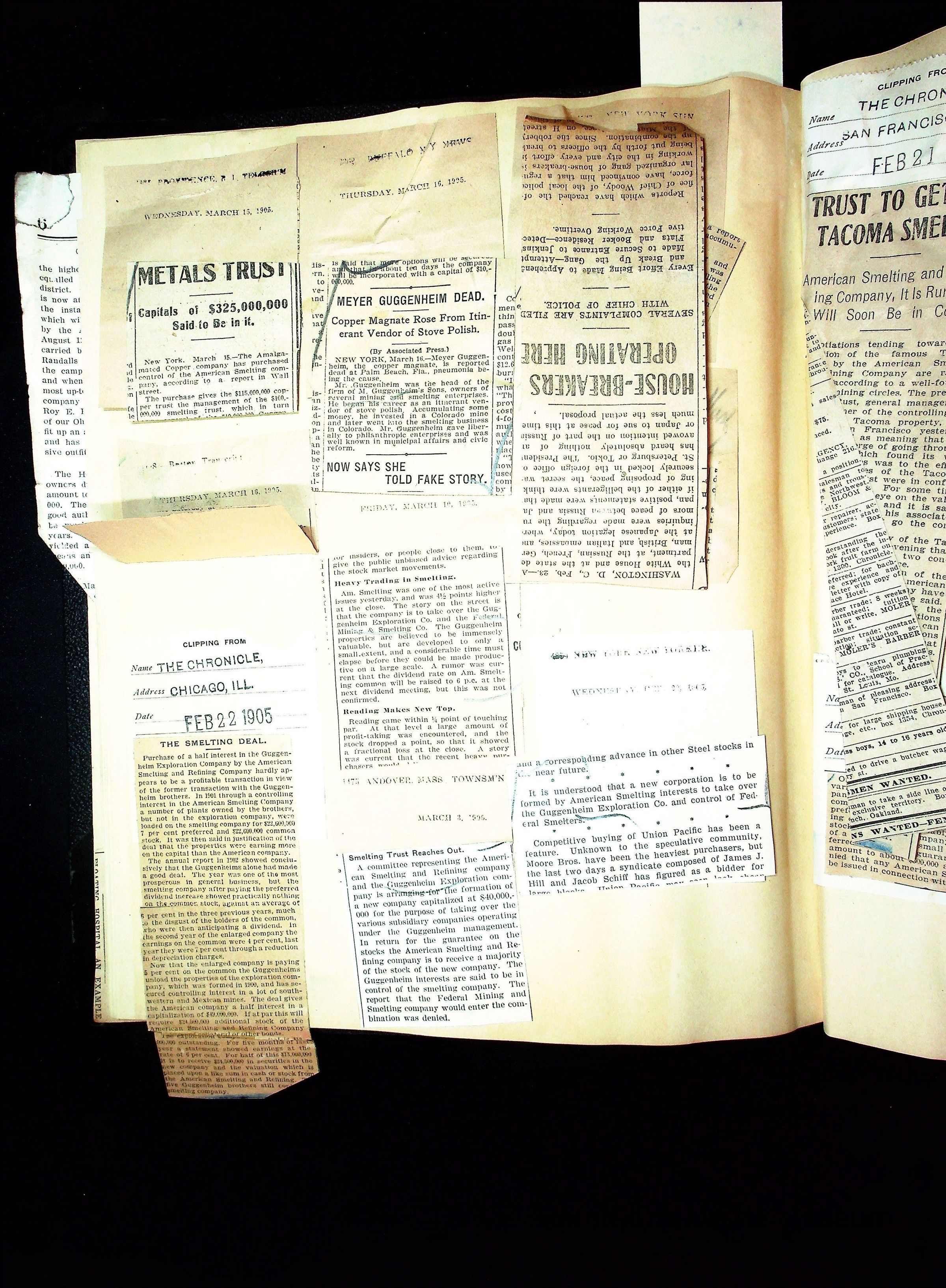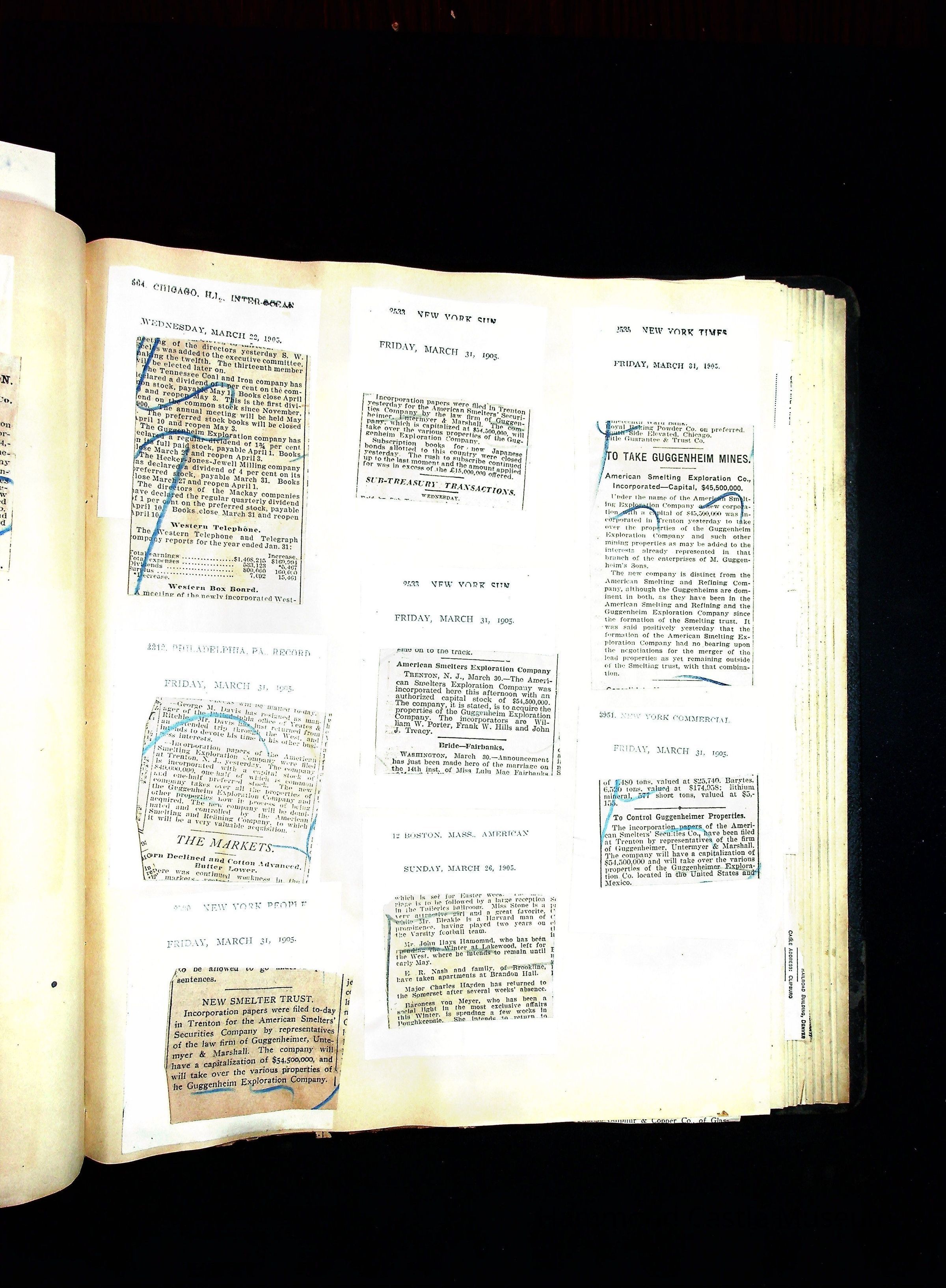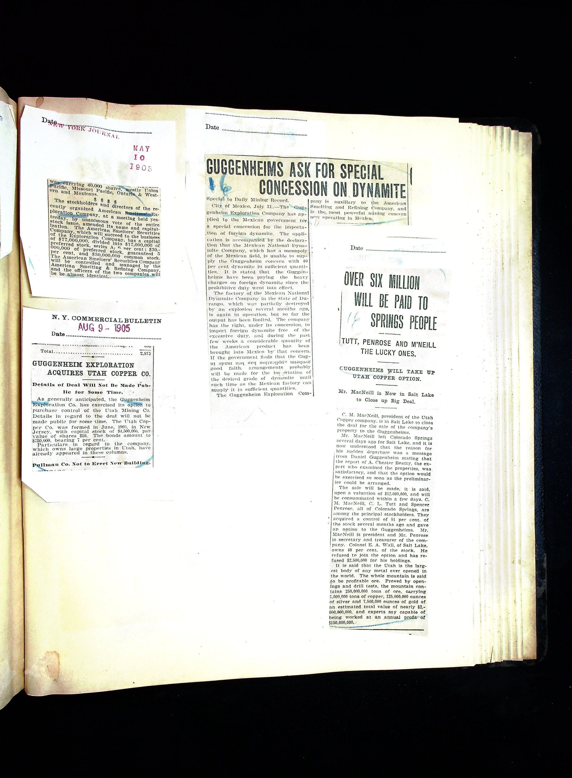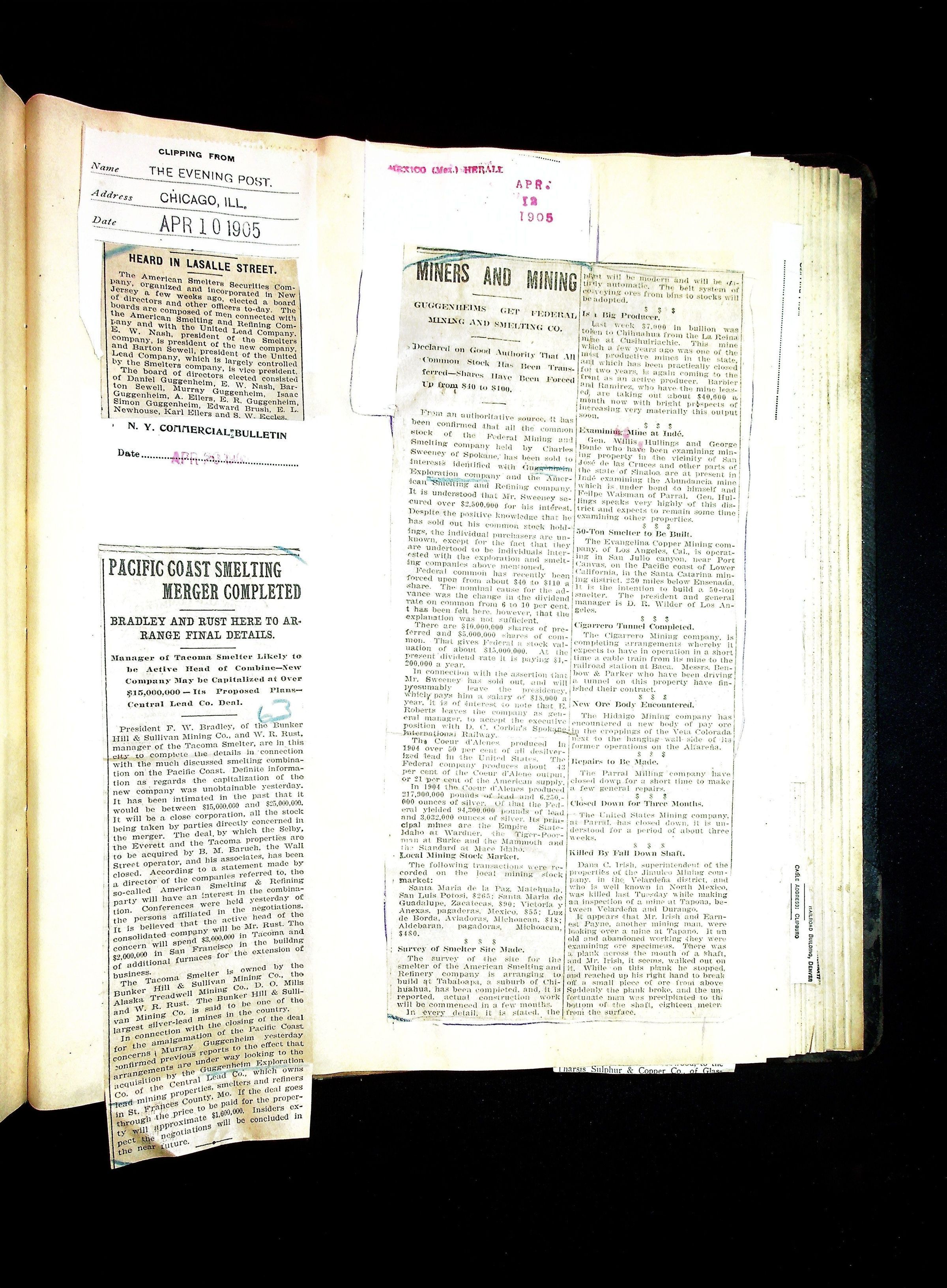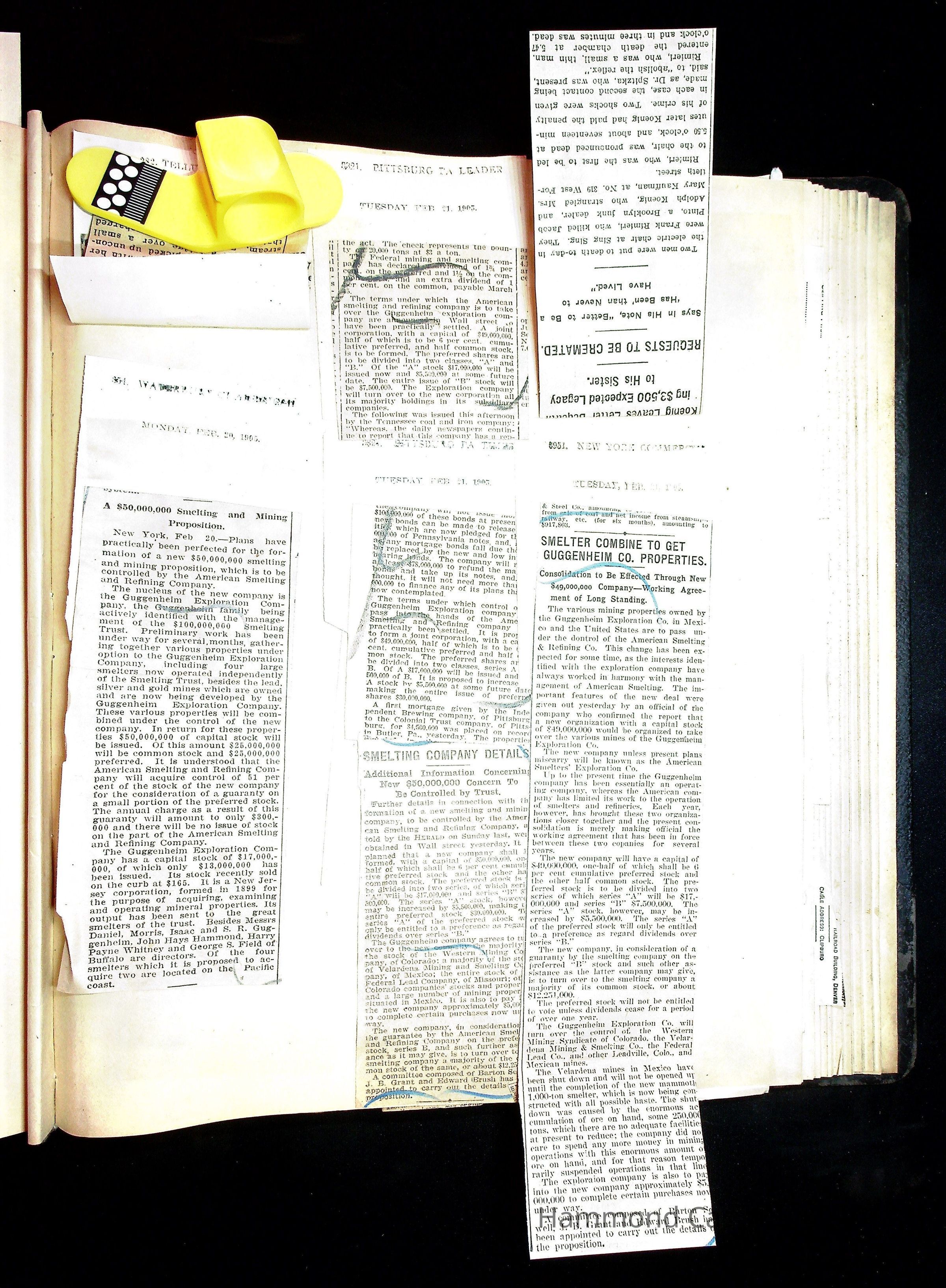 John Hays Hammond (Sr) scrapbook from 1904-1905 with articles about mining, the Guggenheims and economicsGeneral Notes