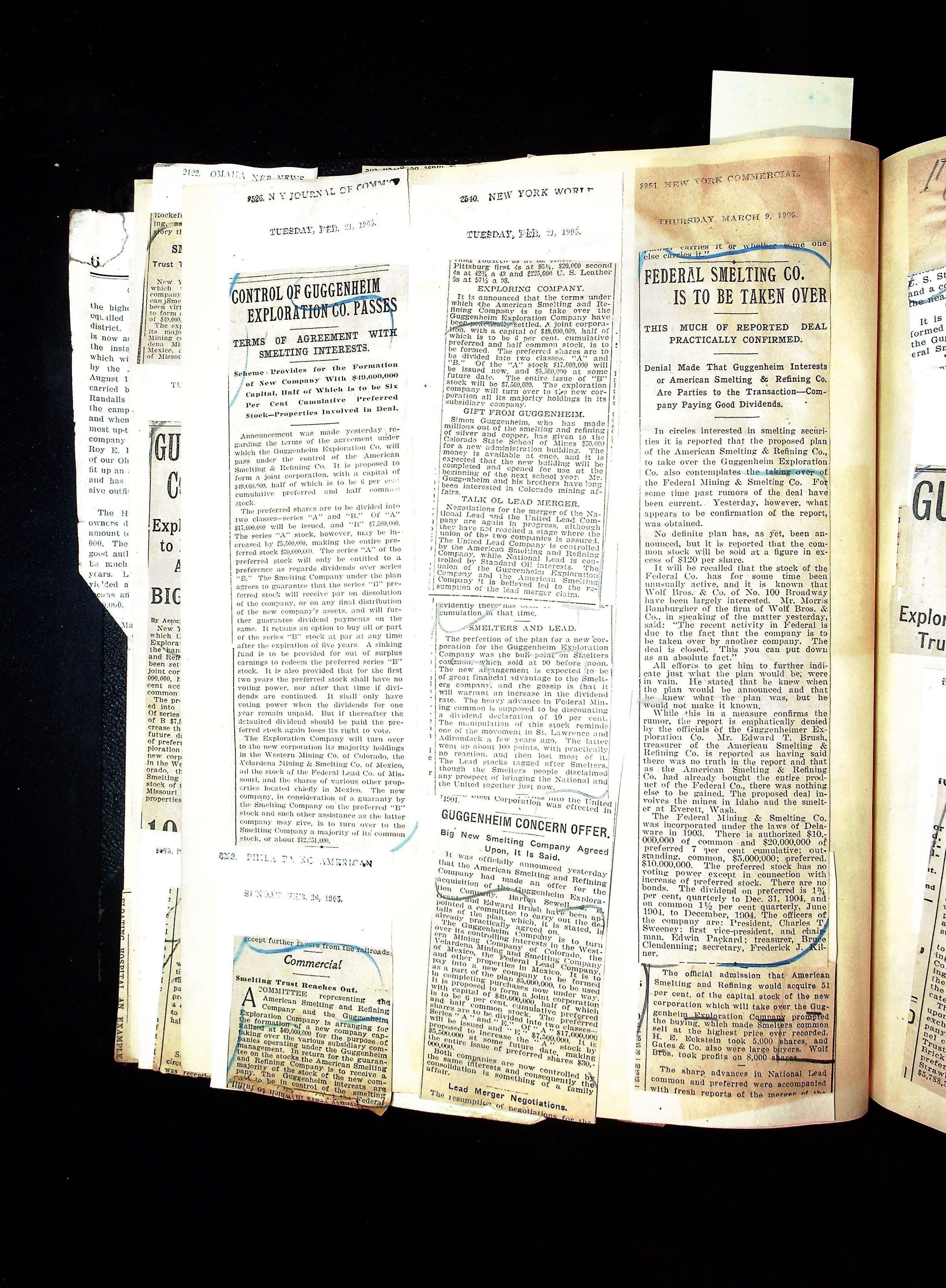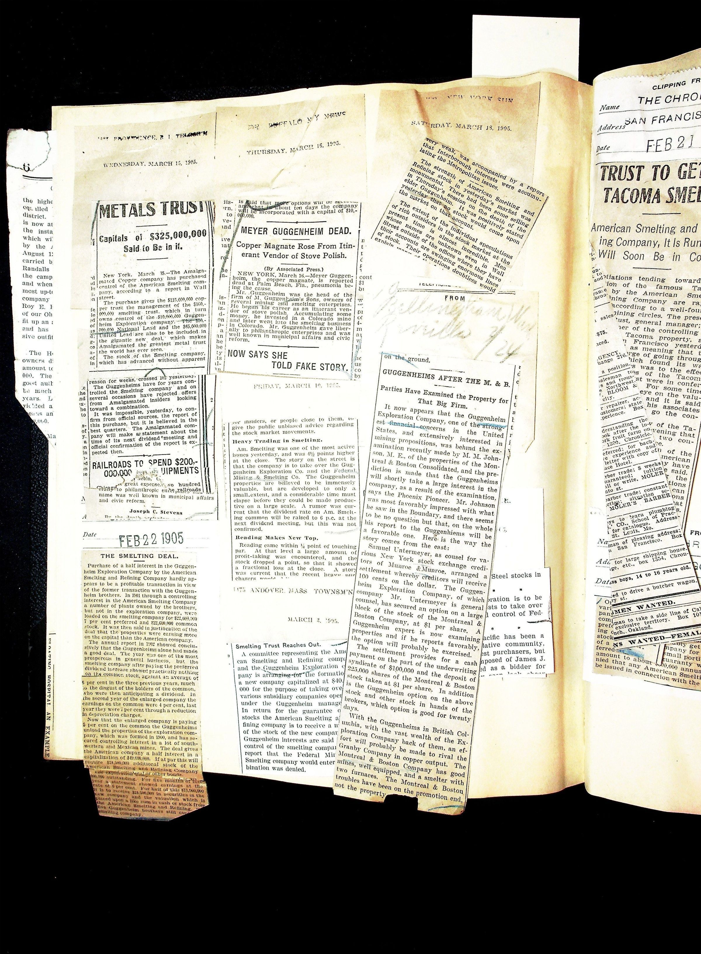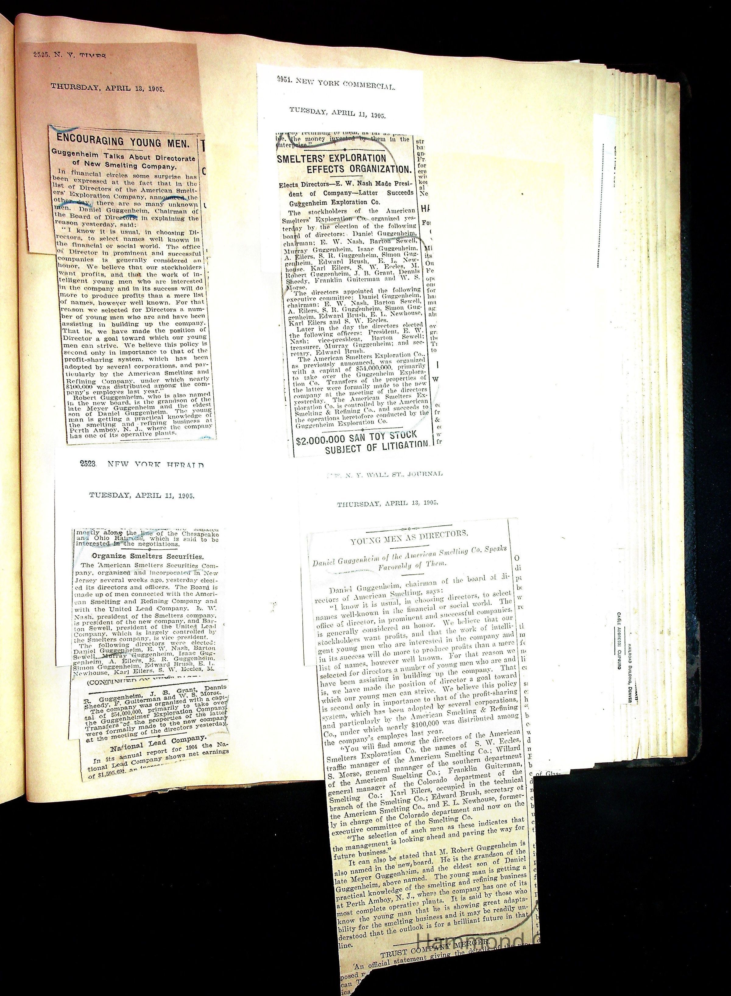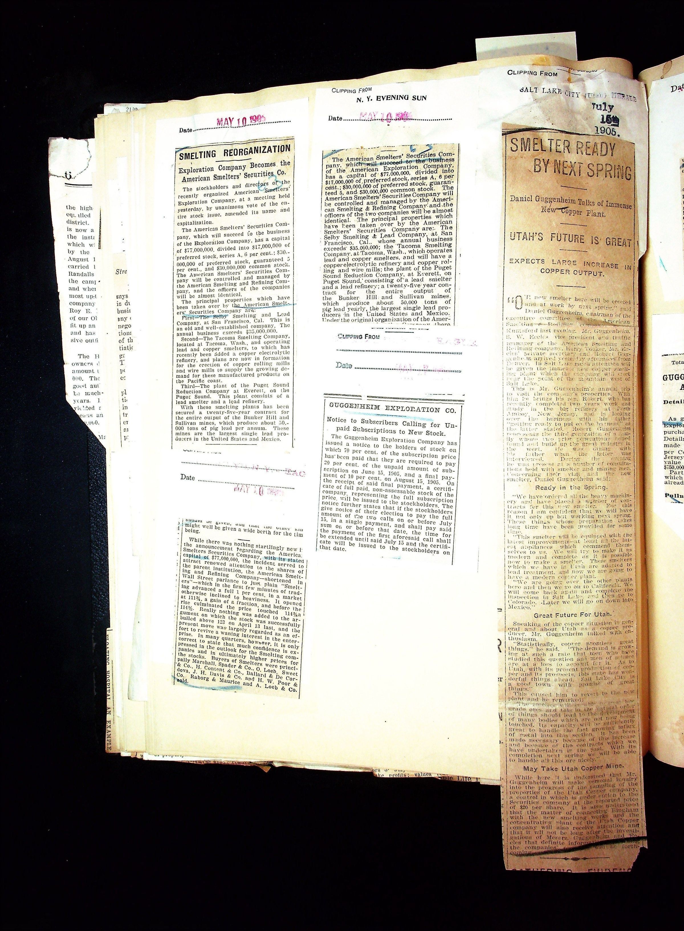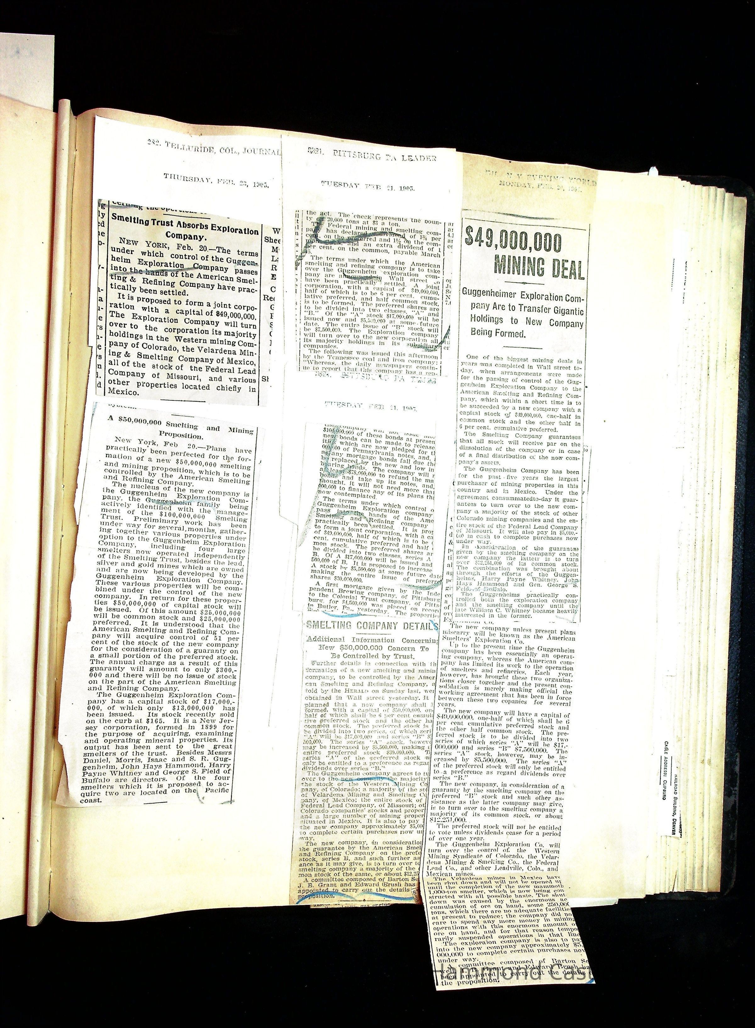 John Hays Hammond (Sr) scrapbook from 1904-1905 with articles about mining, the Guggenheims and economicsGeneral Notes