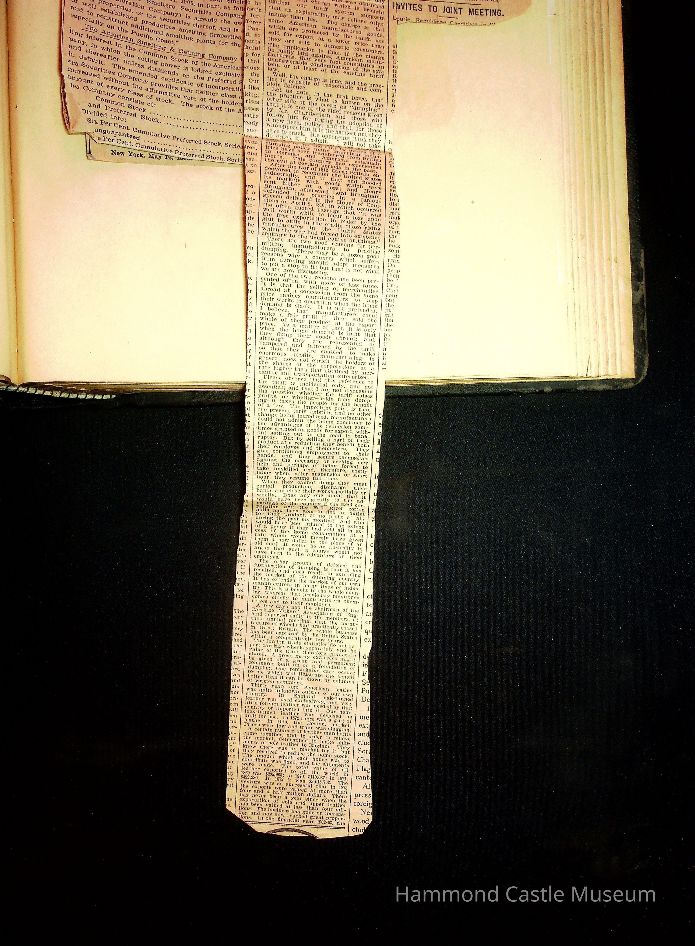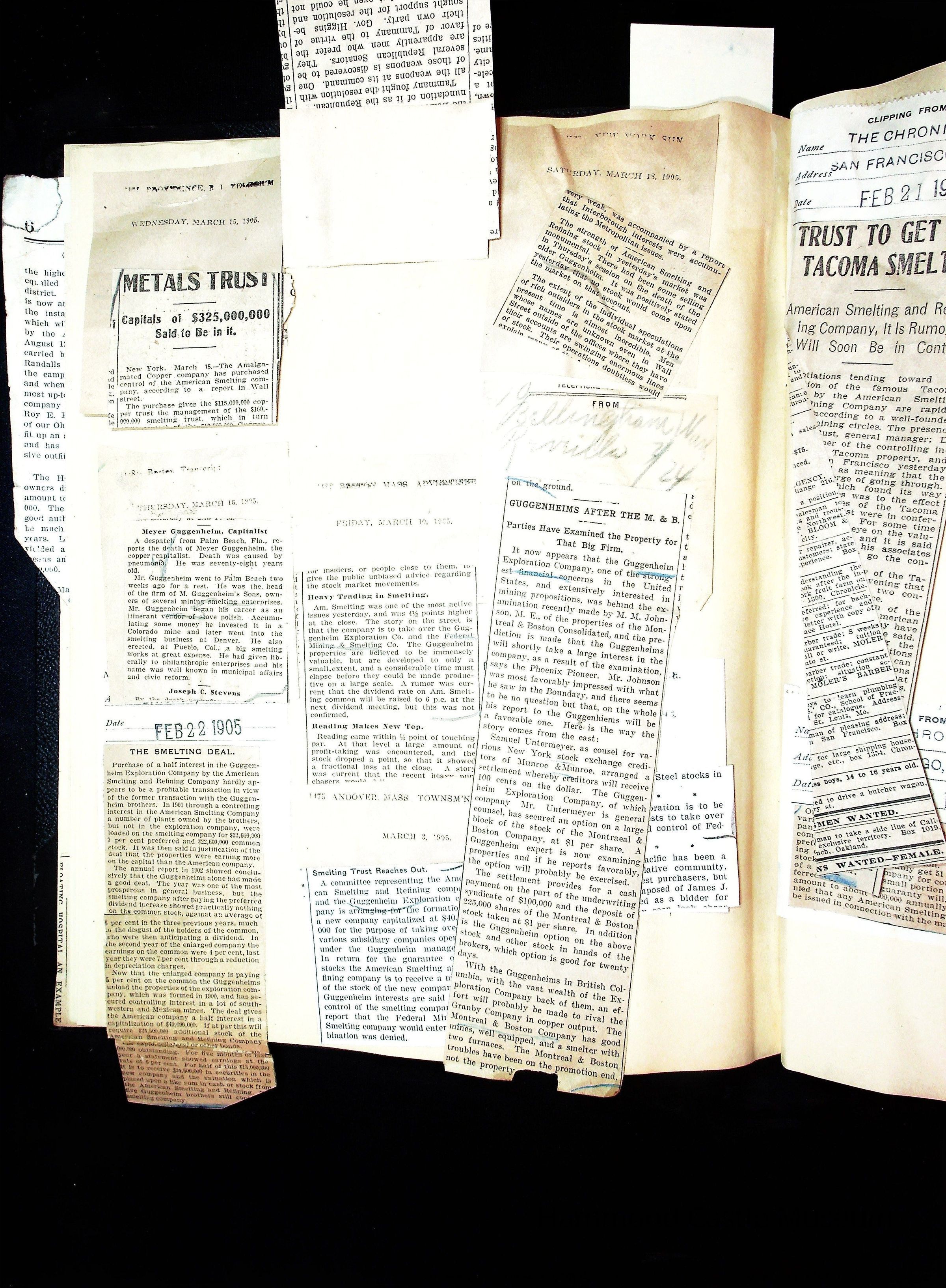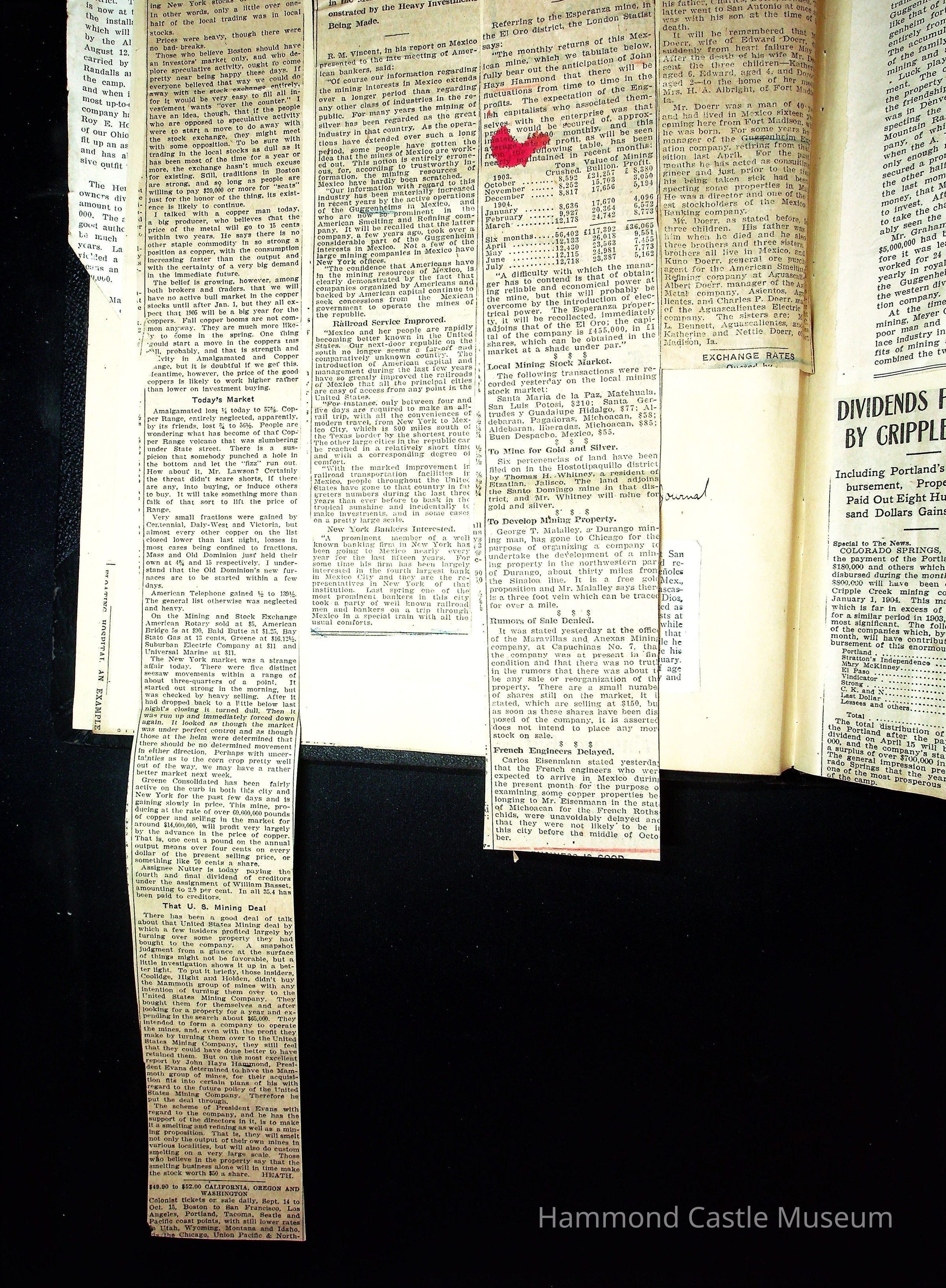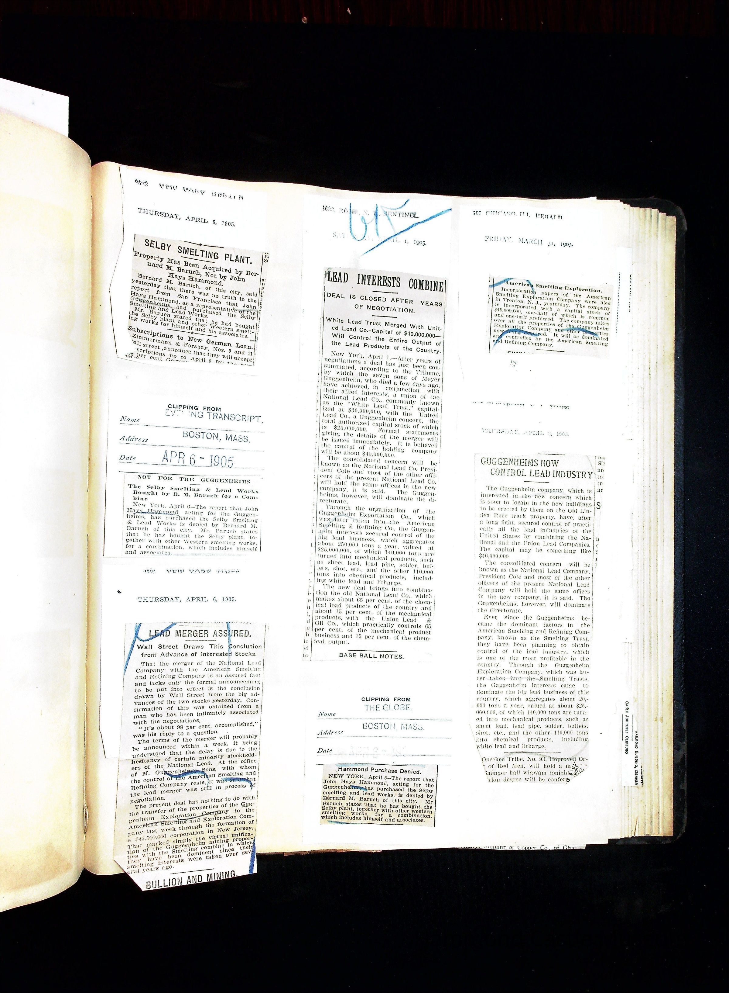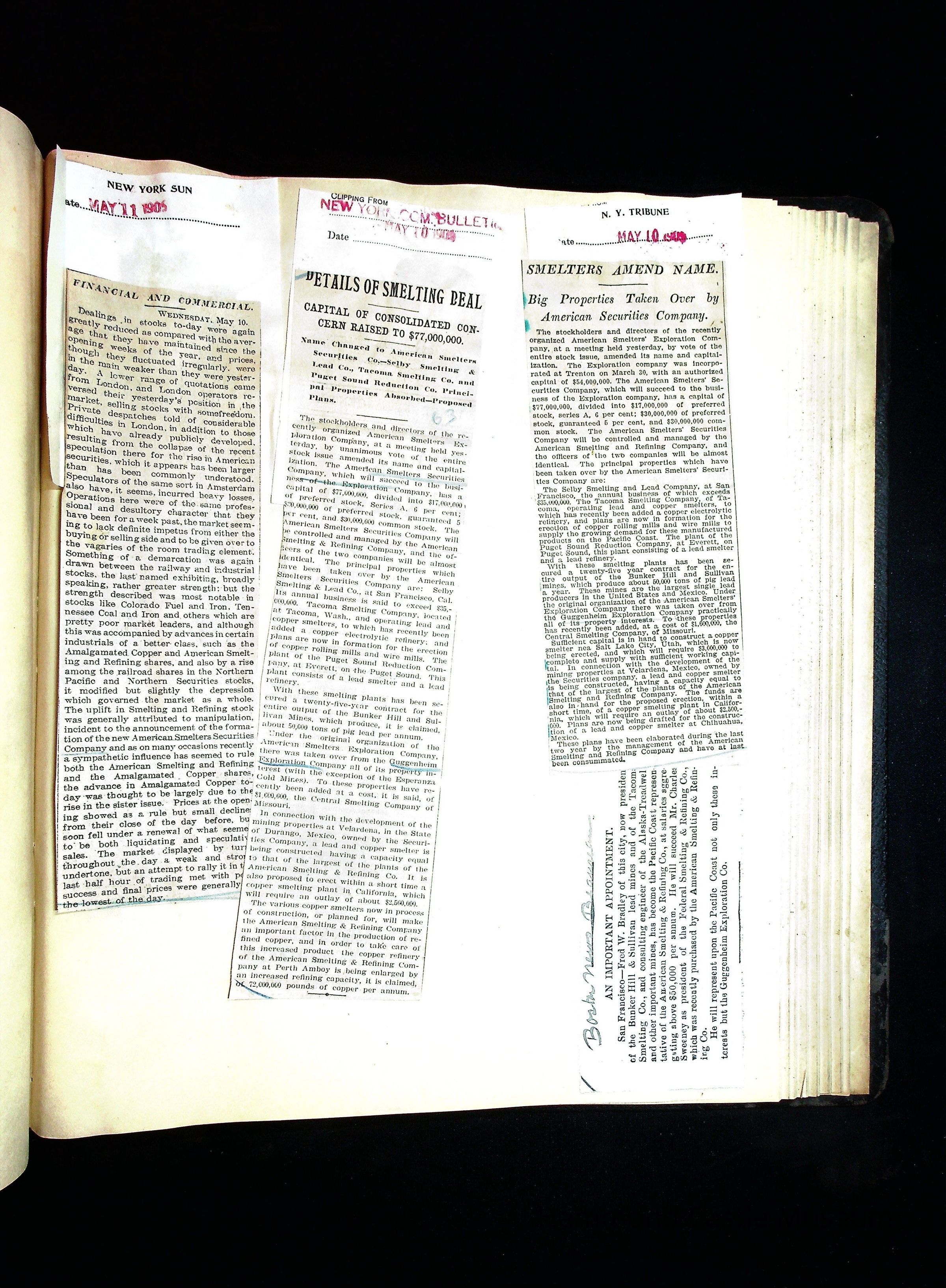 John Hays Hammond (Sr) scrapbook from 1904-1905 with articles about mining, the Guggenheims and economicsGeneral Notes
