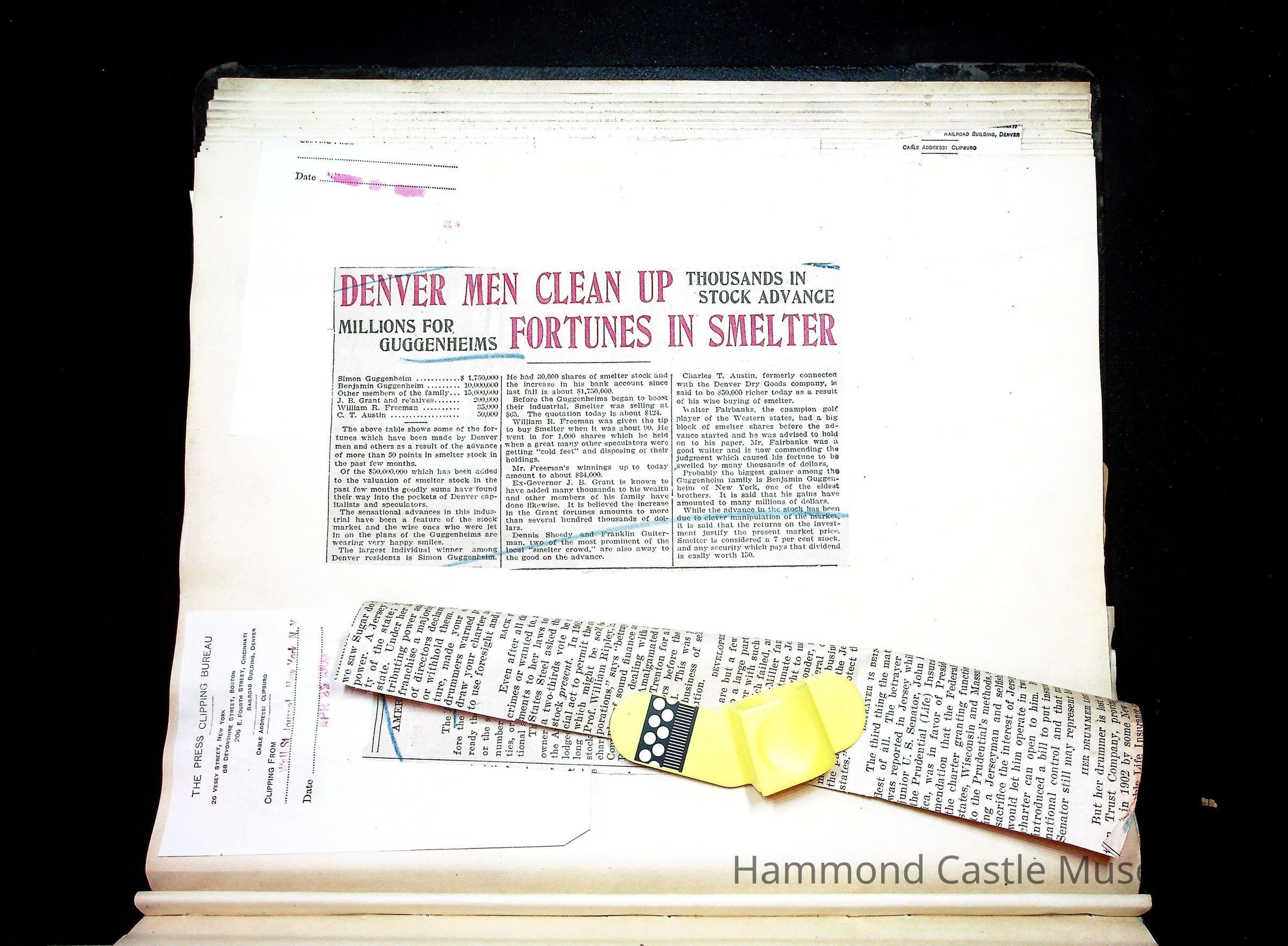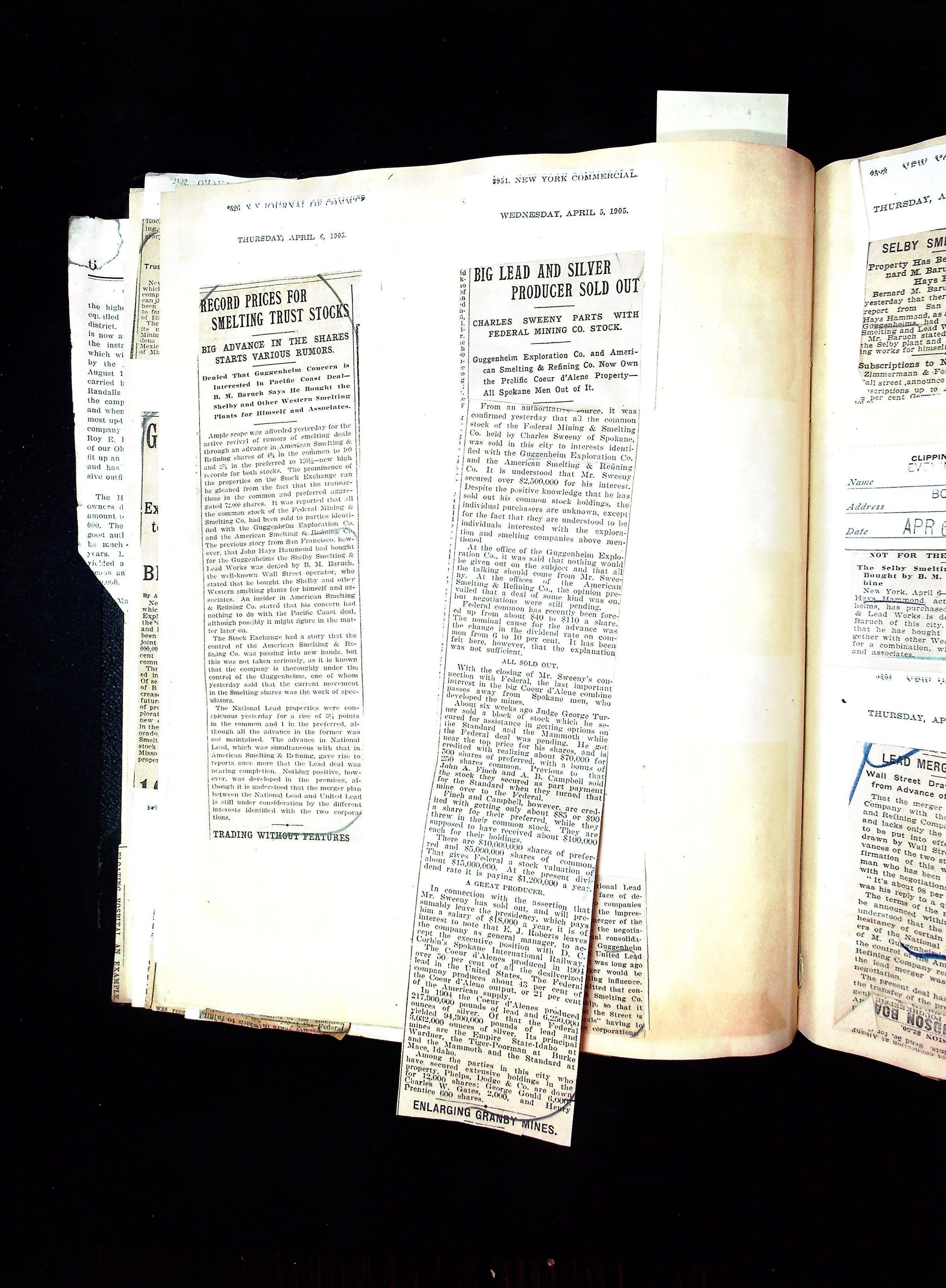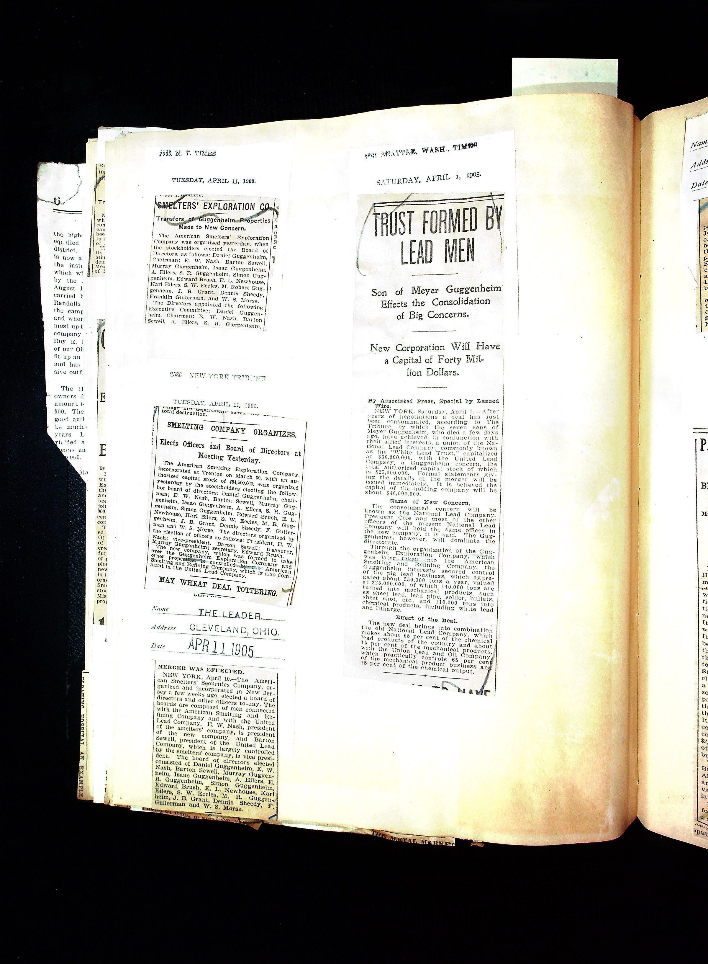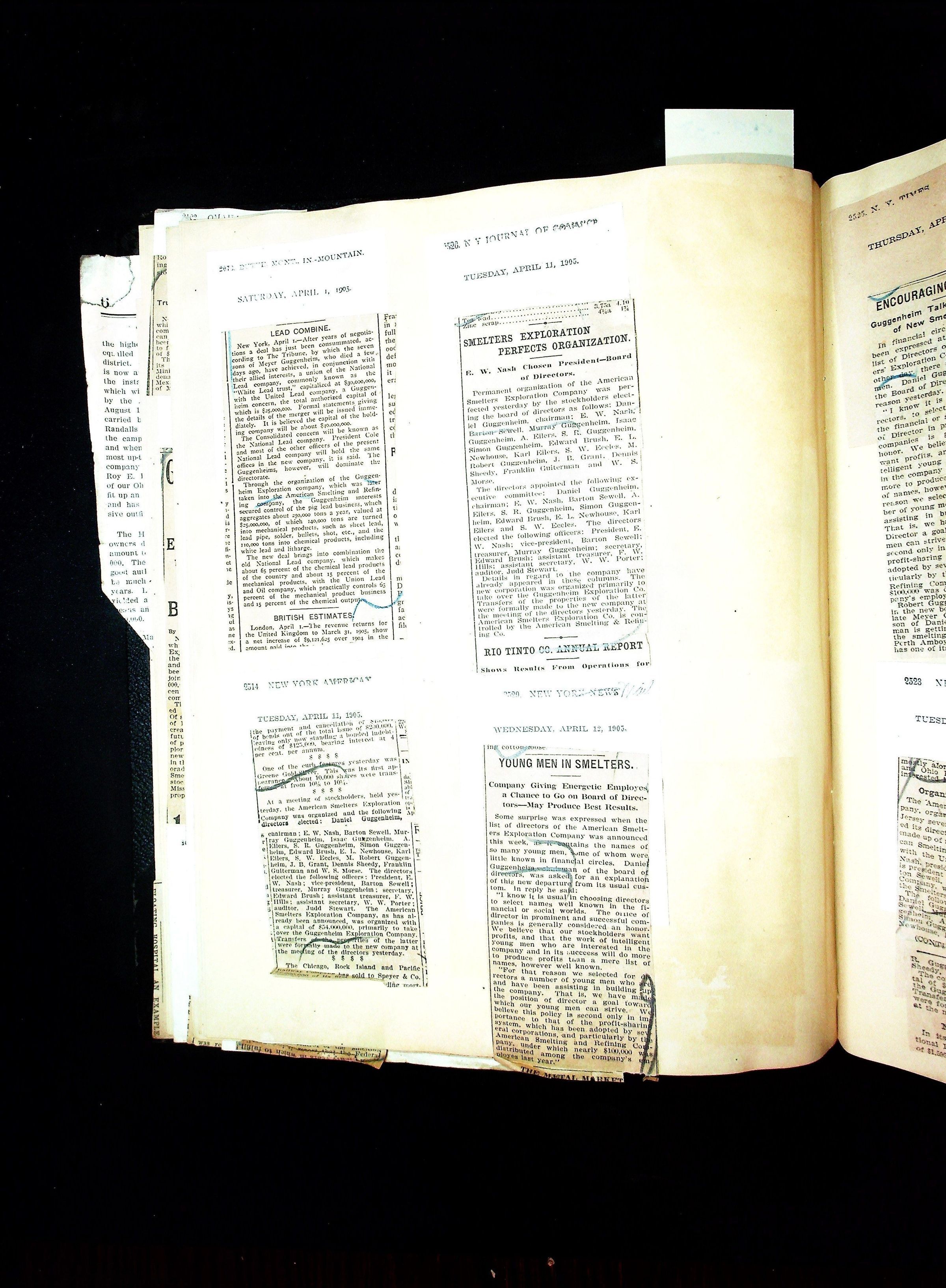 John Hays Hammond (Sr) scrapbook from 1904-1905 with articles about mining, the Guggenheims and economicsGeneral Notes