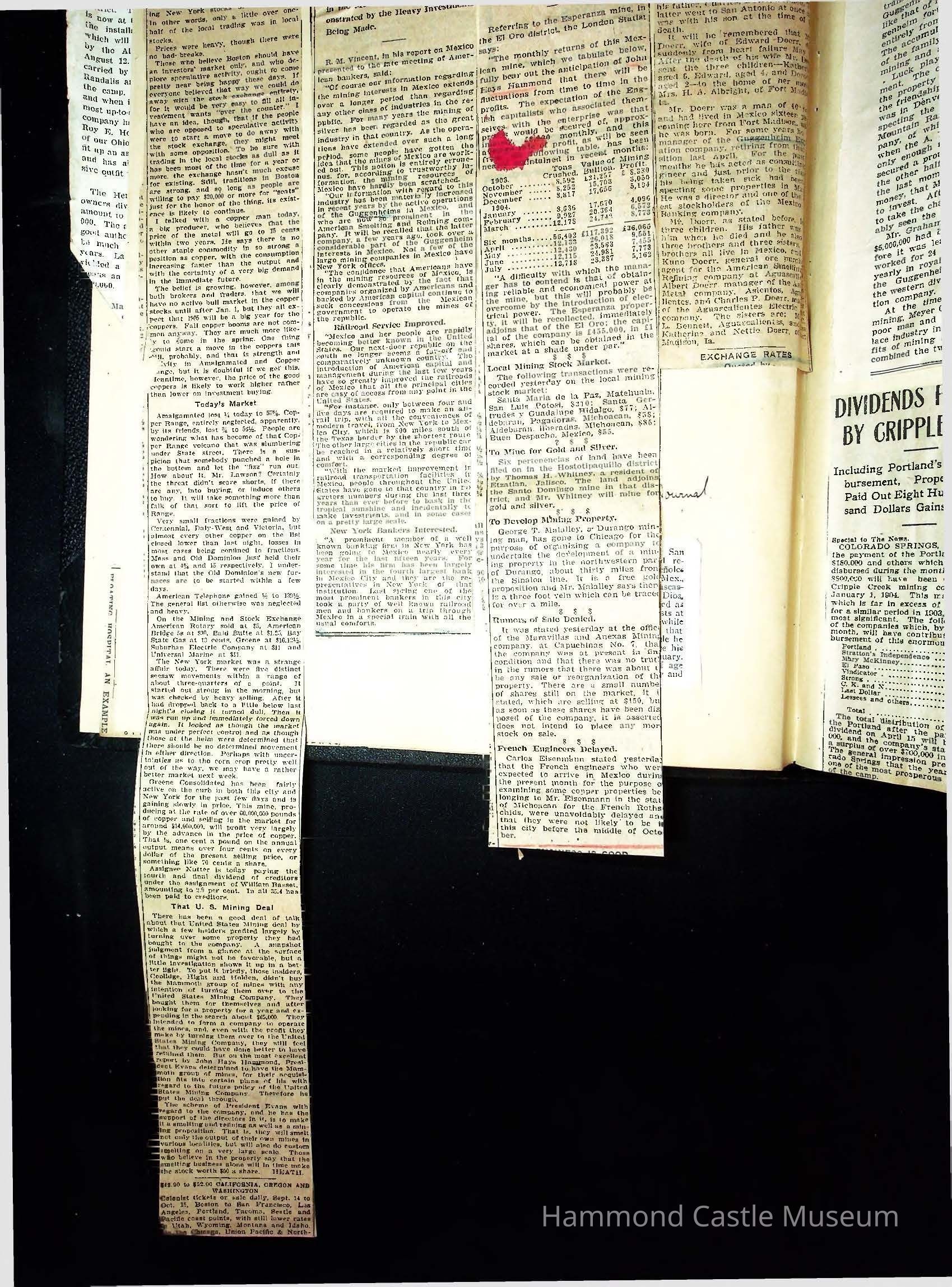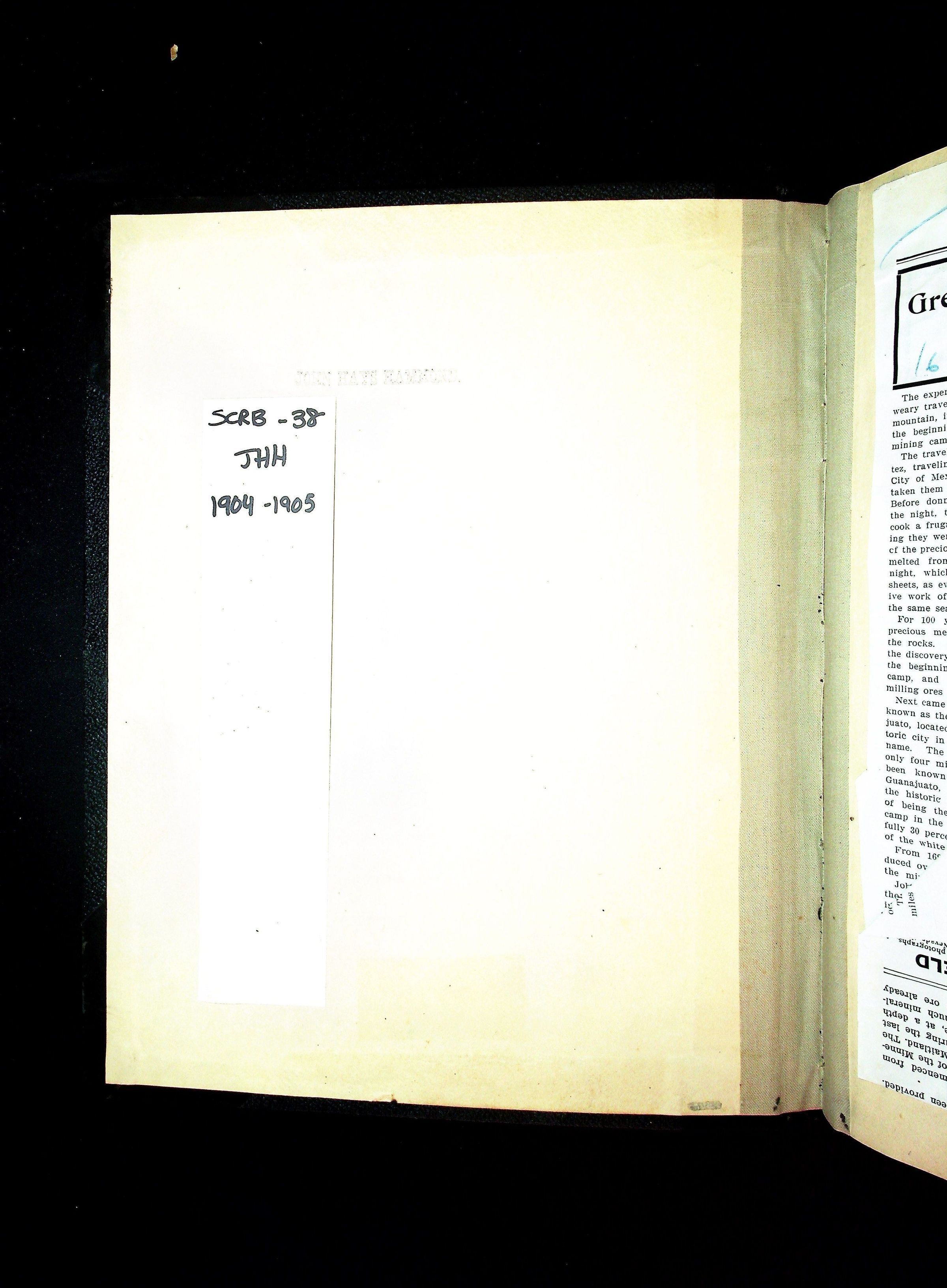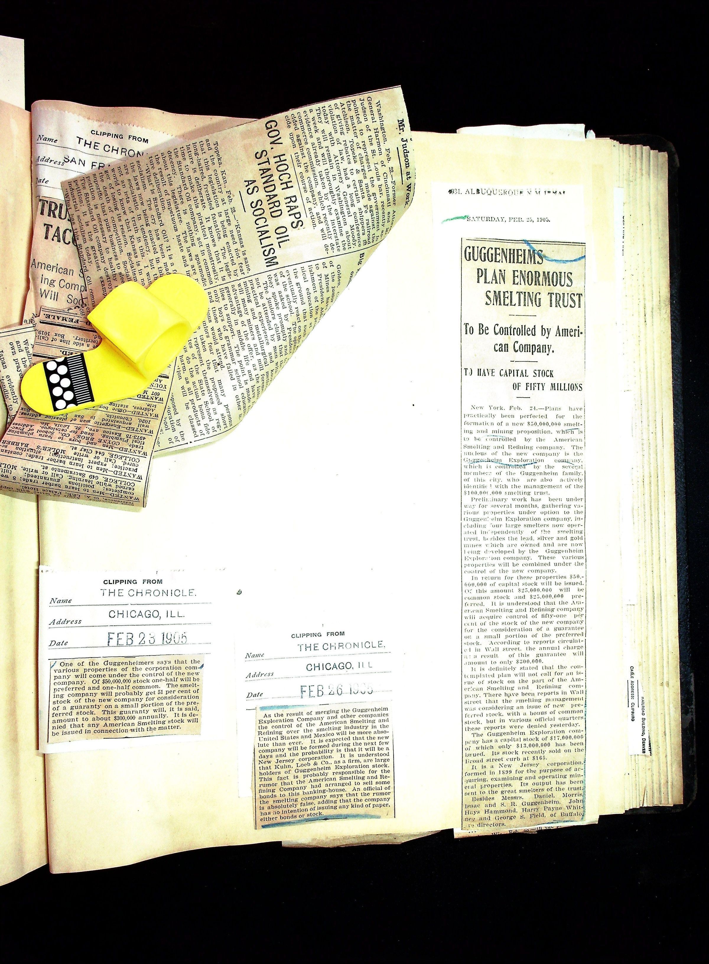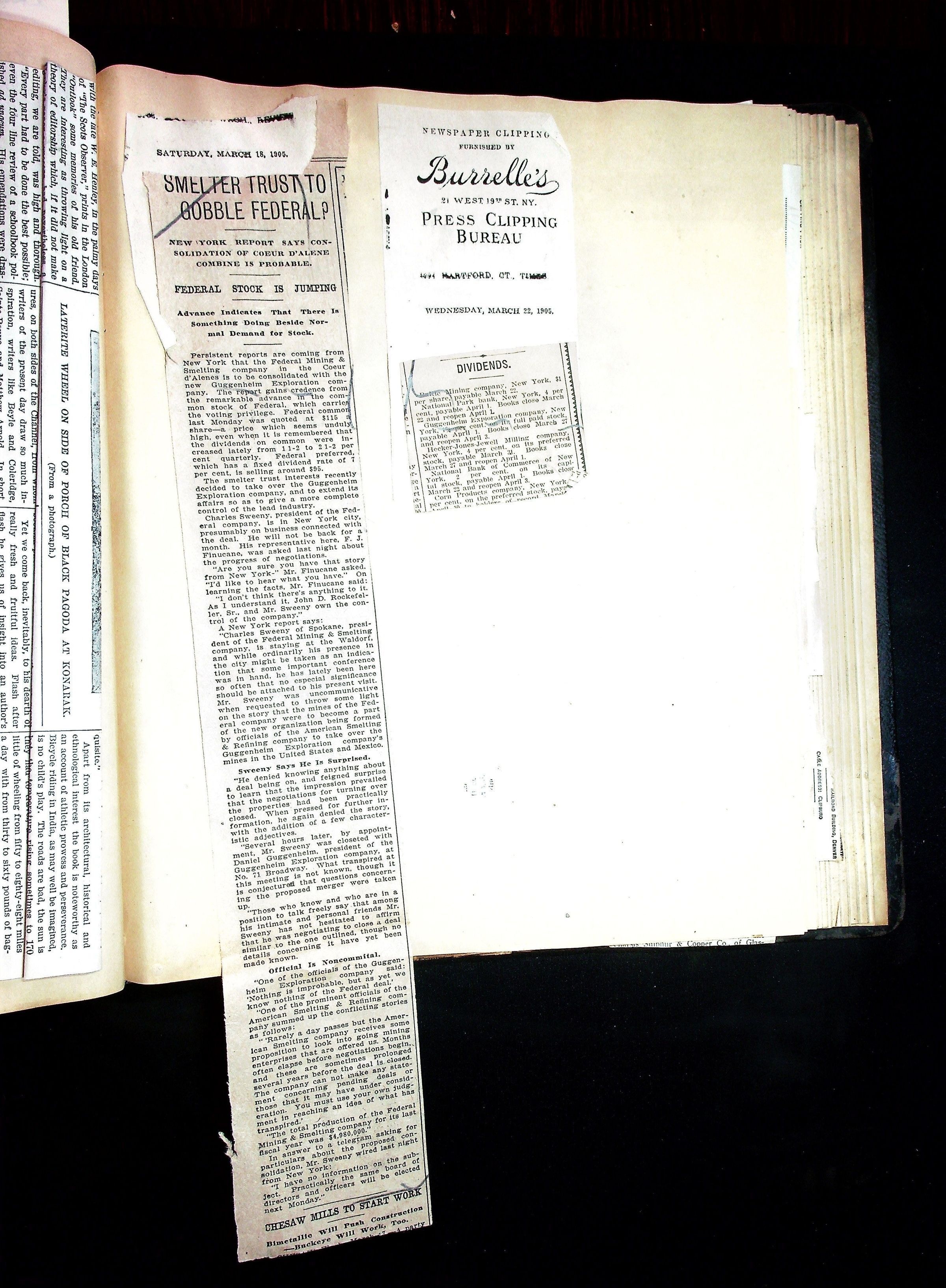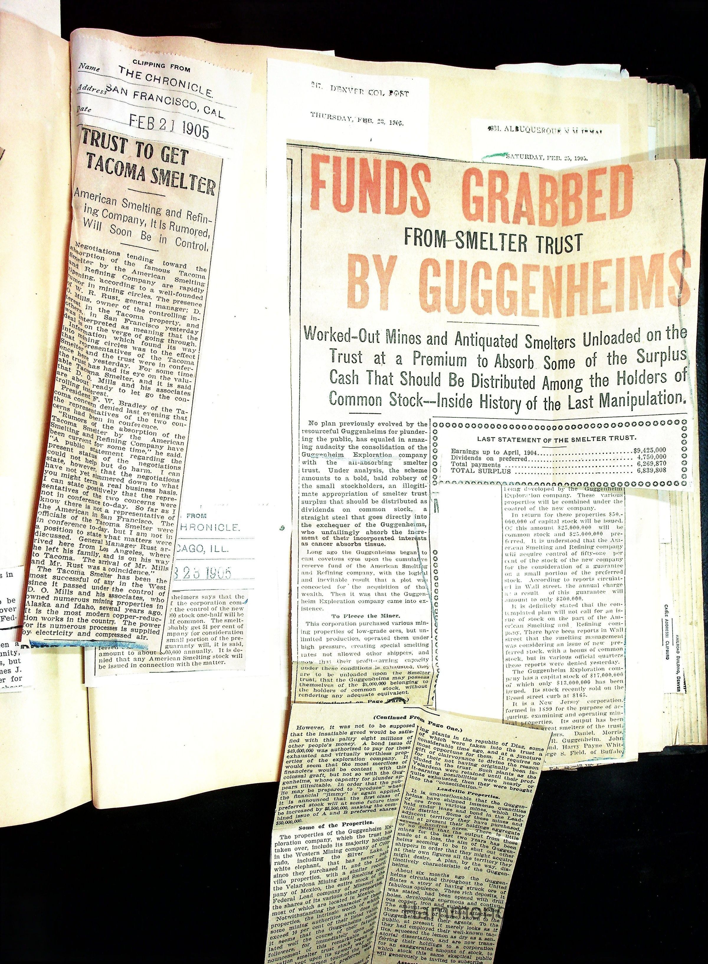 John Hays Hammond (Sr) scrapbook from 1904-1905 with articles about mining, the Guggenheims and economicsGeneral Notes
