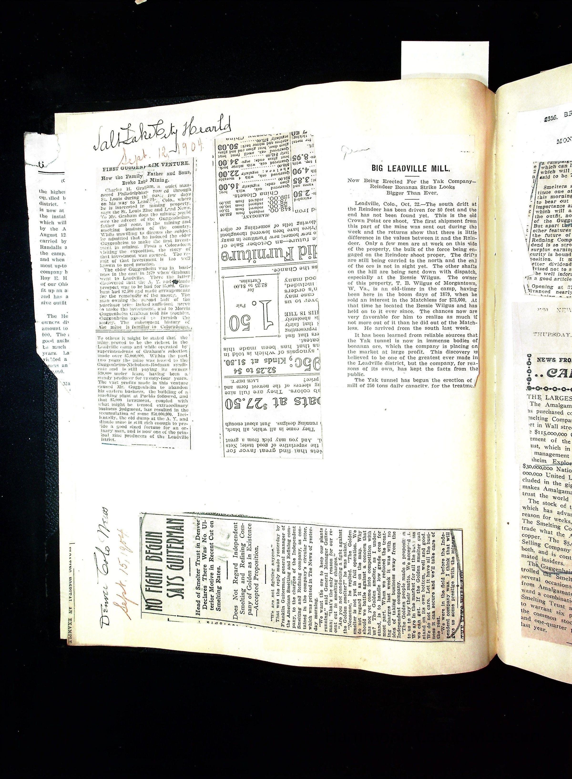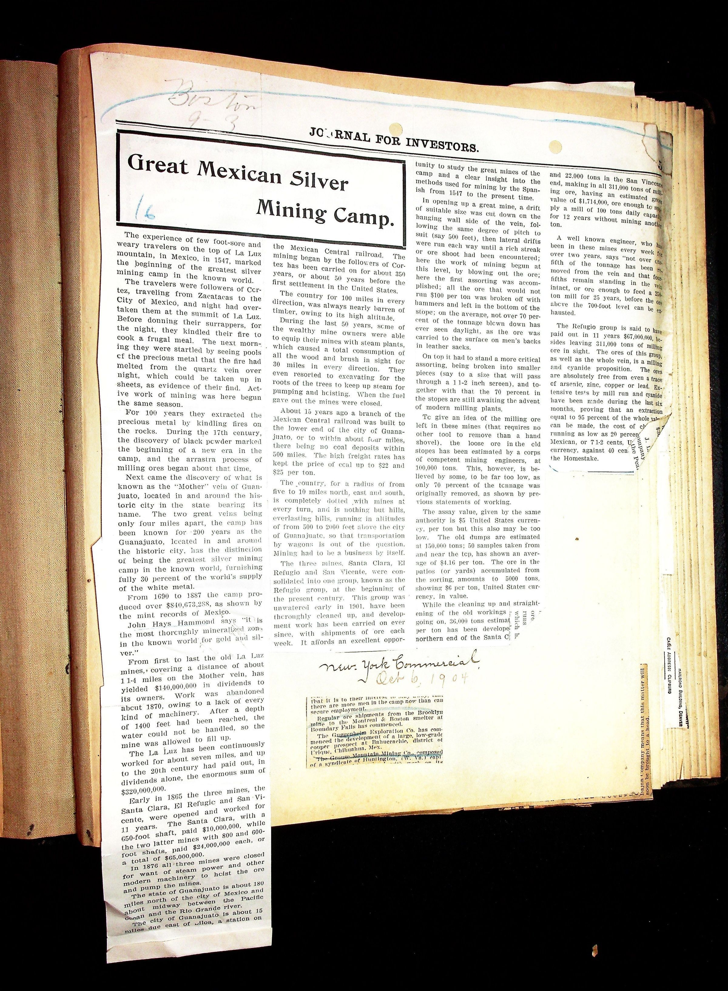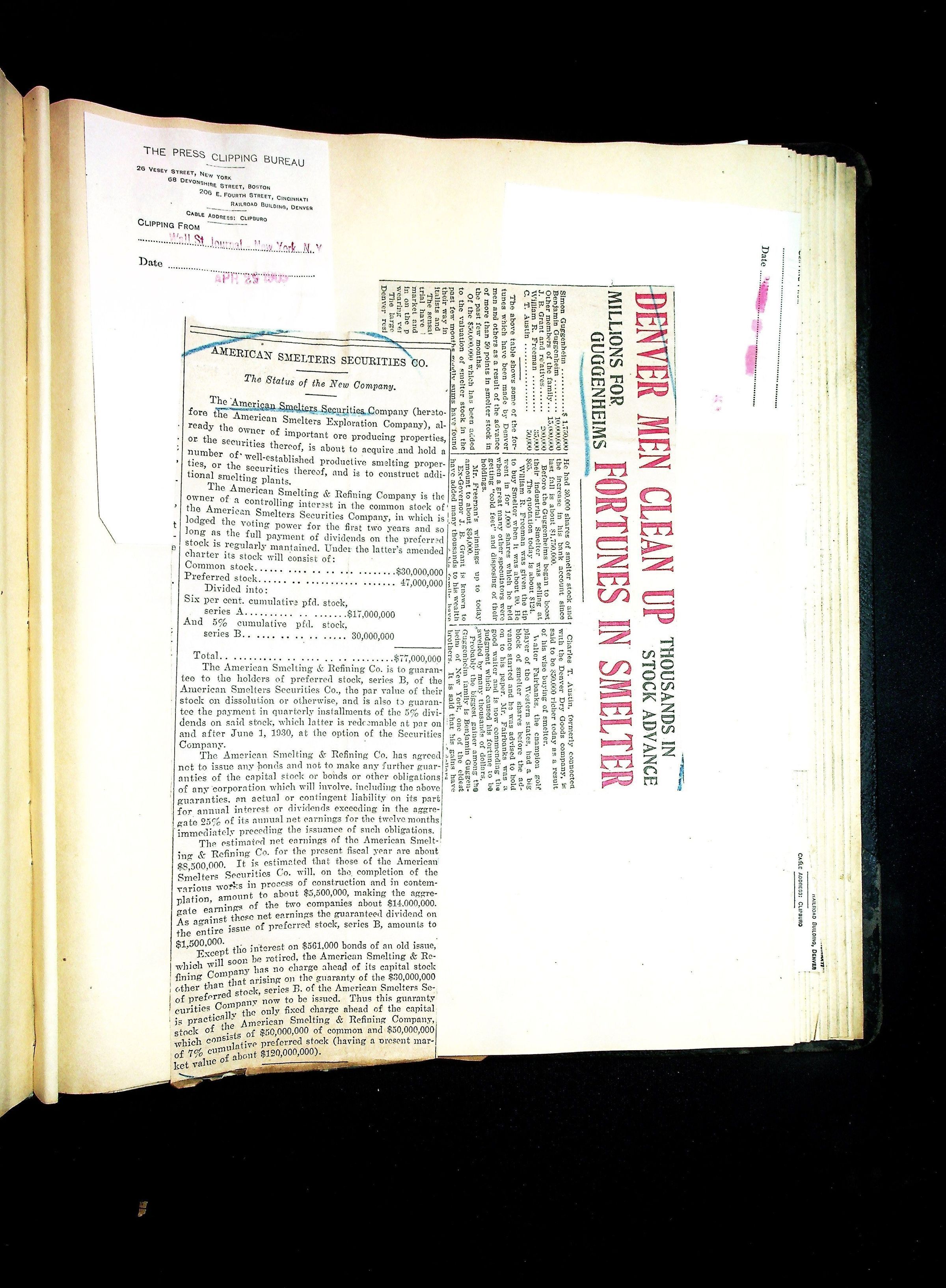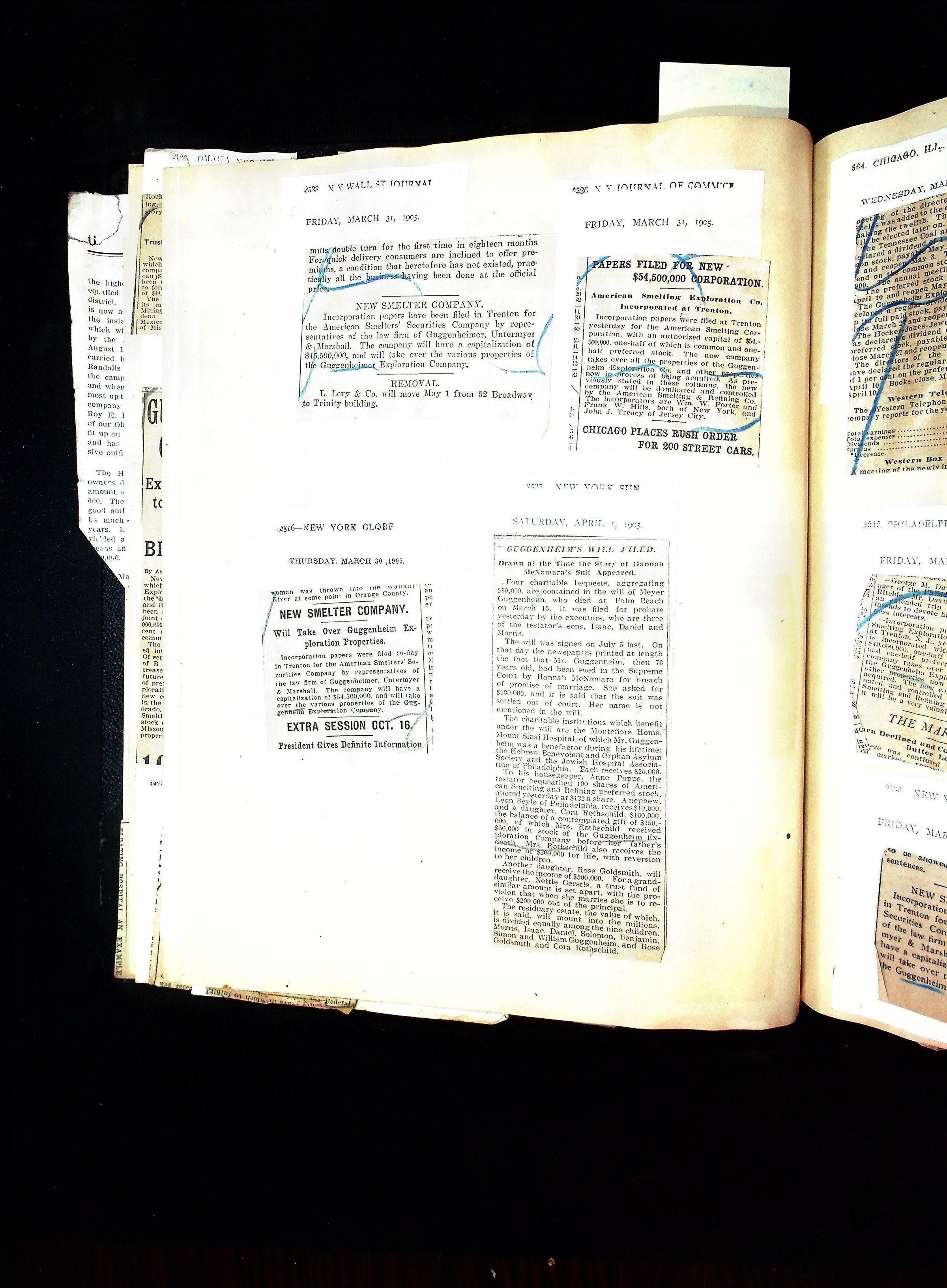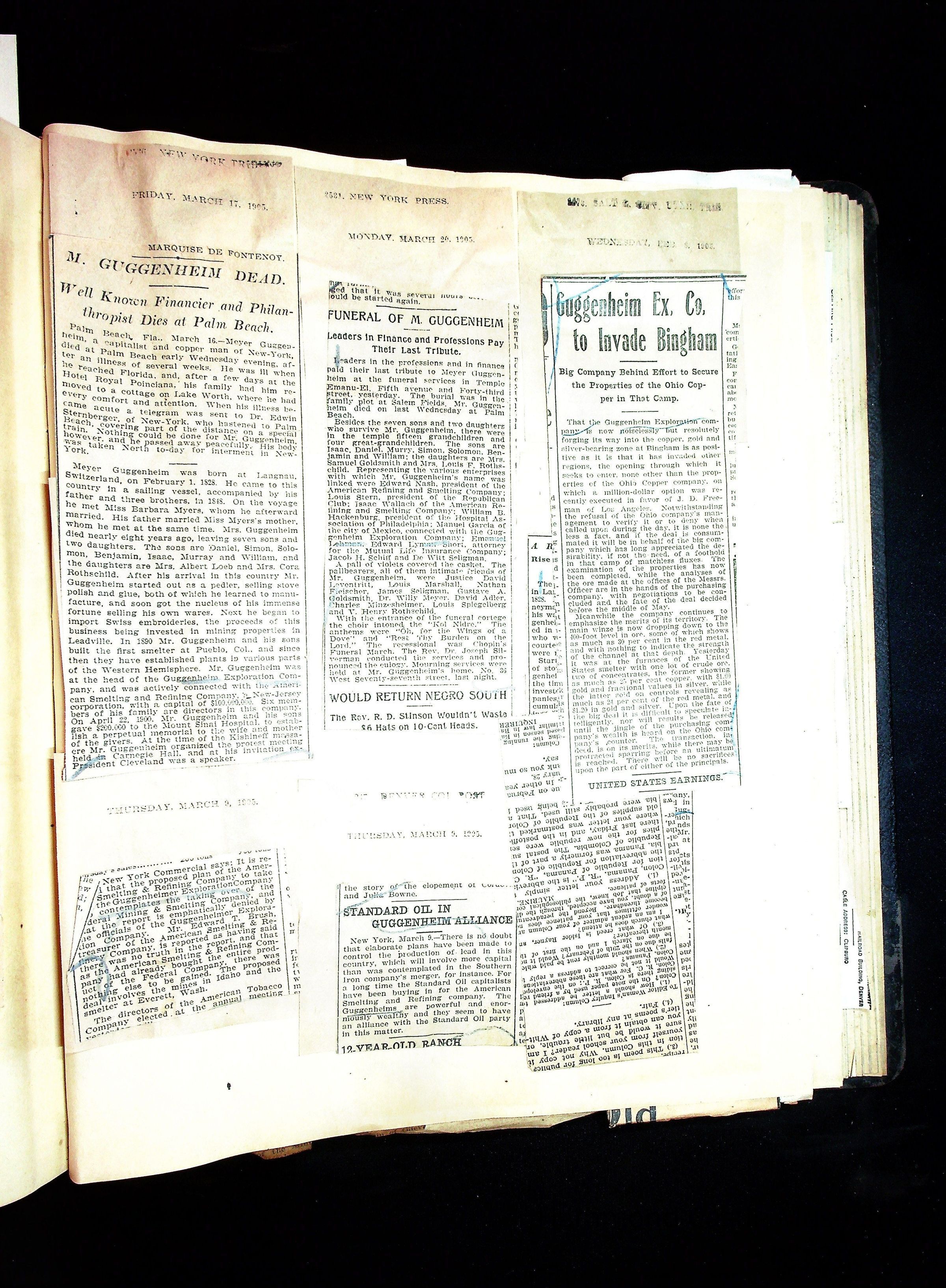 John Hays Hammond (Sr) scrapbook from 1904-1905 with articles about mining, the Guggenheims and economicsGeneral Notes