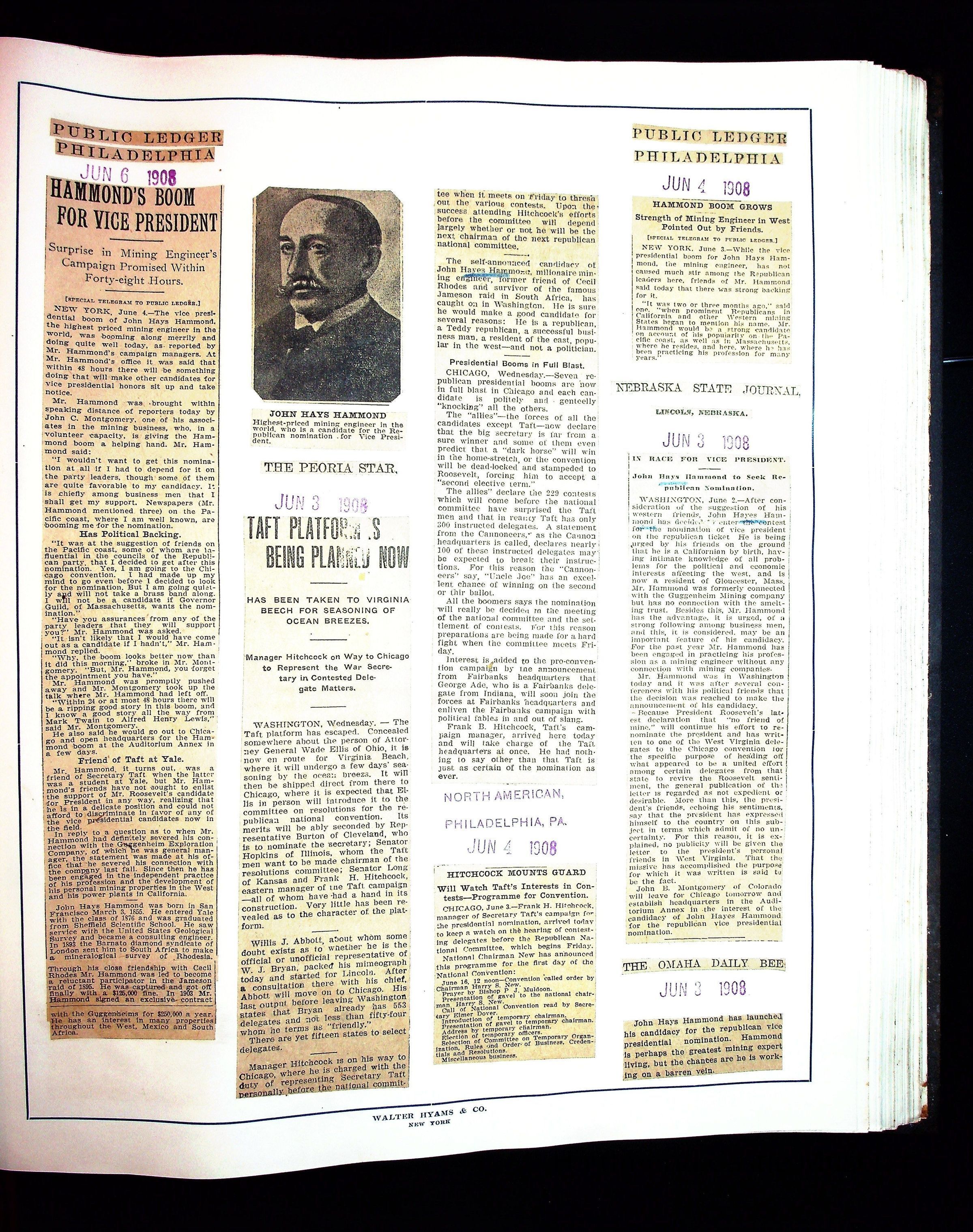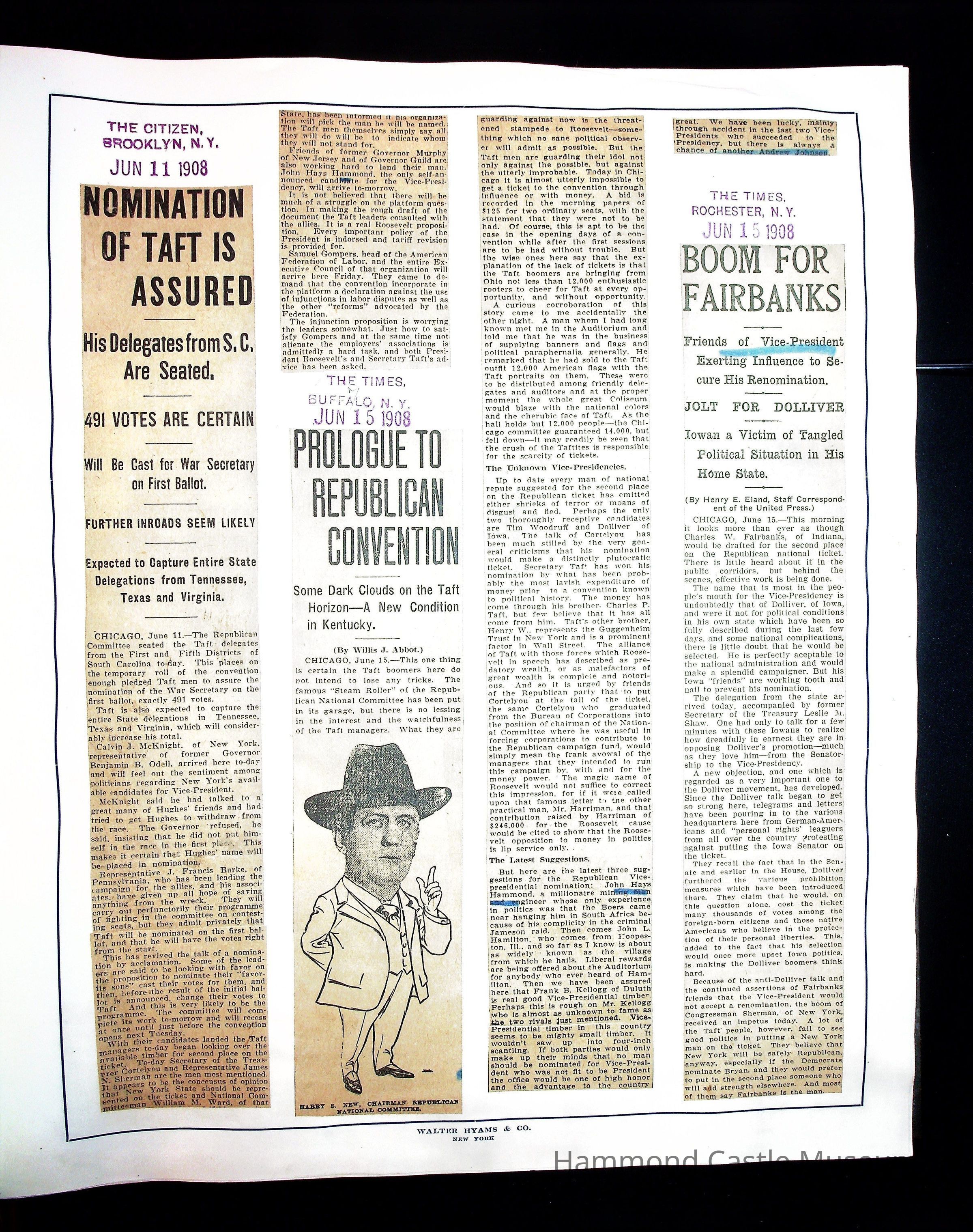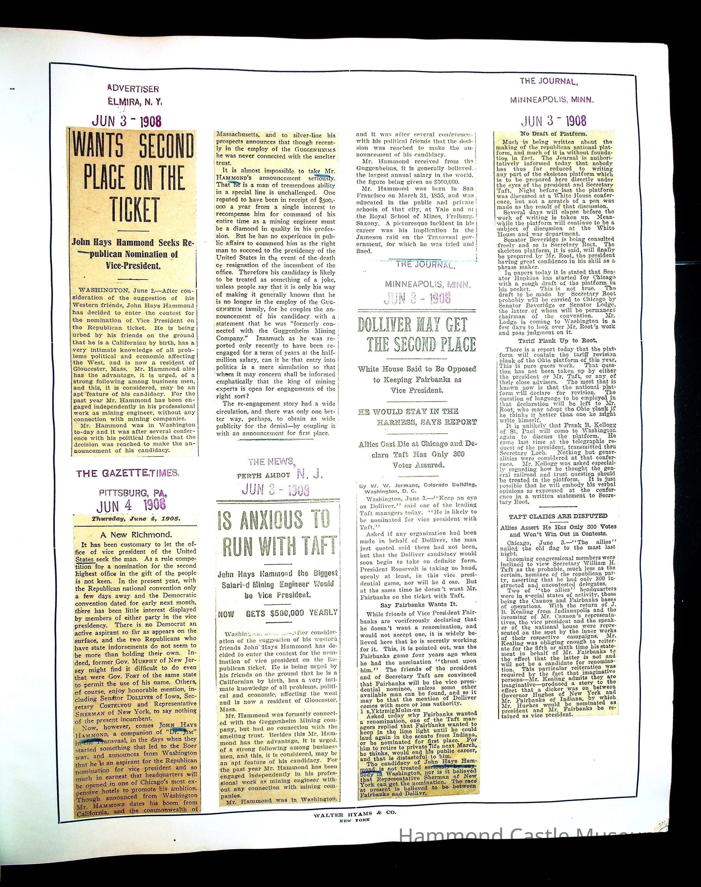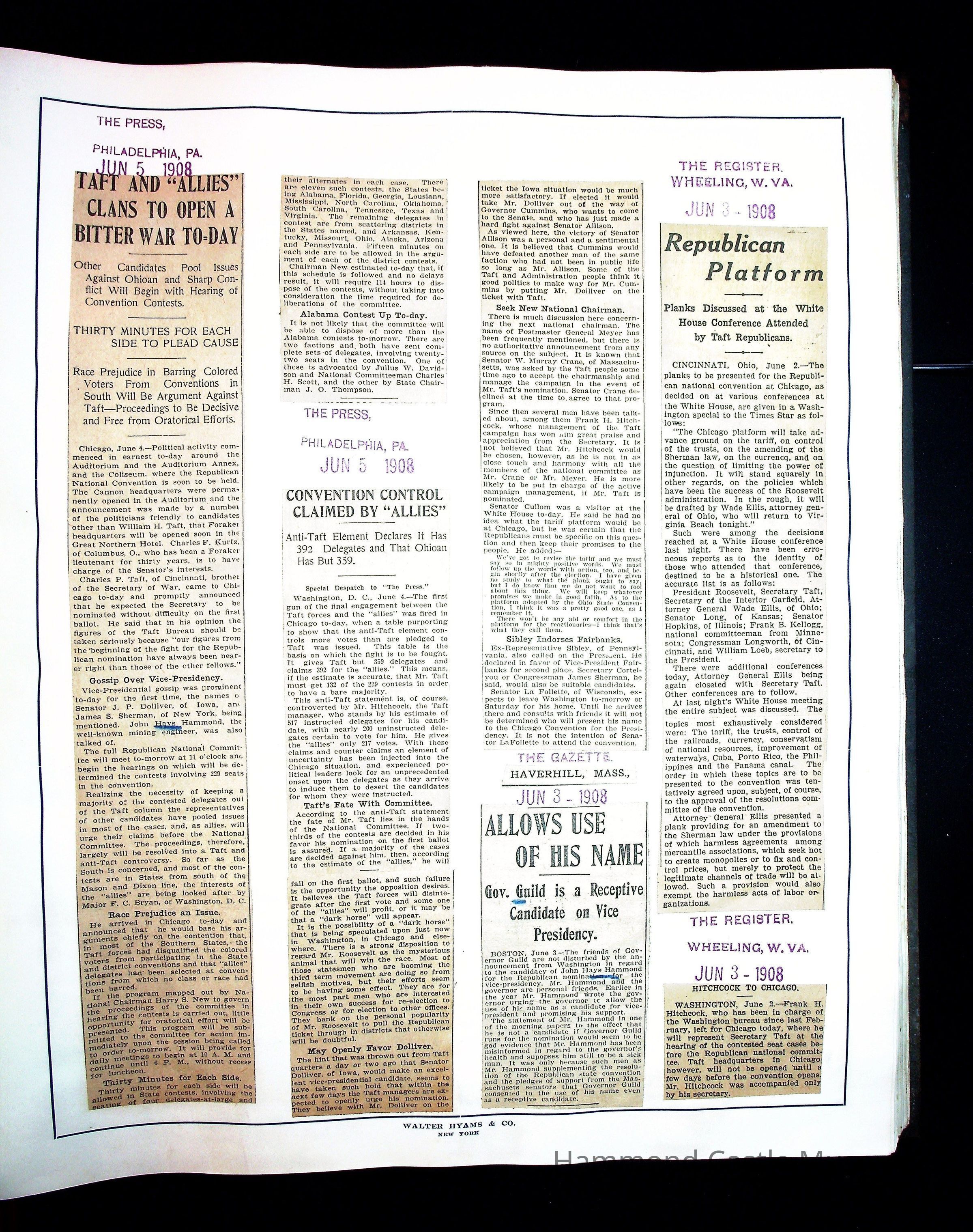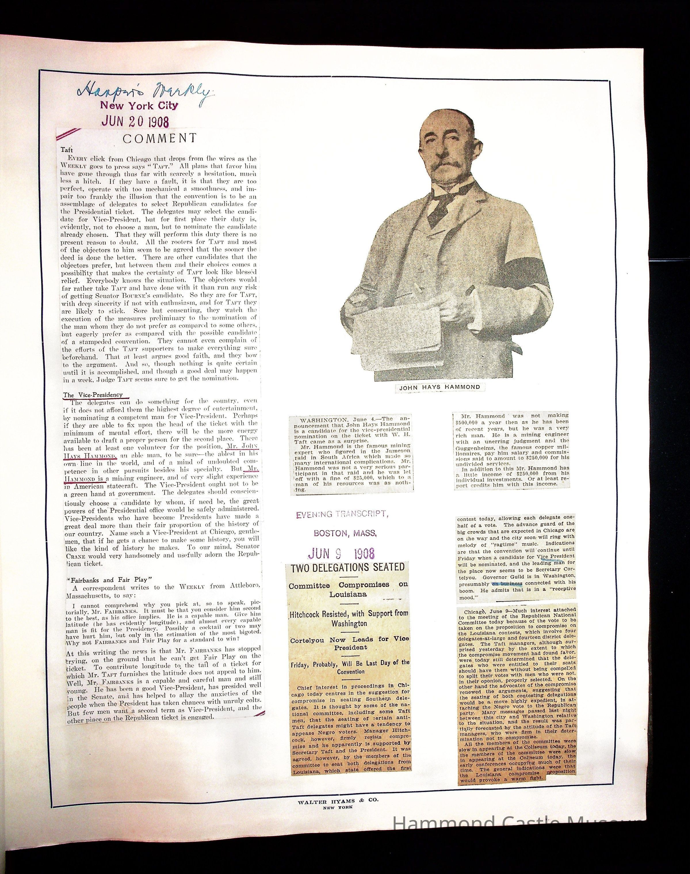 Articles & Images from Taft campaign & John Hays Hammond Sr vice-presidency run