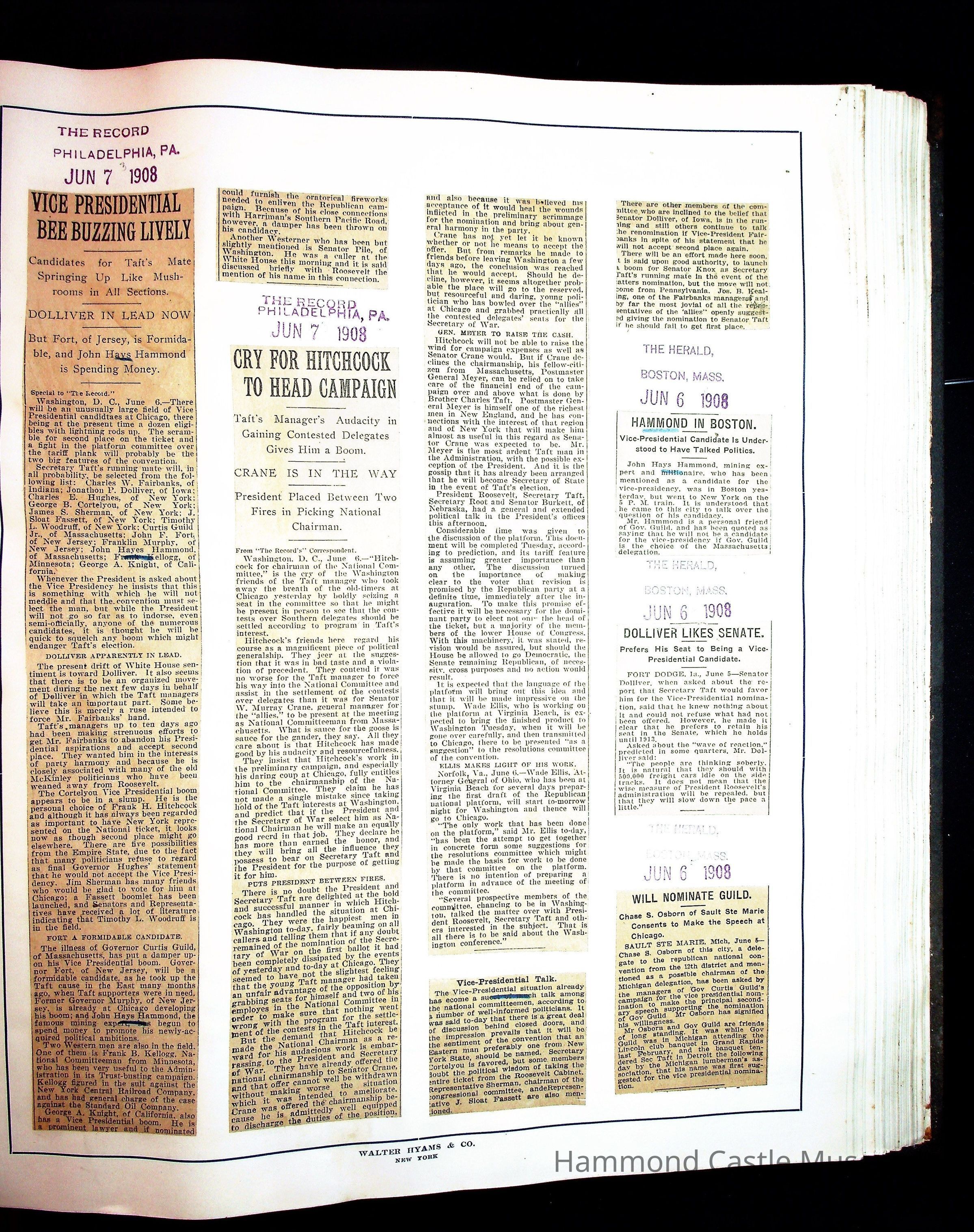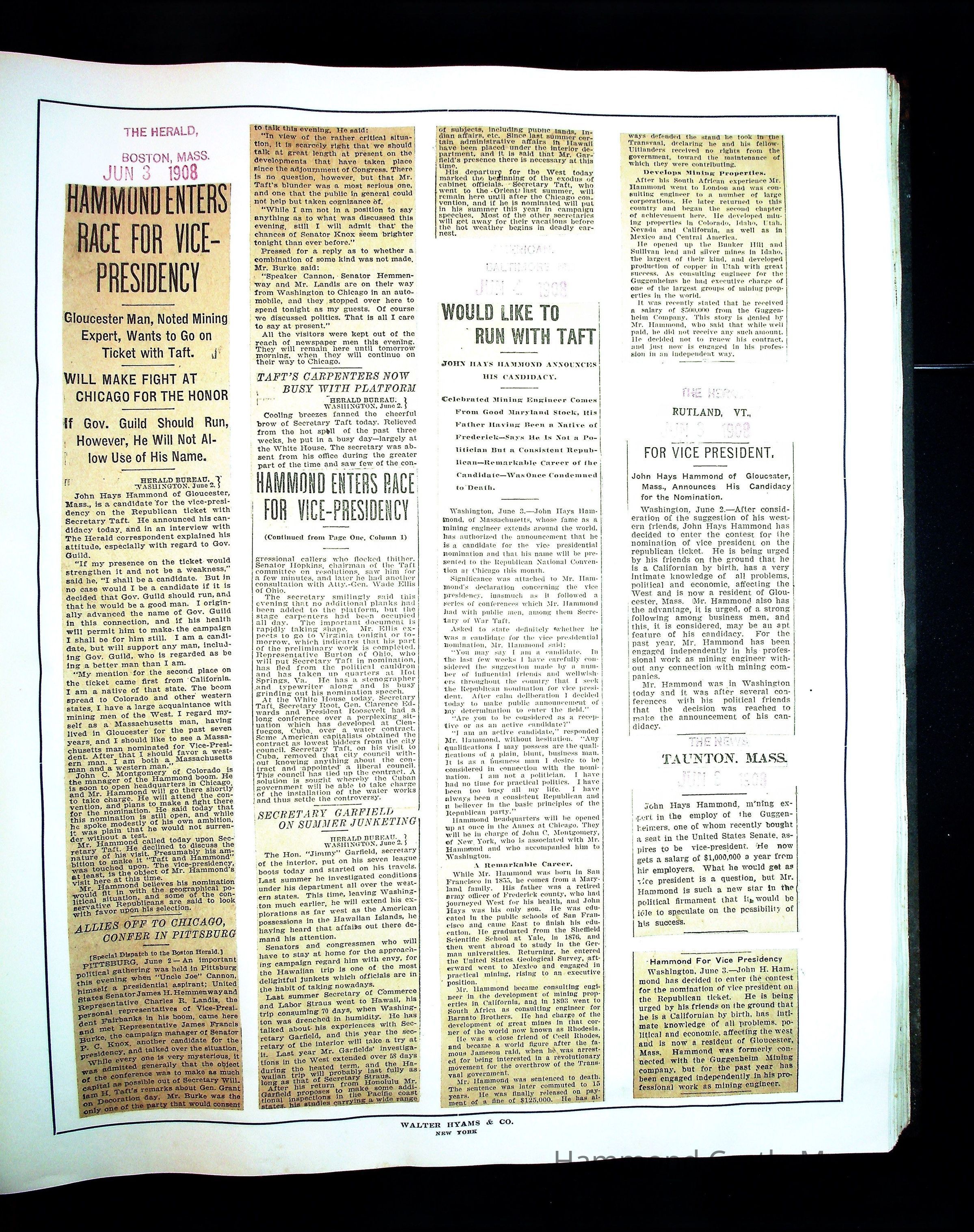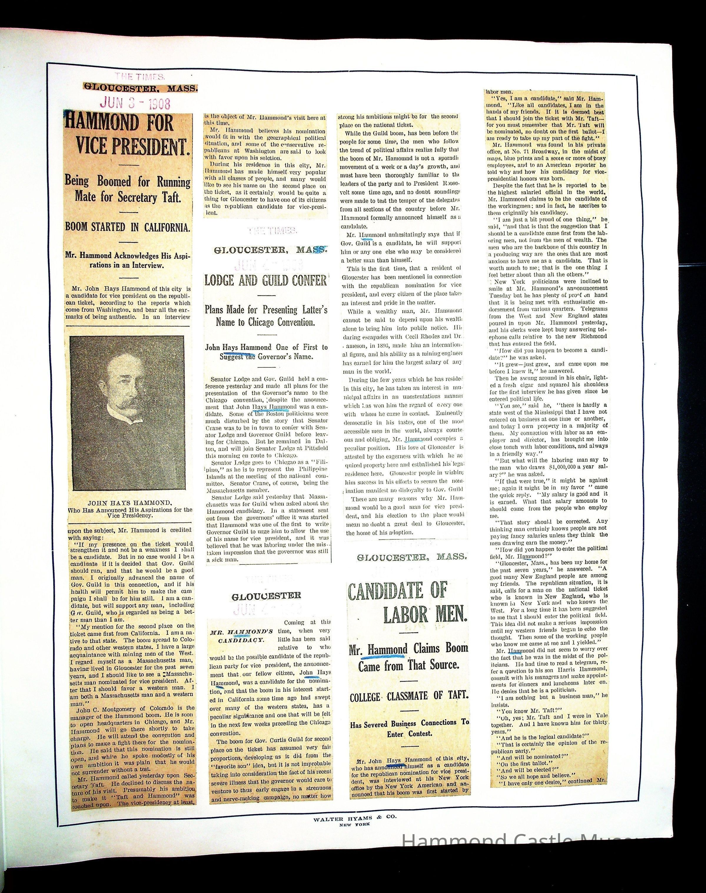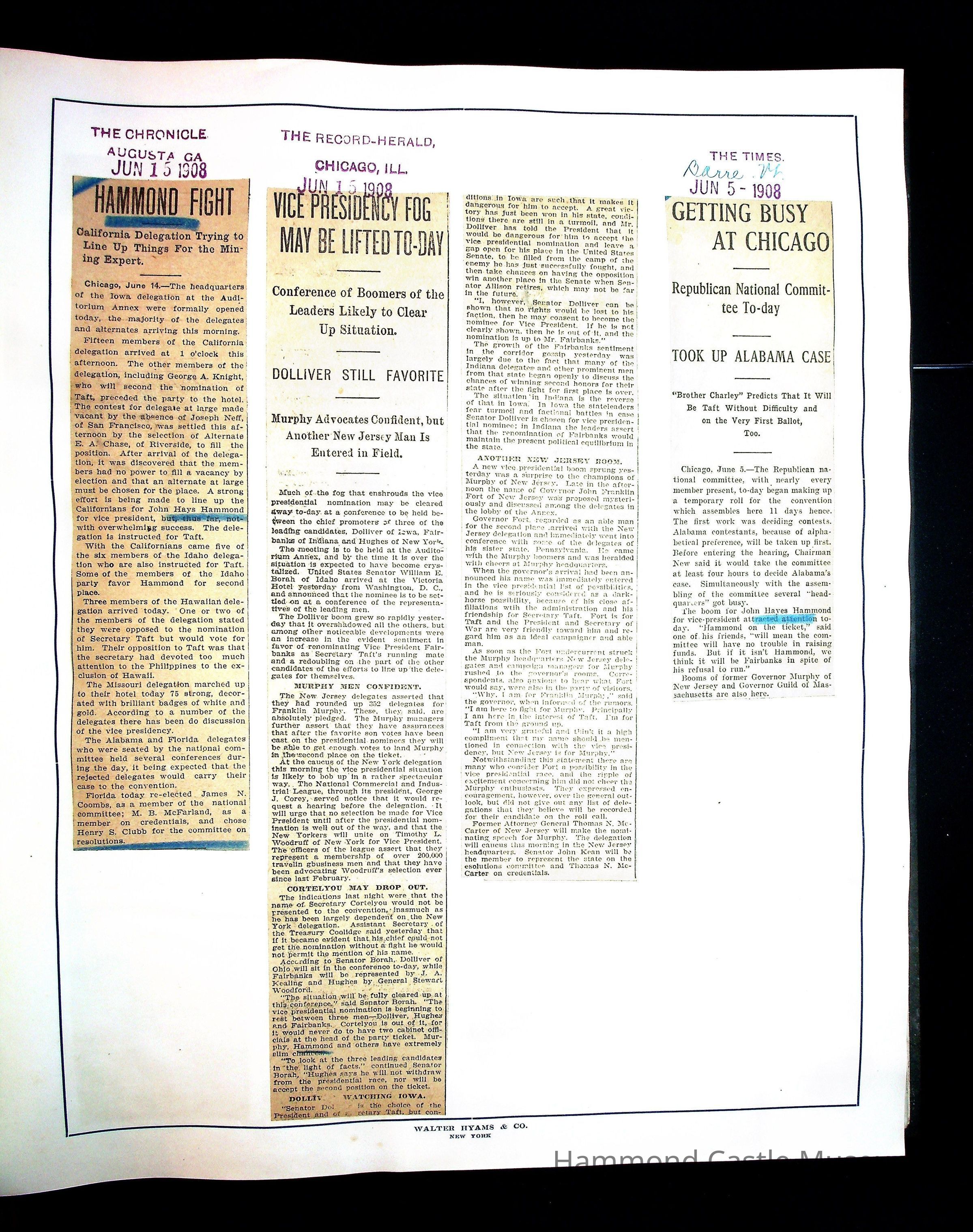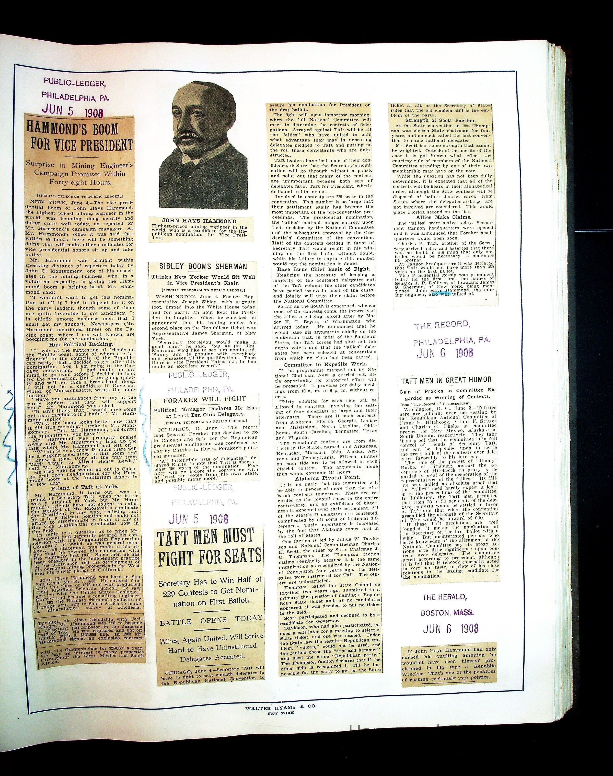 Articles & Images from Taft campaign & John Hays Hammond Sr vice-presidency run