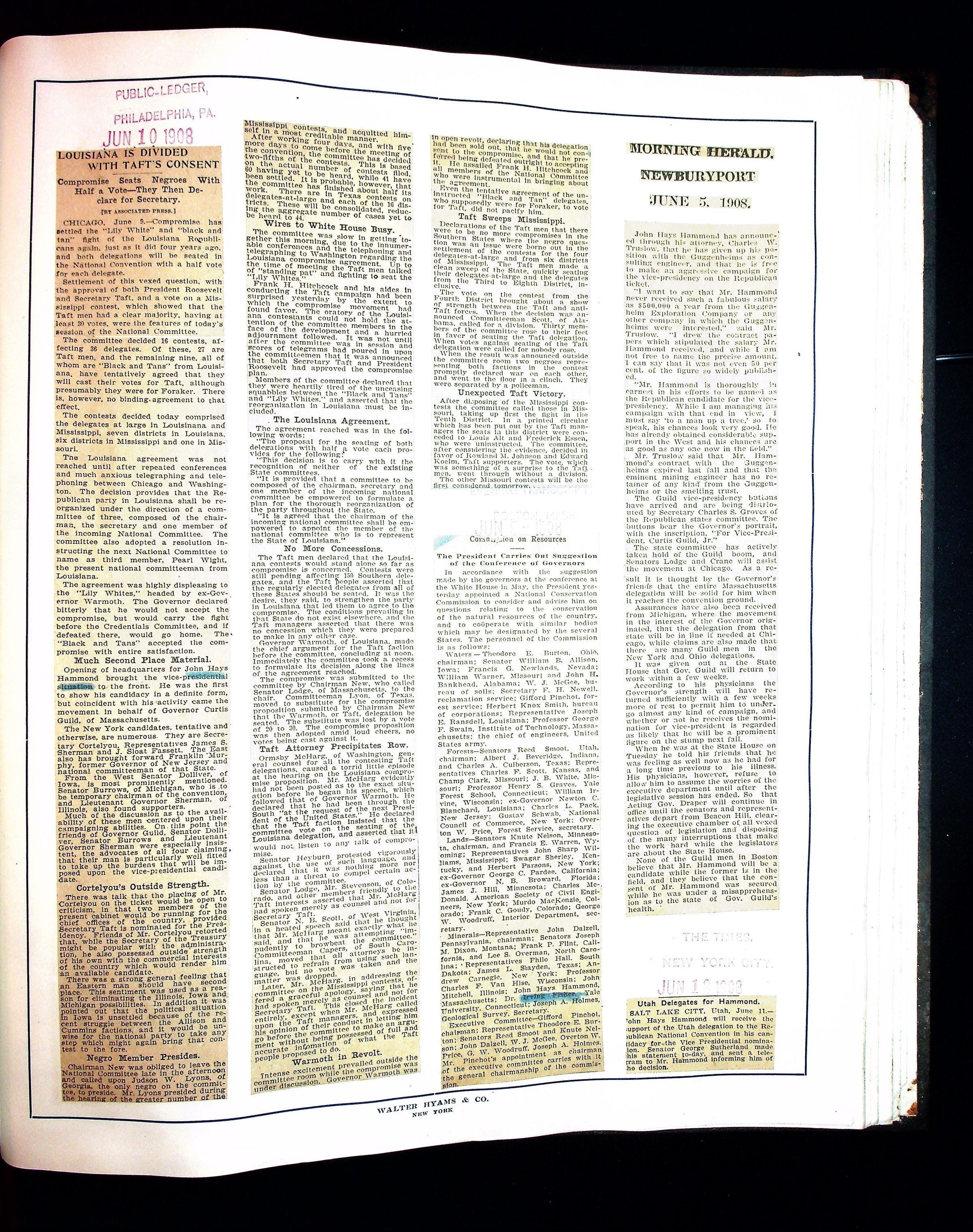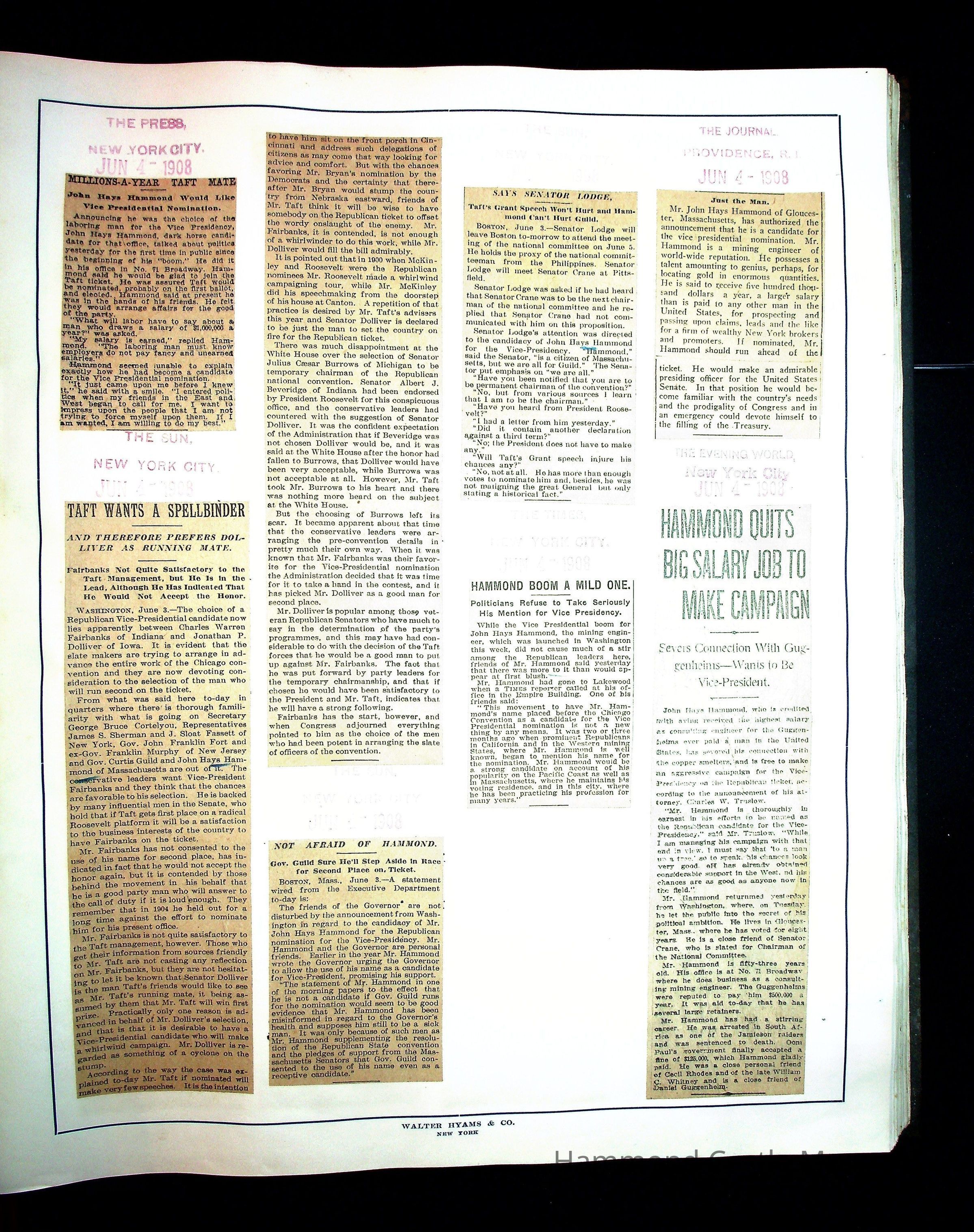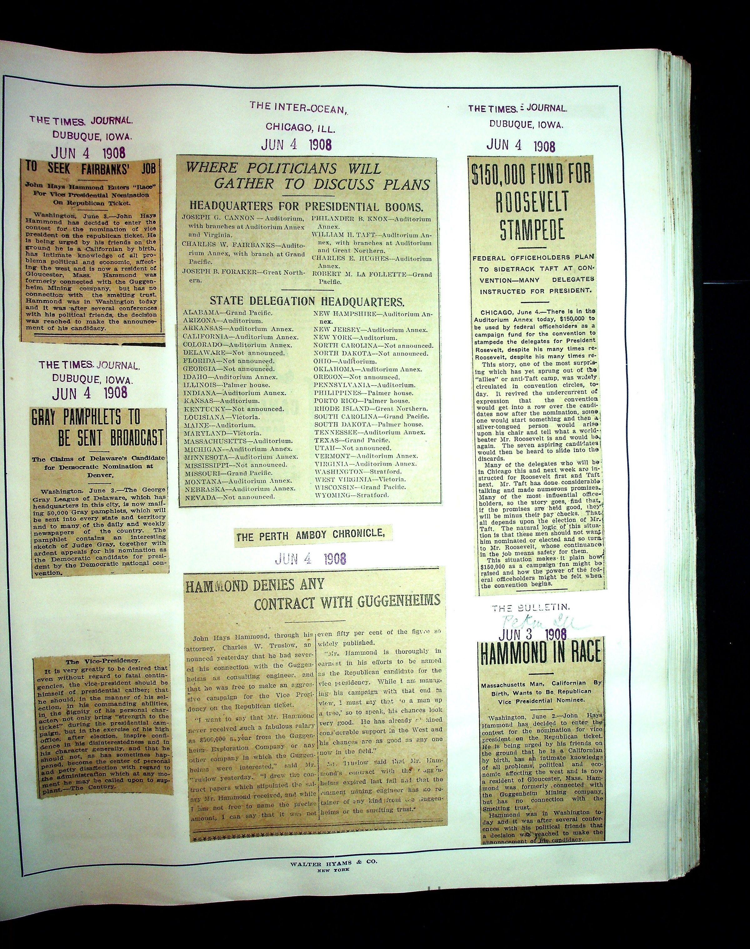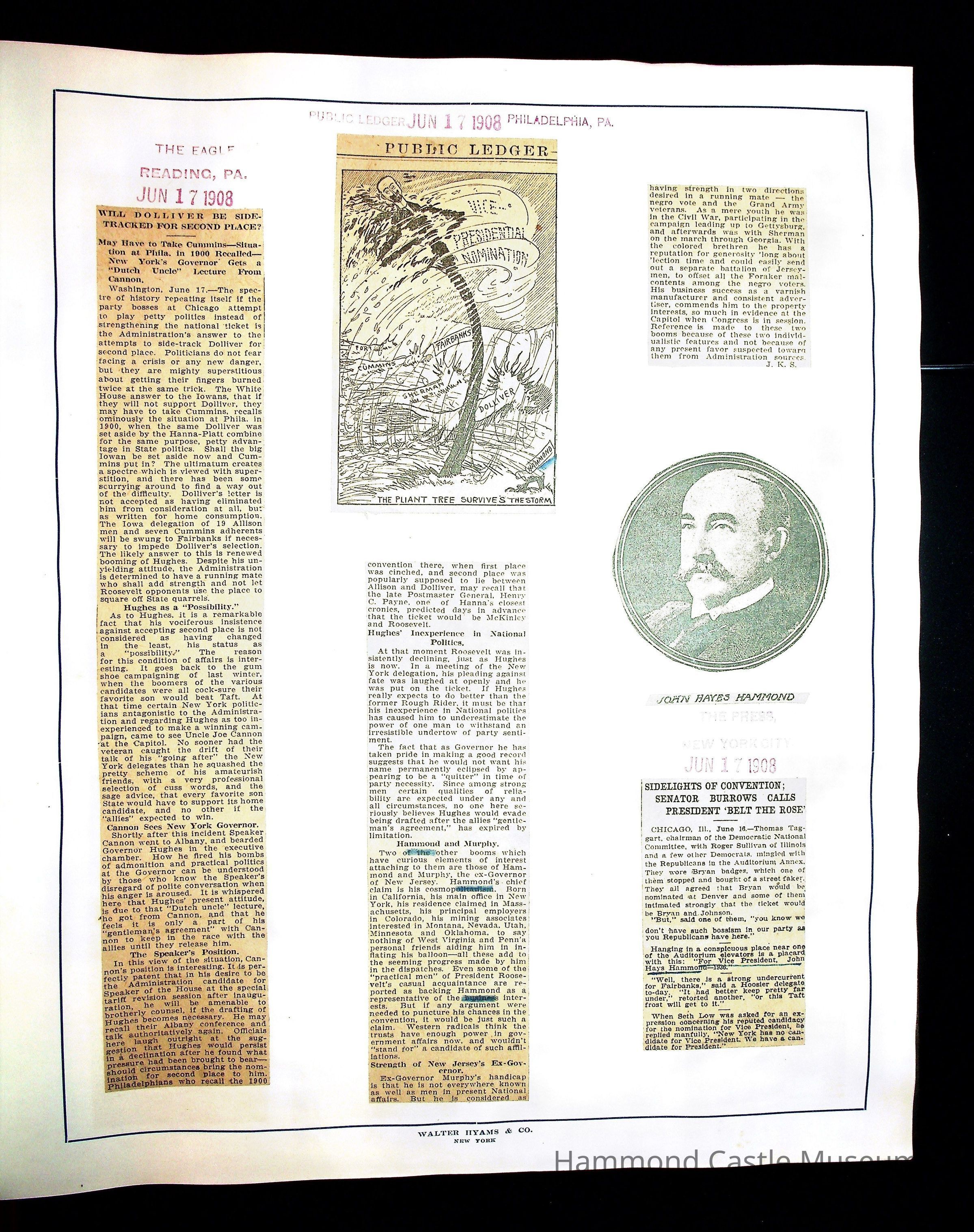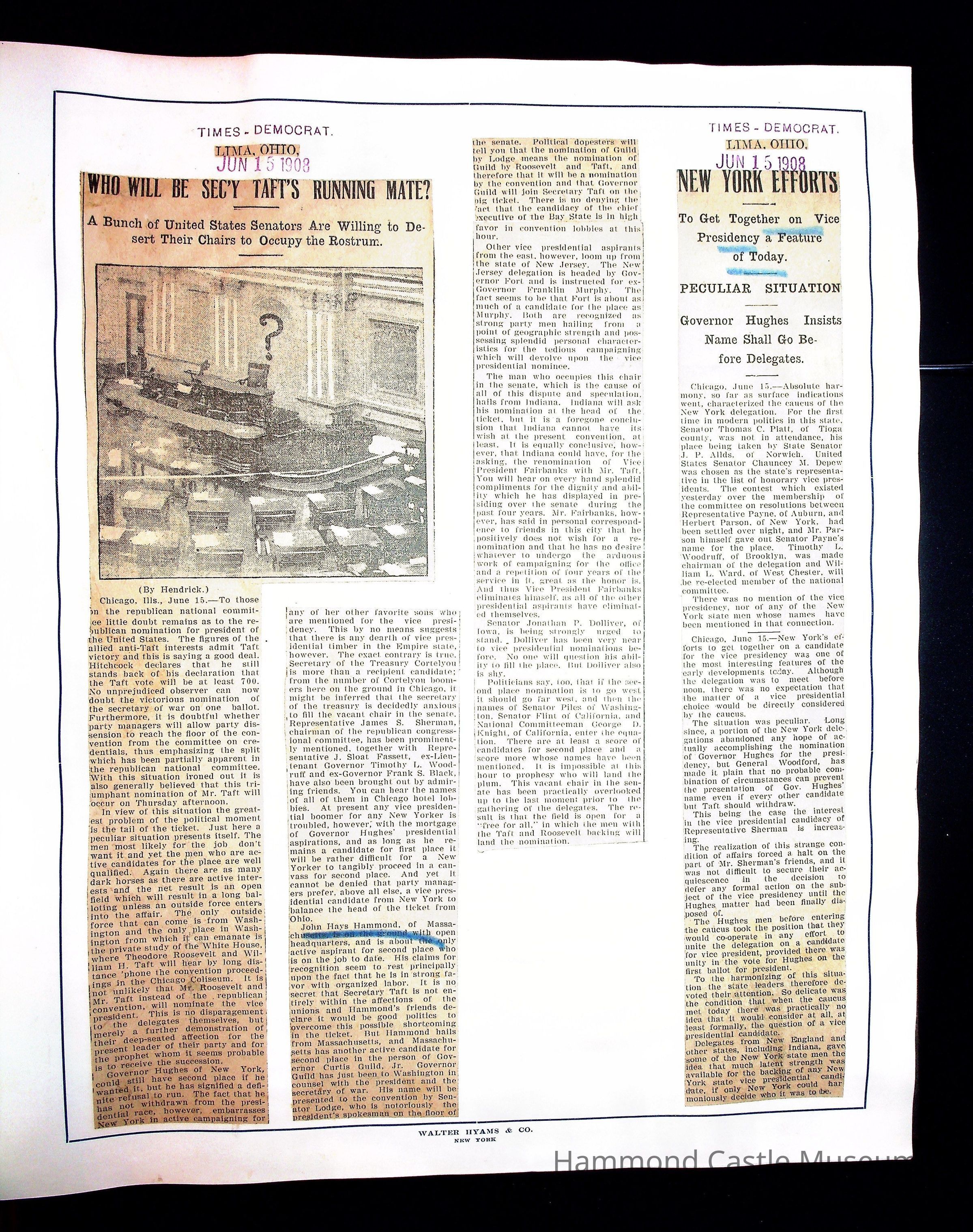 Articles & Images from Taft campaign & John Hays Hammond Sr vice-presidency run