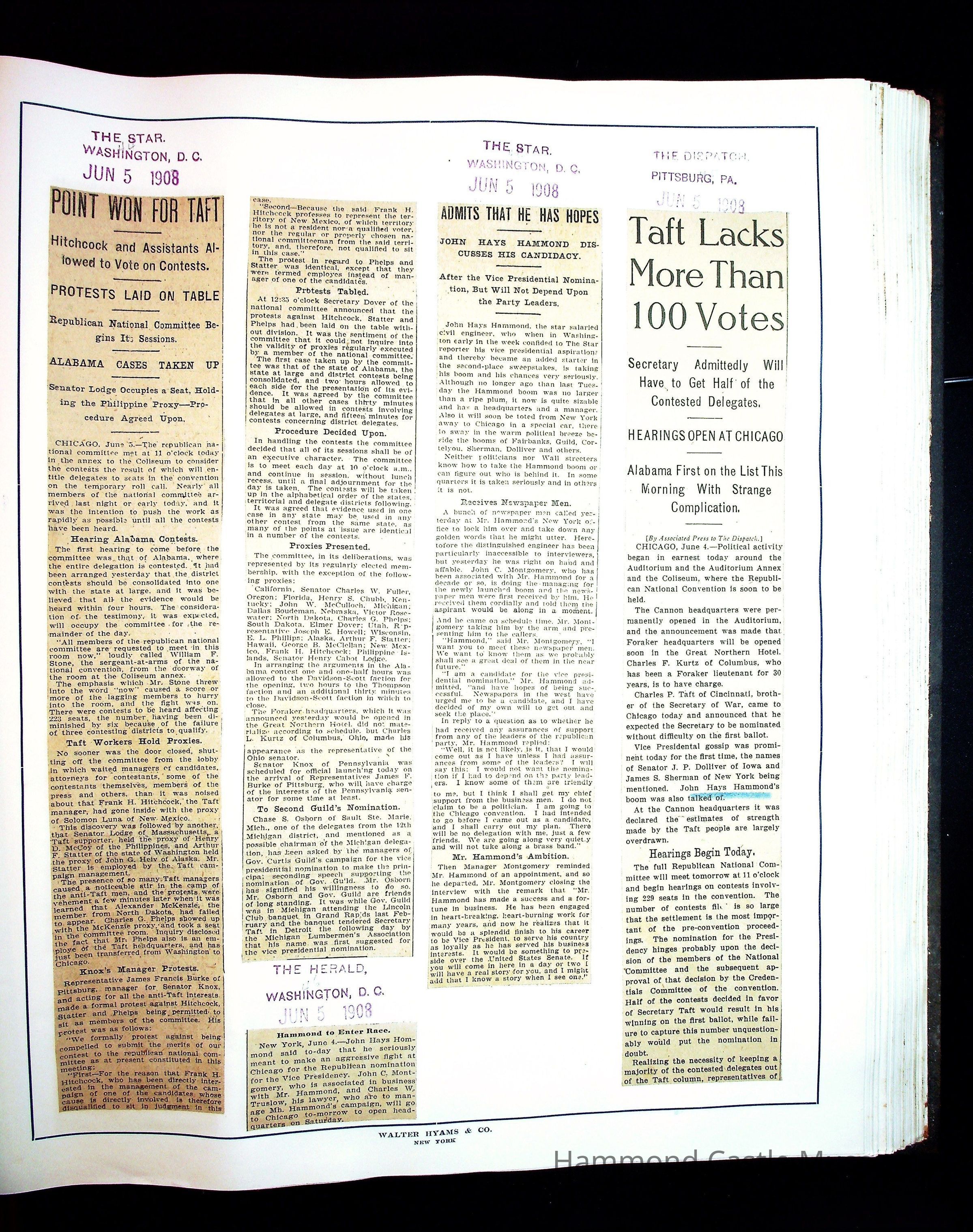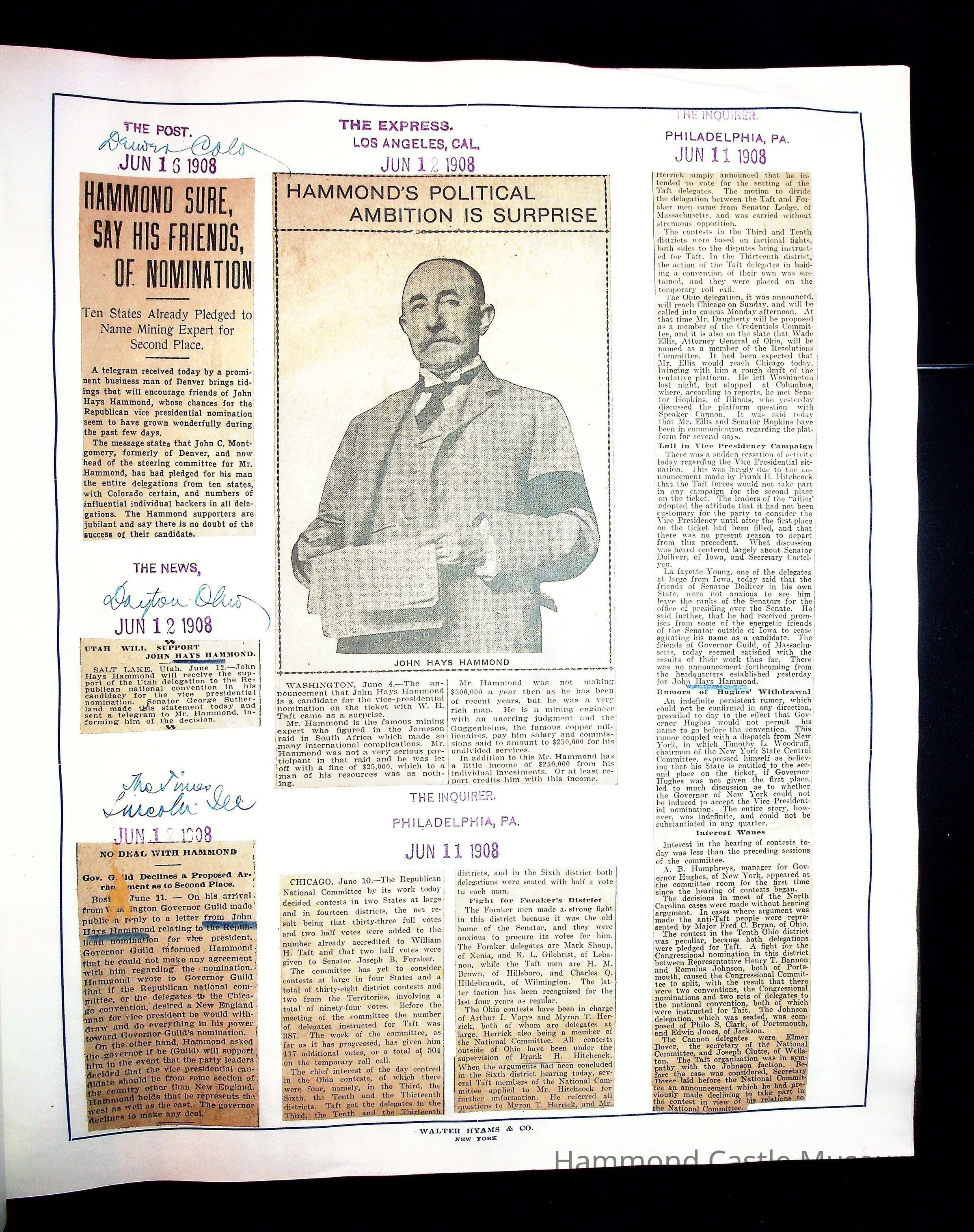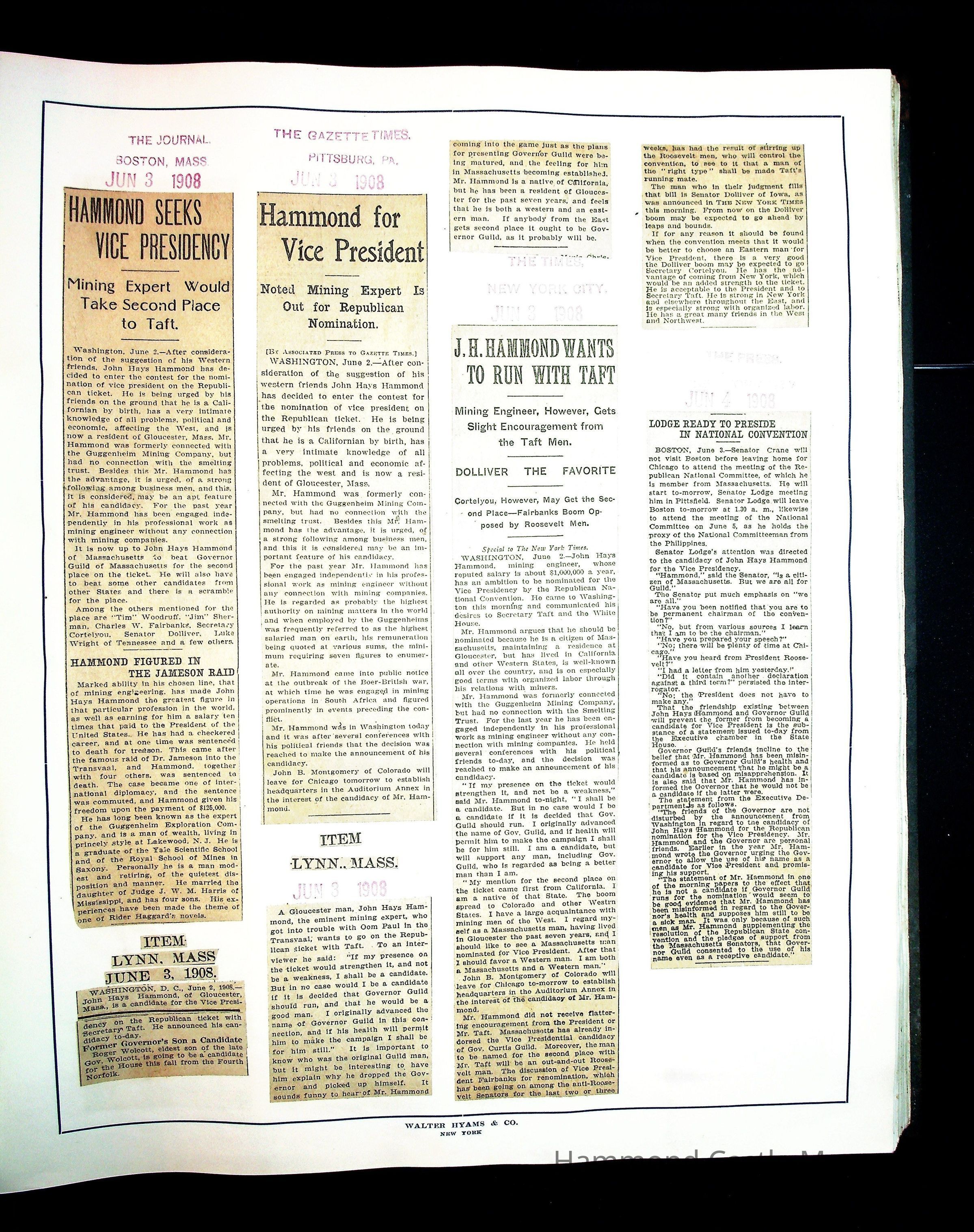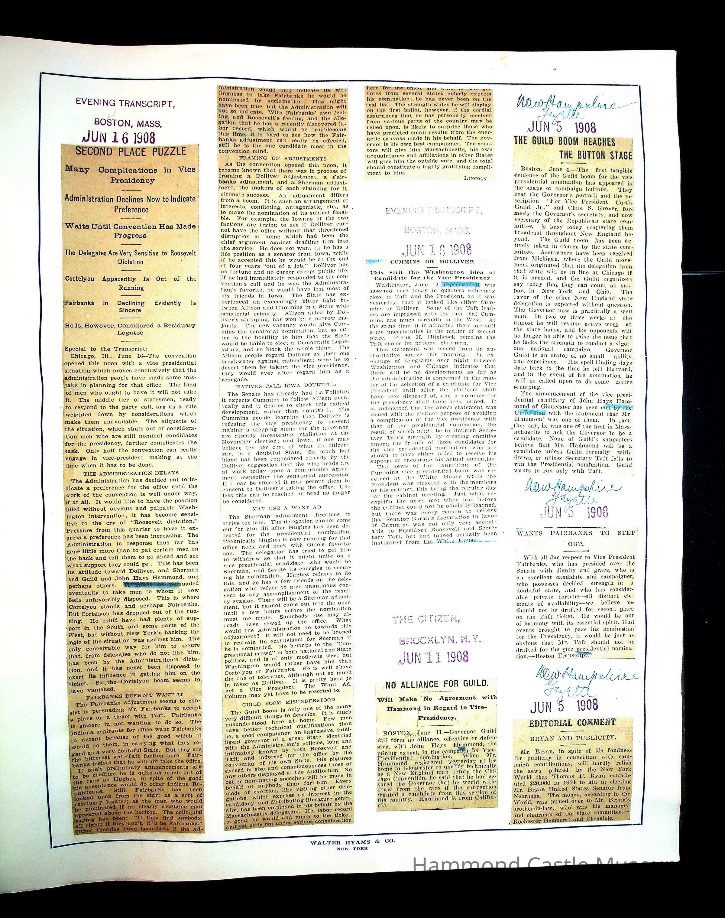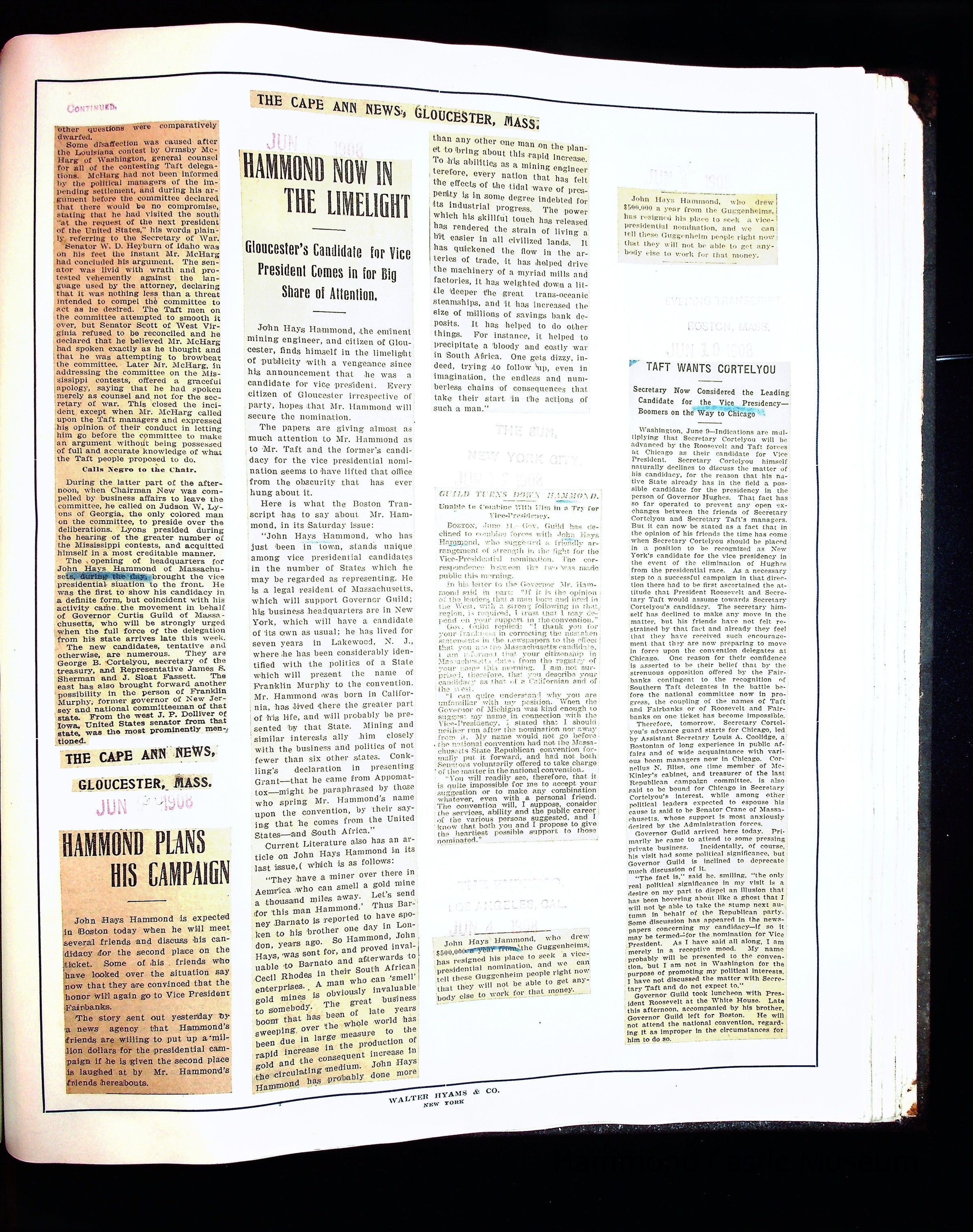 Articles & Images from Taft campaign & John Hays Hammond Sr vice-presidency run